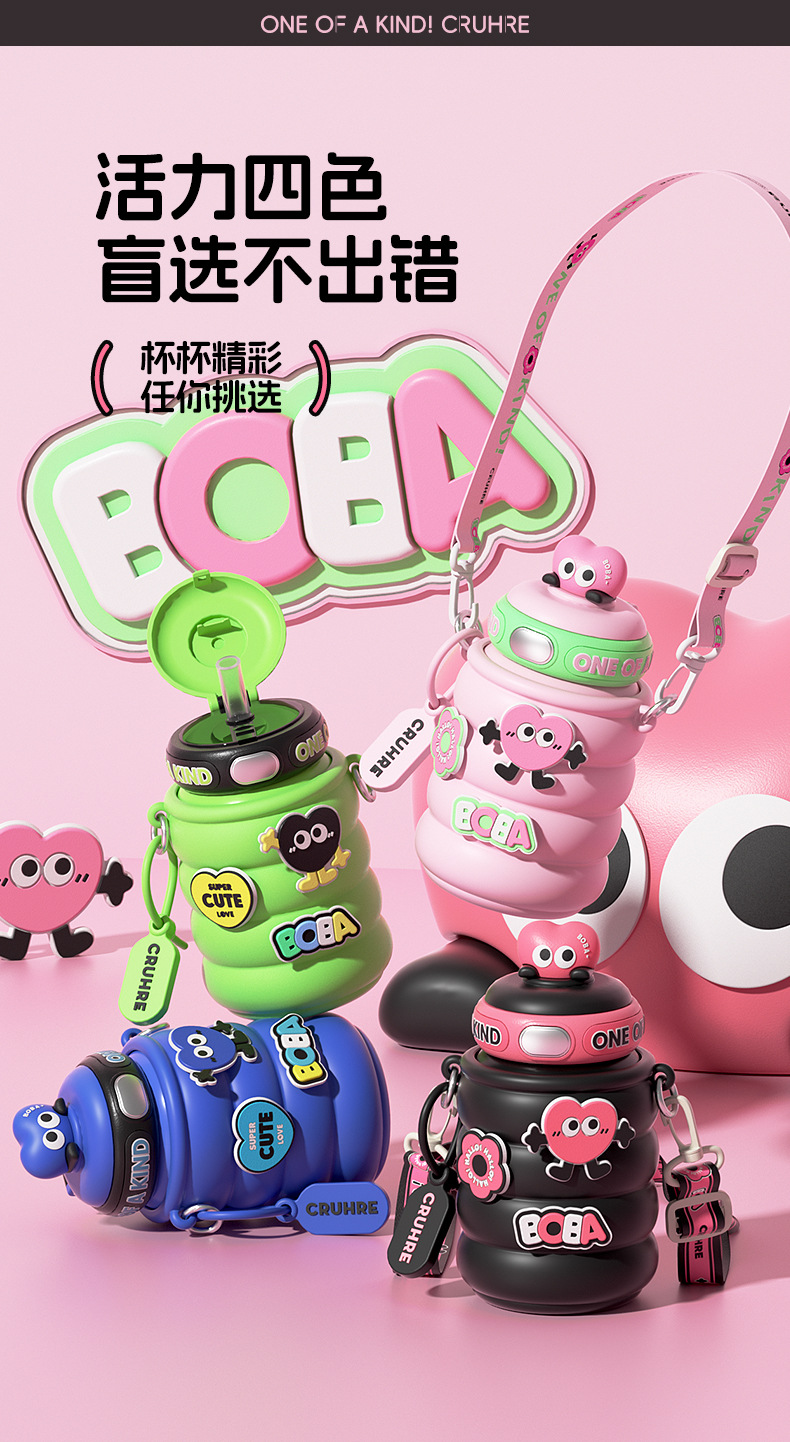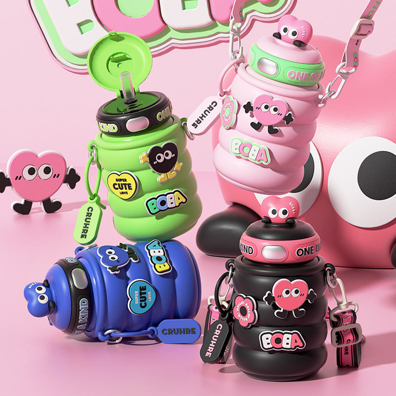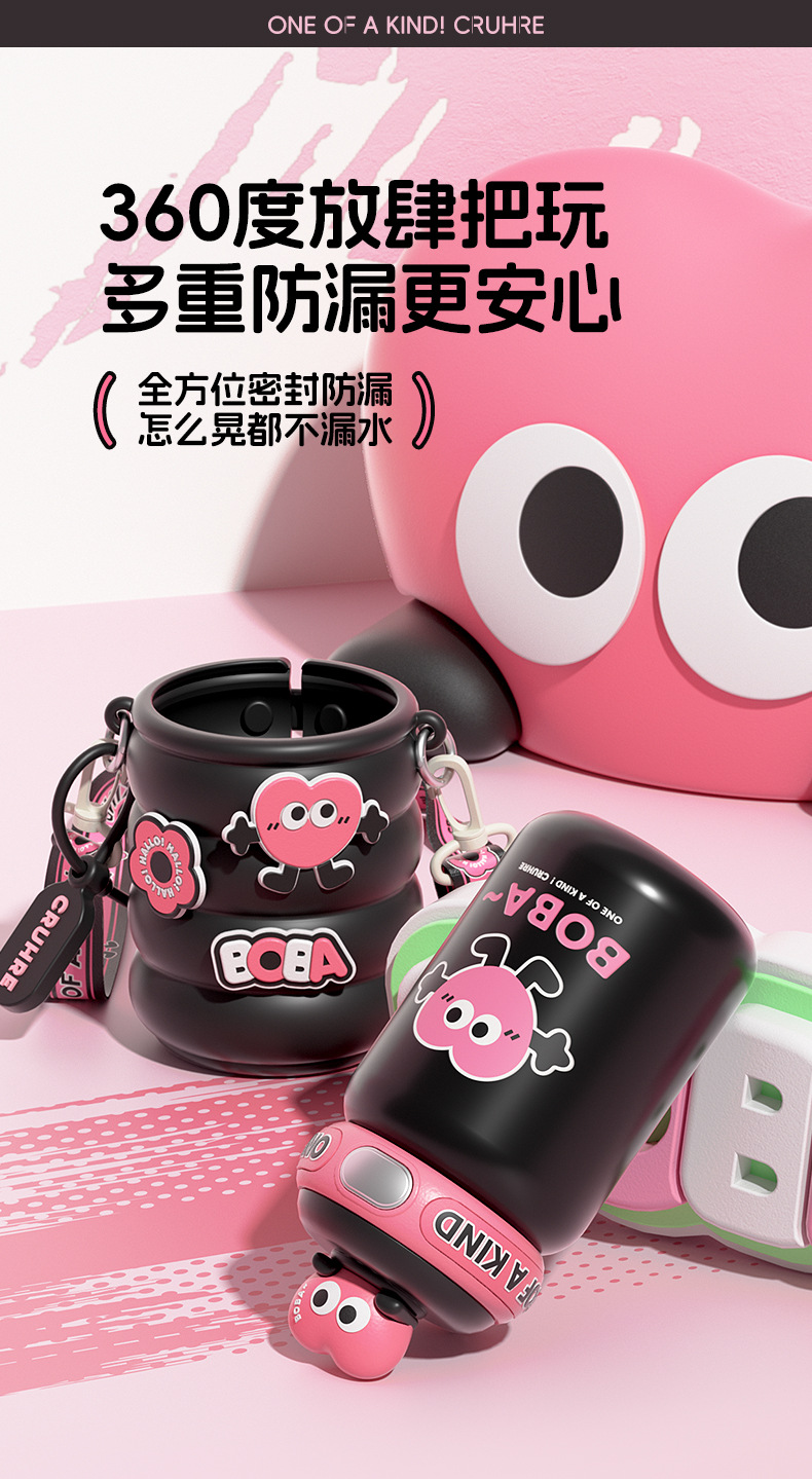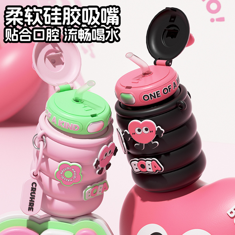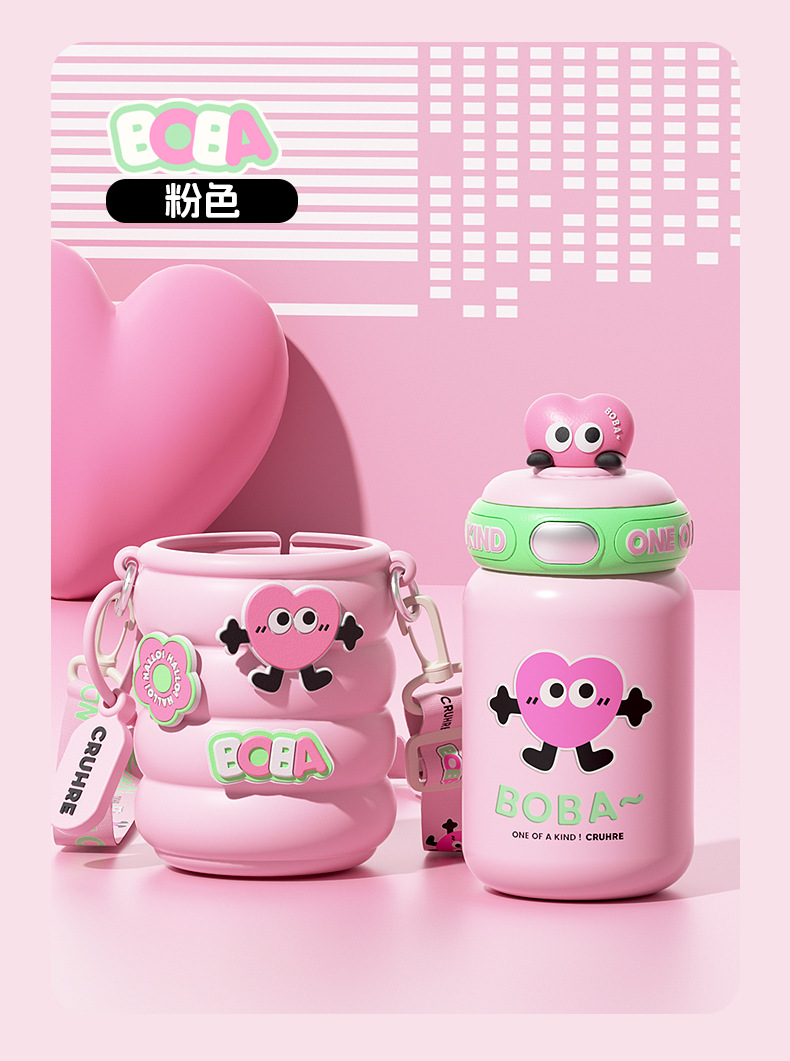 可爱儿童吸管杯女生网红便携保温杯子卡通公仔饮水壶外出便携水杯