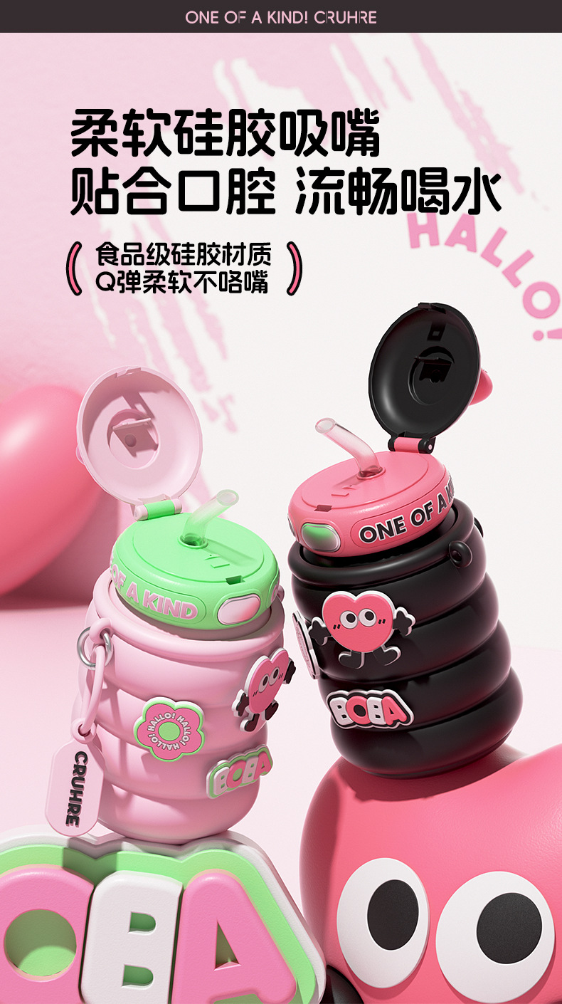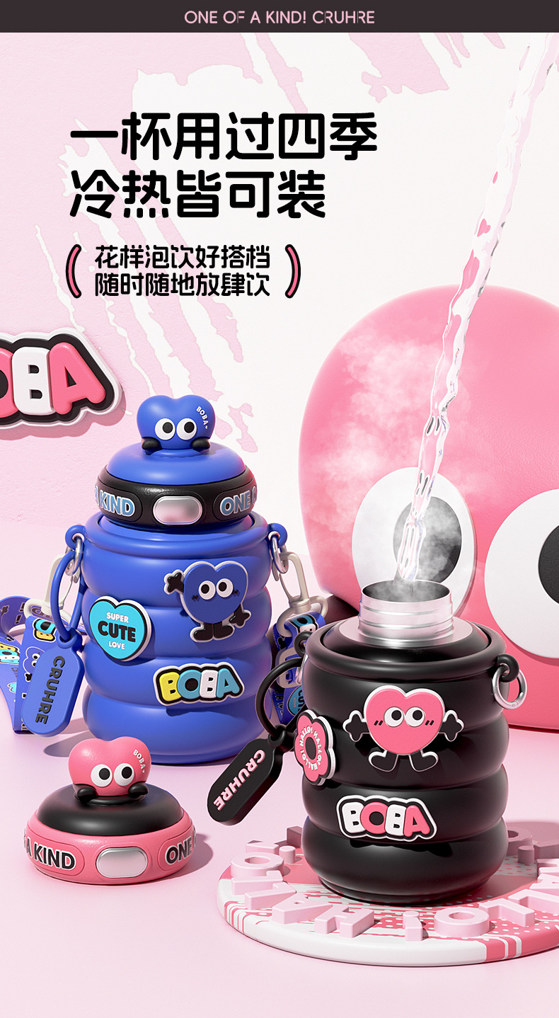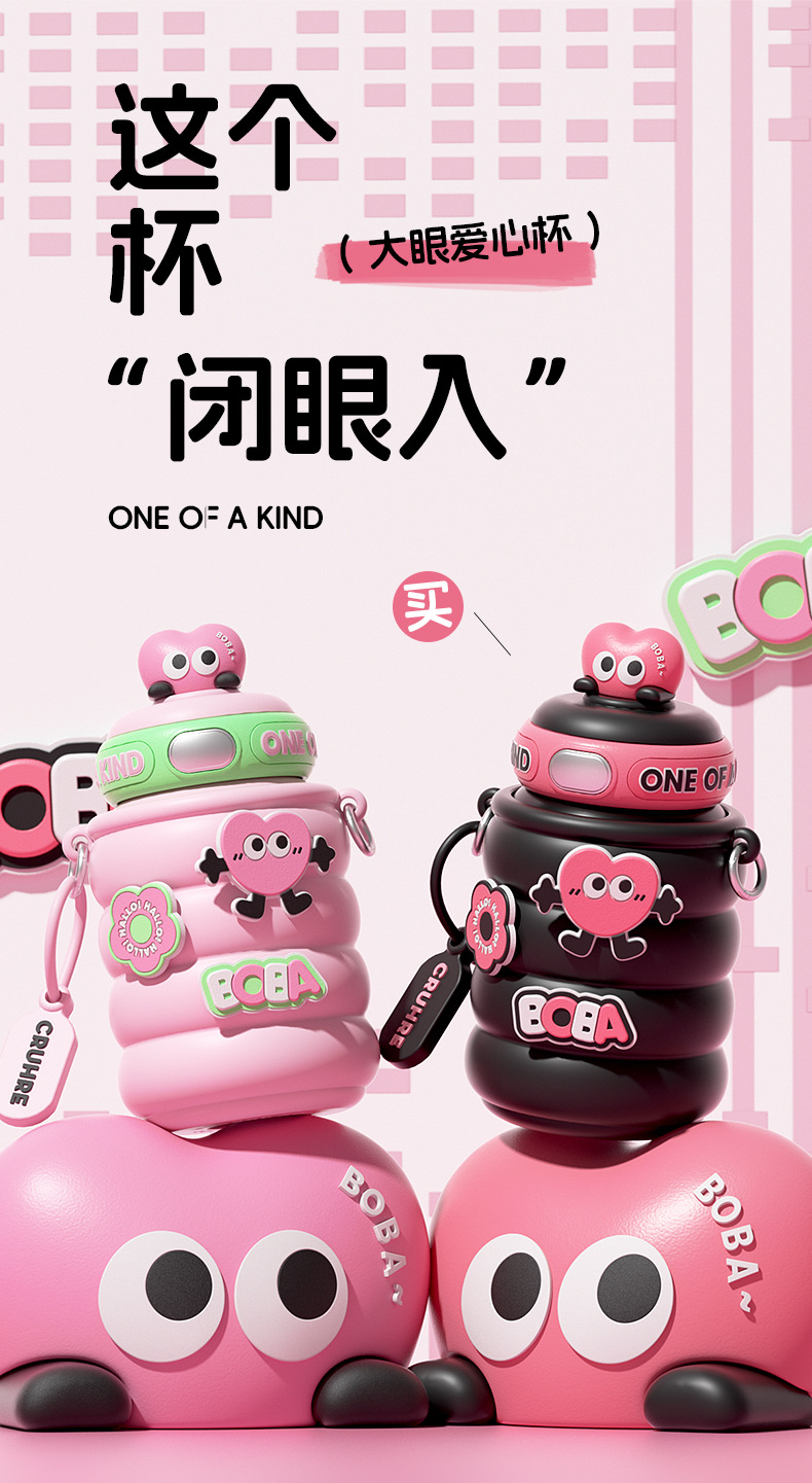 可爱儿童吸管杯女生网红便携保温杯子卡通公仔饮水壶外出便携水杯