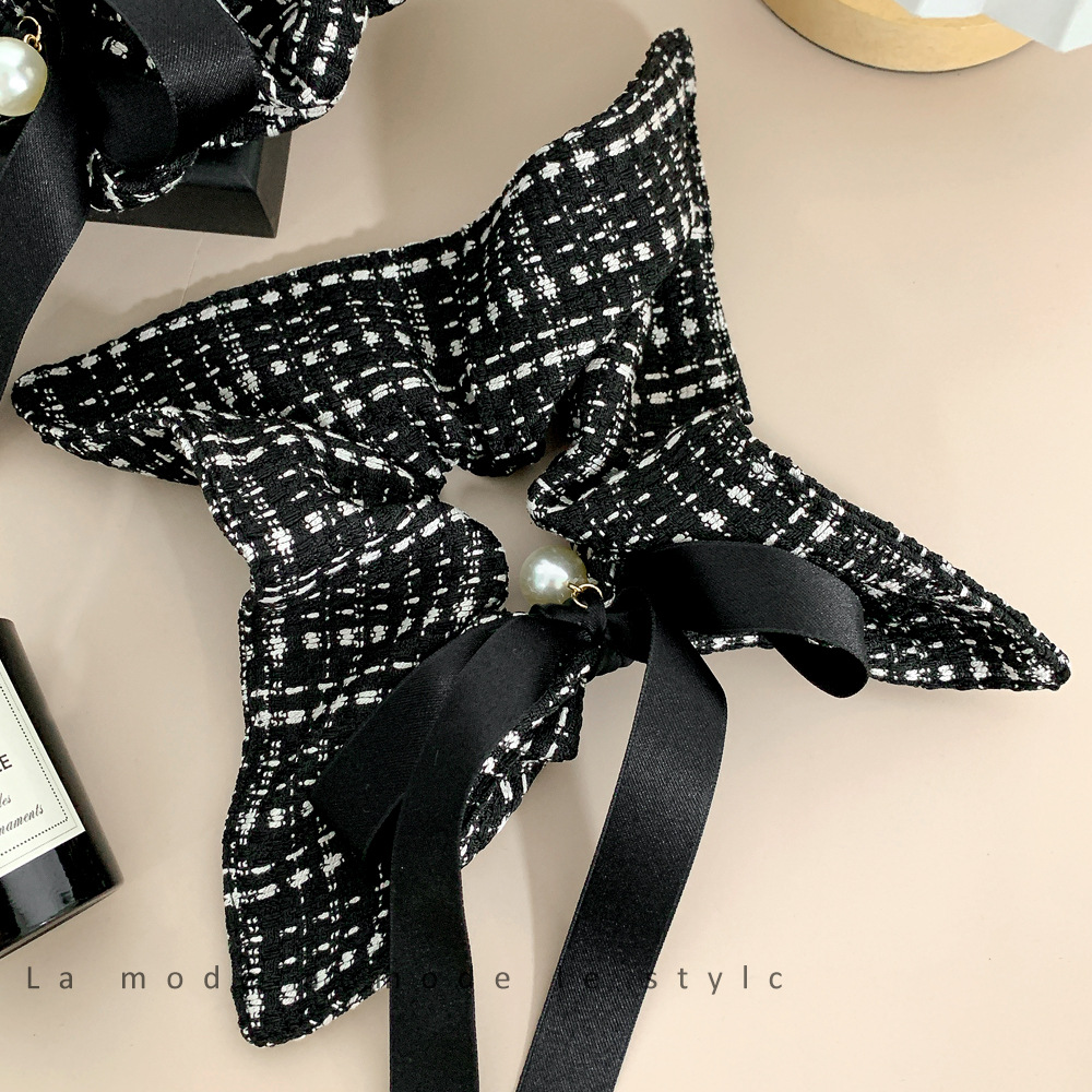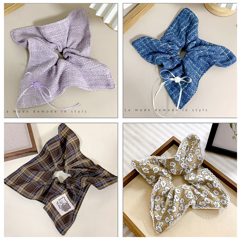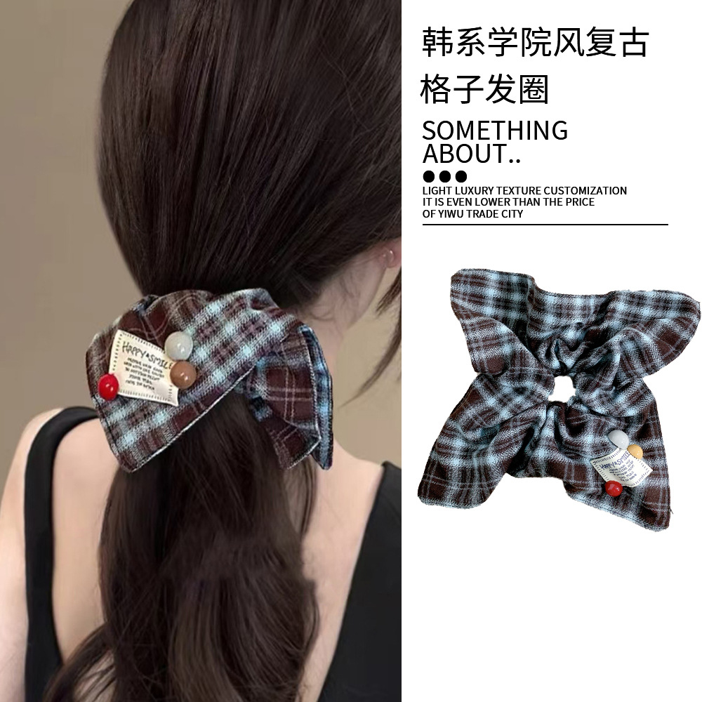 美拉德风格子方巾扎发发圈韩国头绳高弹力扎发发圈发饰
