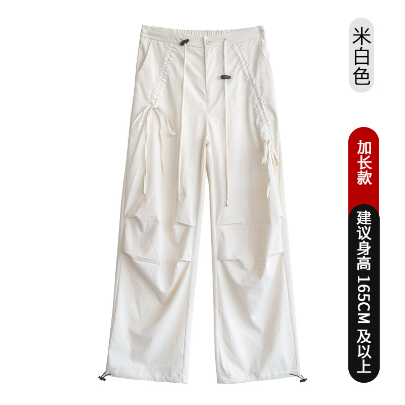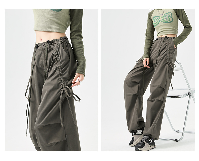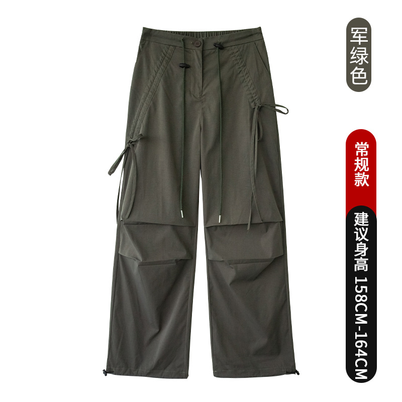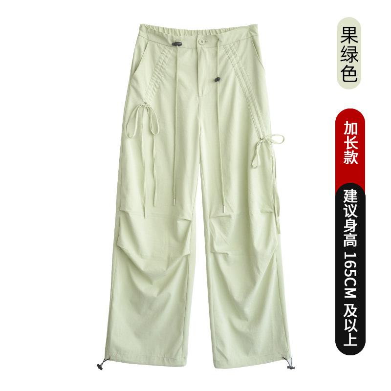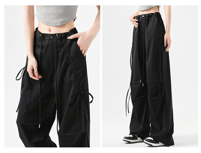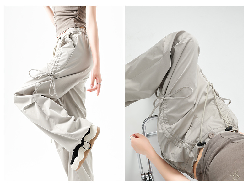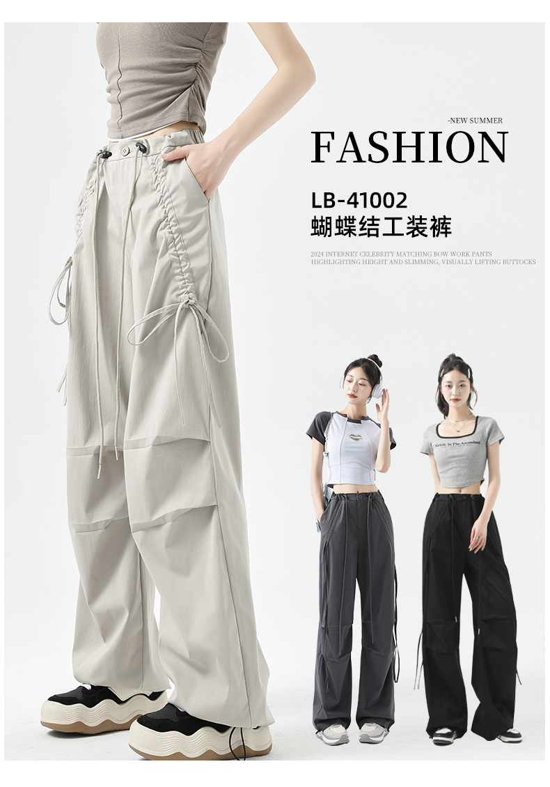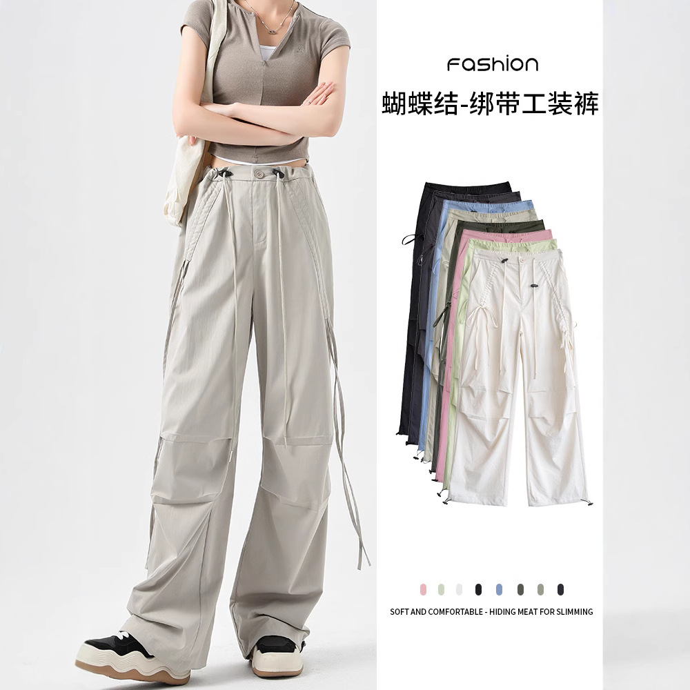 美式蝴蝶结绑带工装裤女粉色春季新款速干休闲裤小个子休闲长裤子