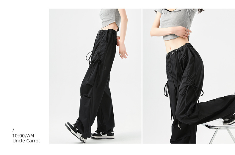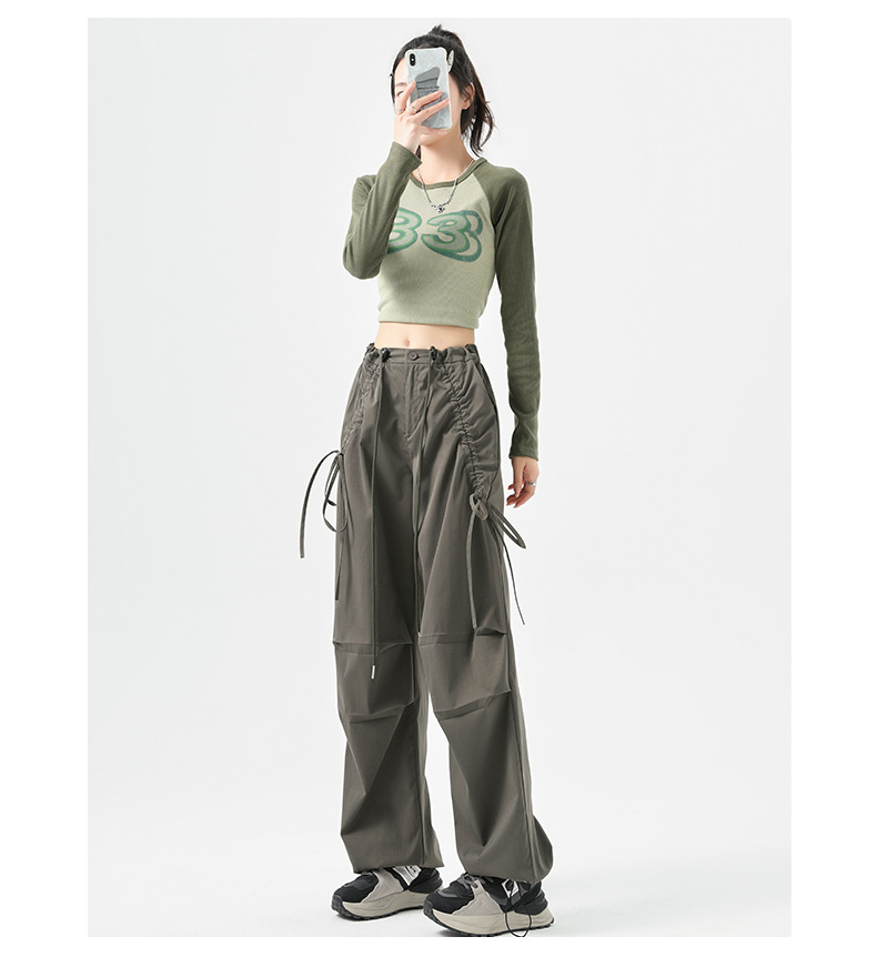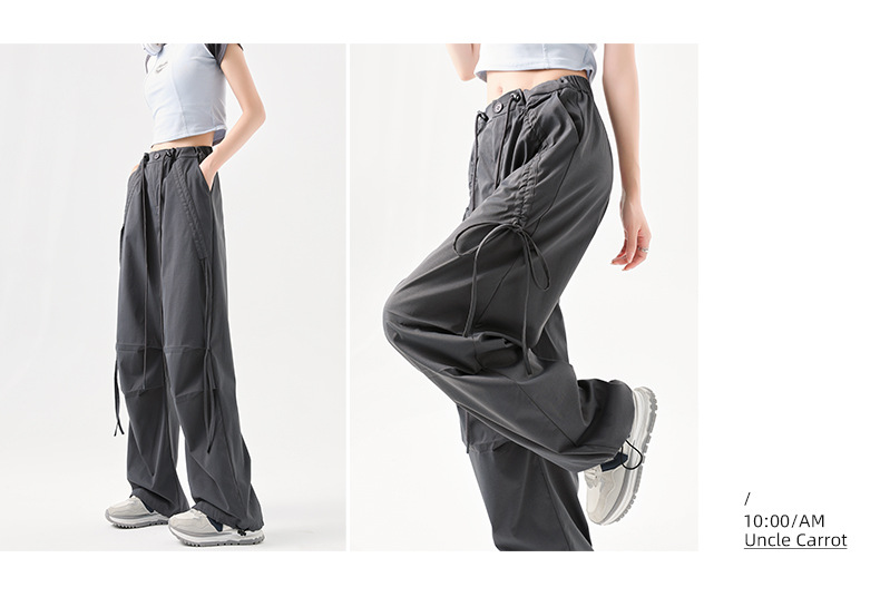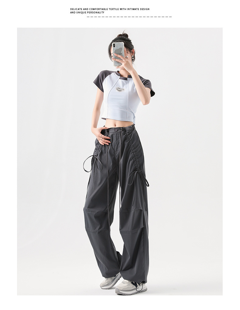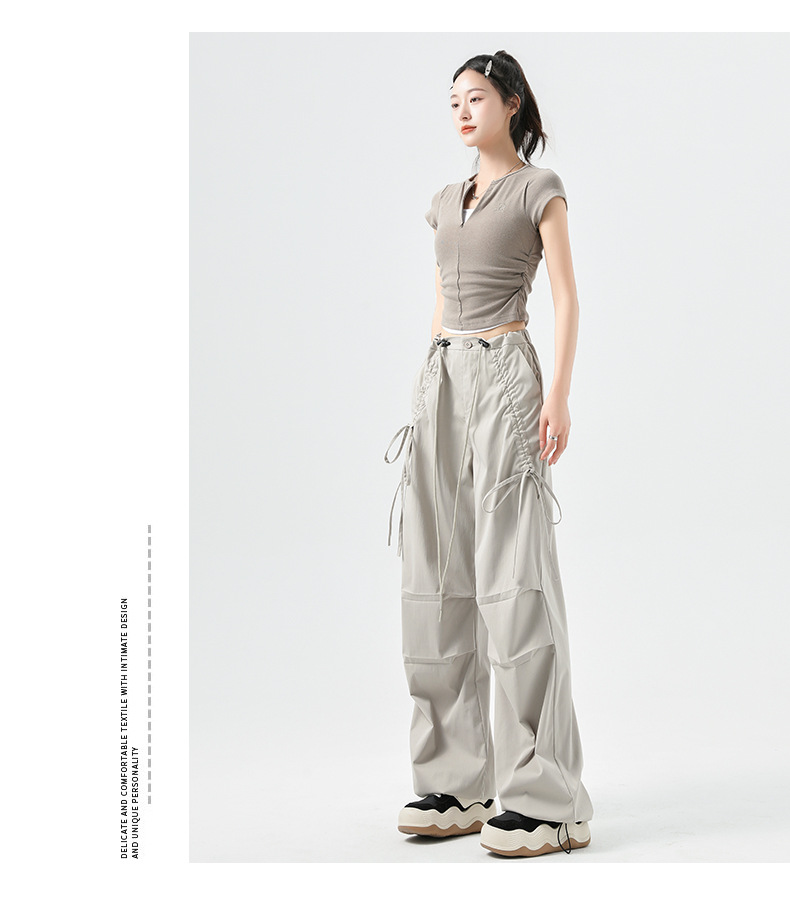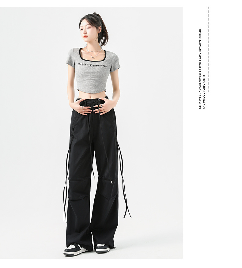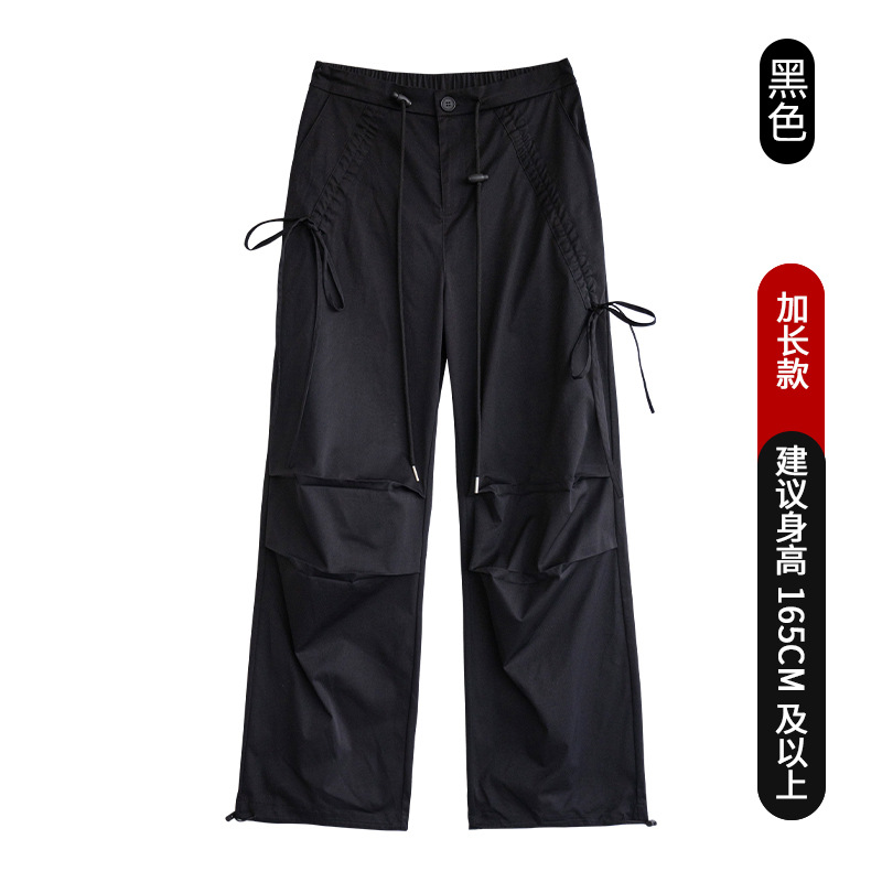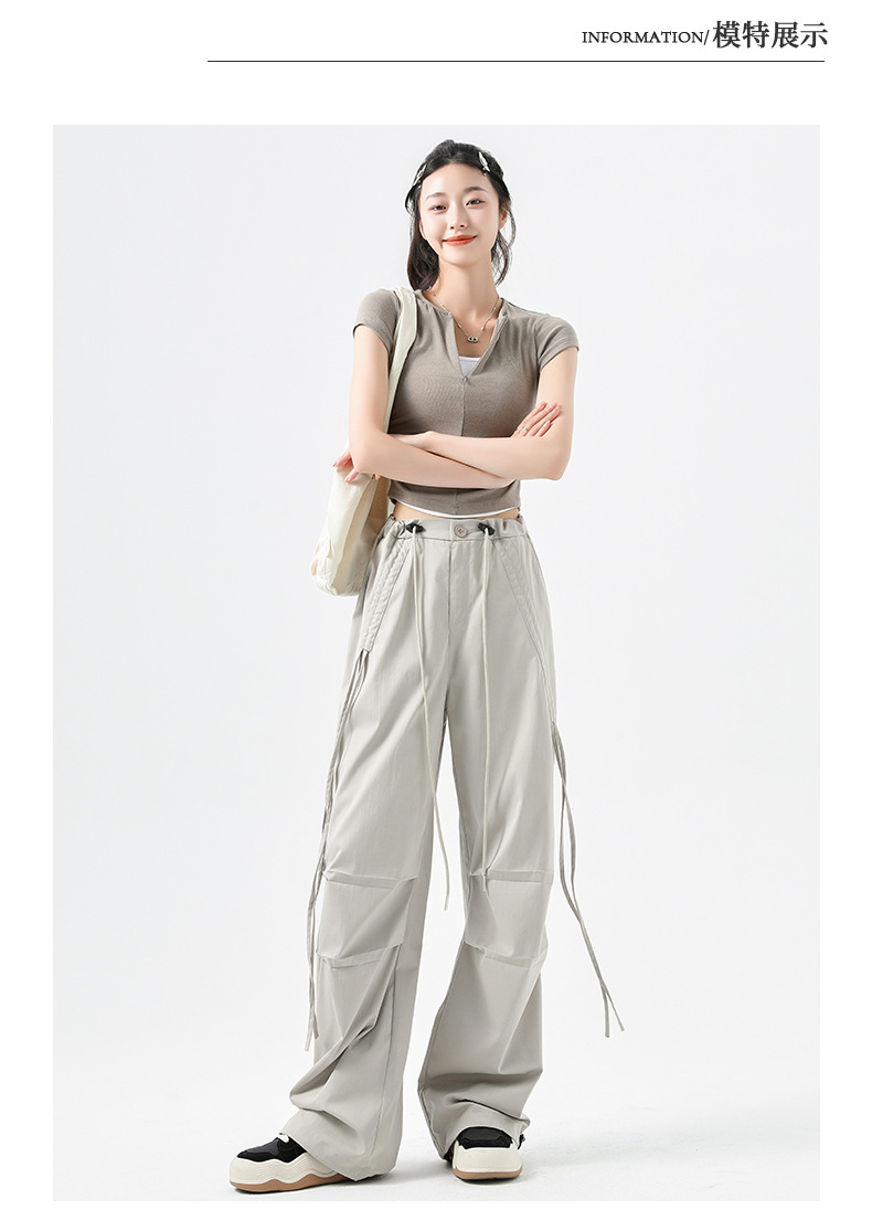 美式蝴蝶结绑带工装裤女粉色春季新款速干休闲裤小个子休闲长裤子