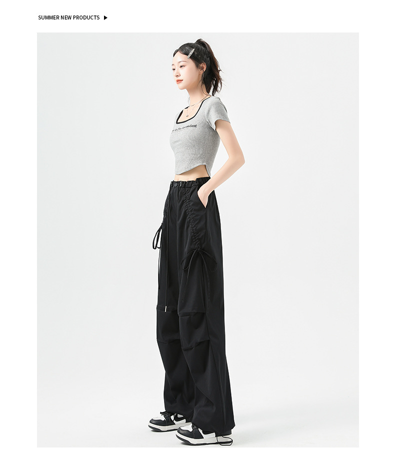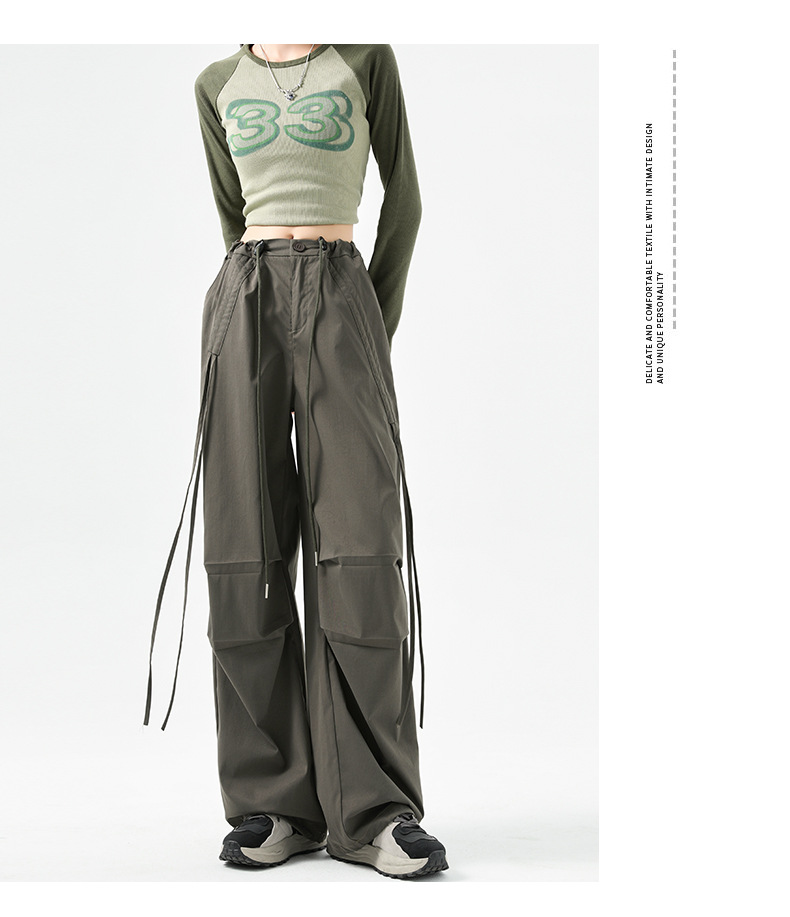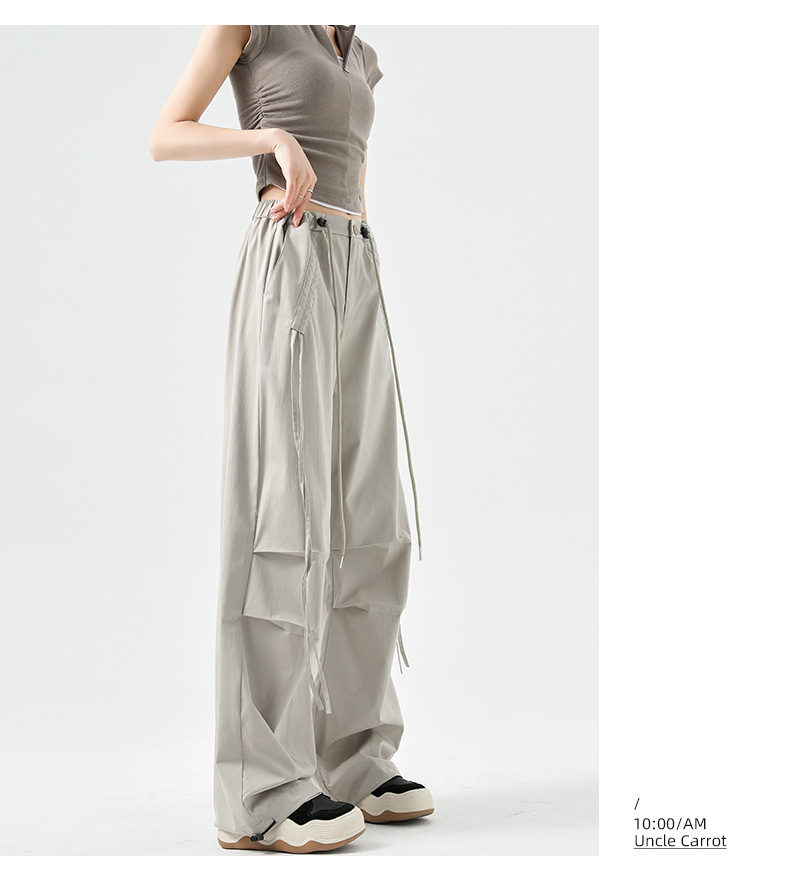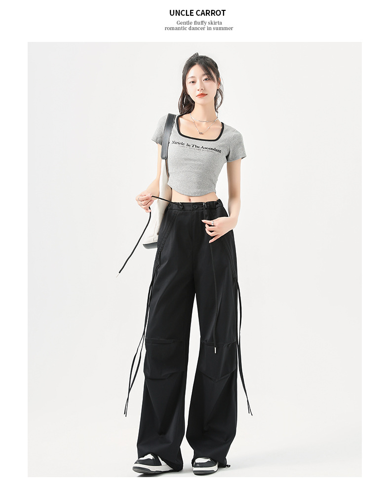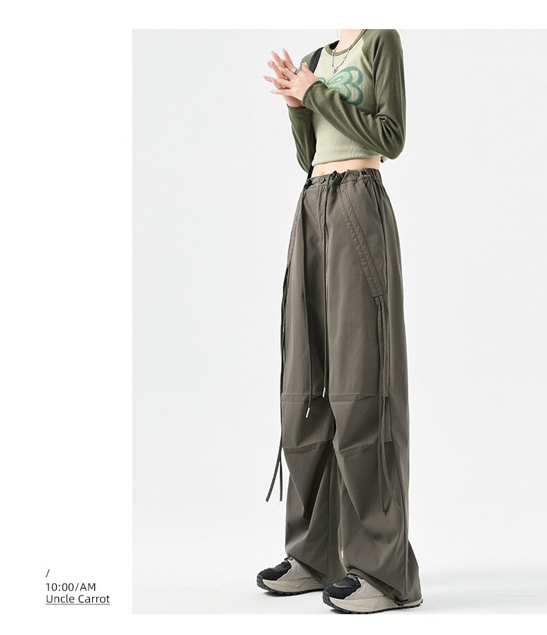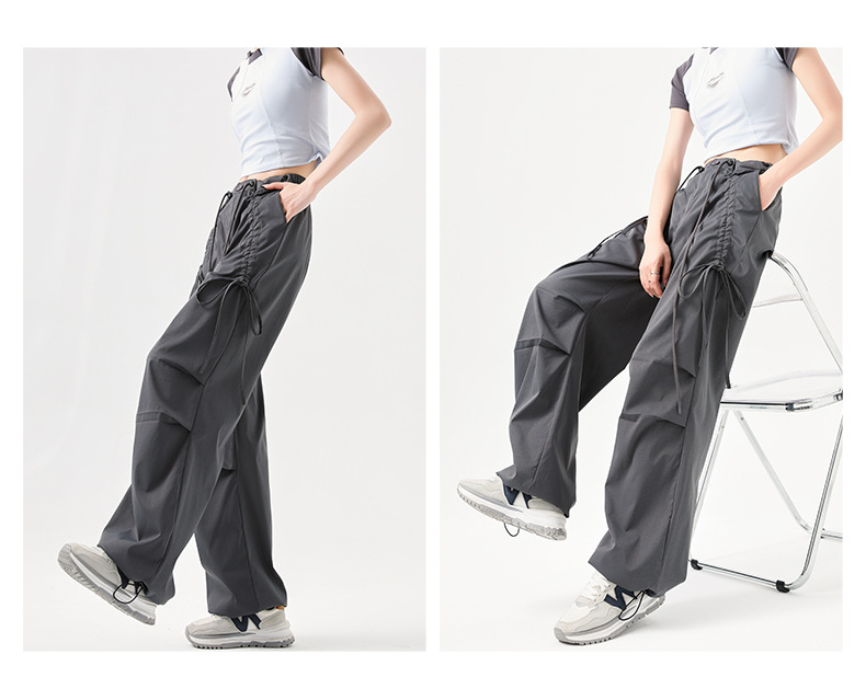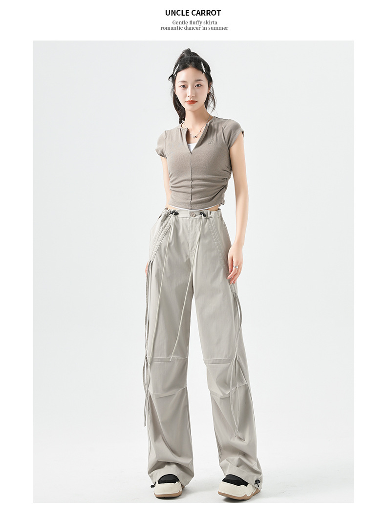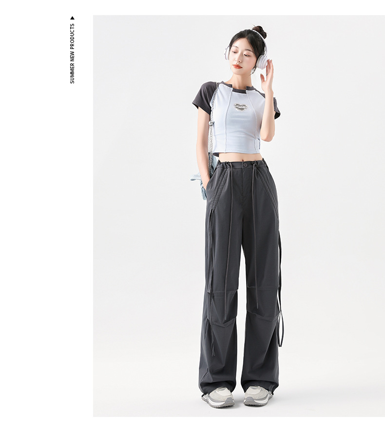 美式蝴蝶结绑带工装裤女粉色春季新款速干休闲裤小个子休闲长裤子
