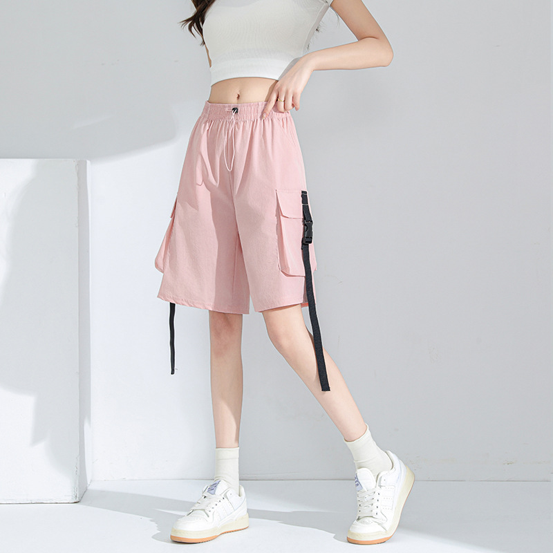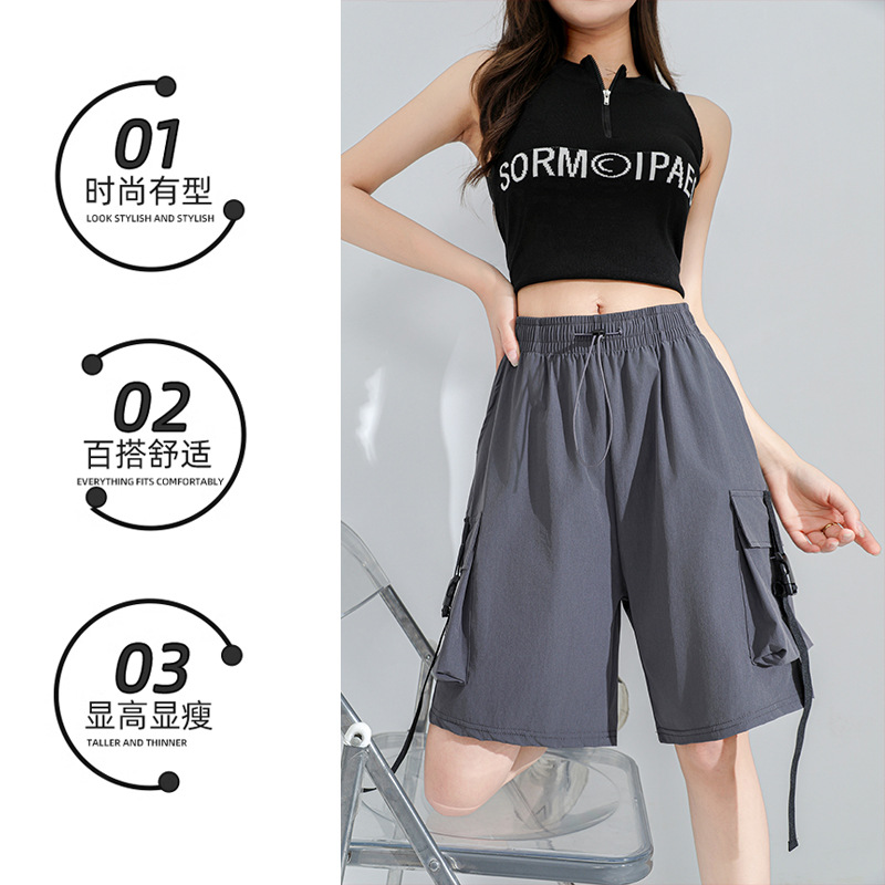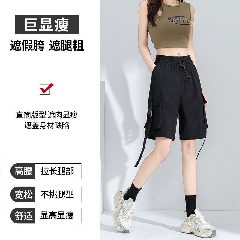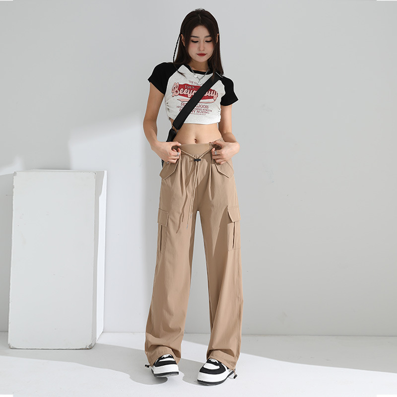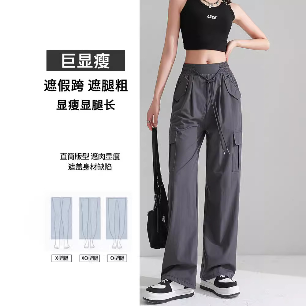 薄款复古工装裤高腰女显瘦垂感阔腿休闲美版运动抽绳裤子