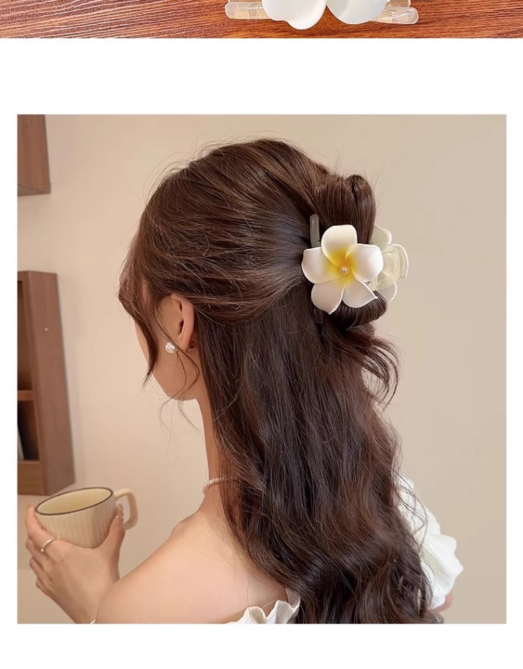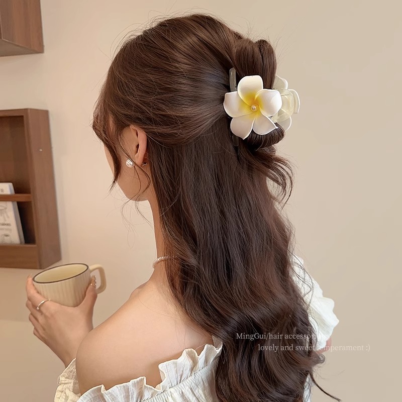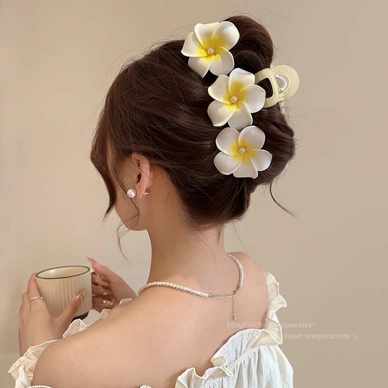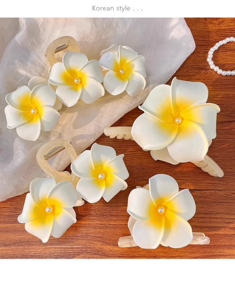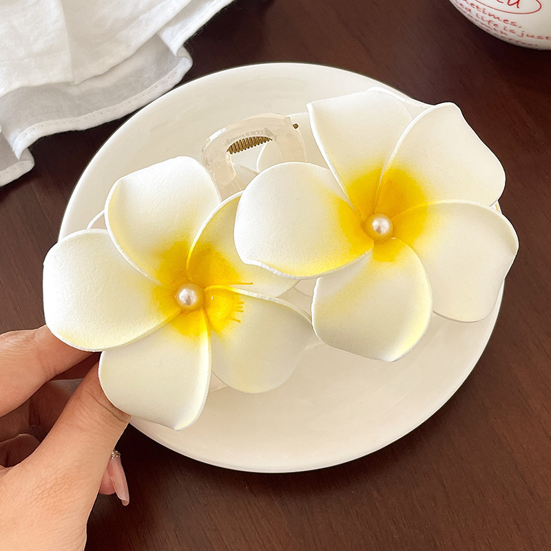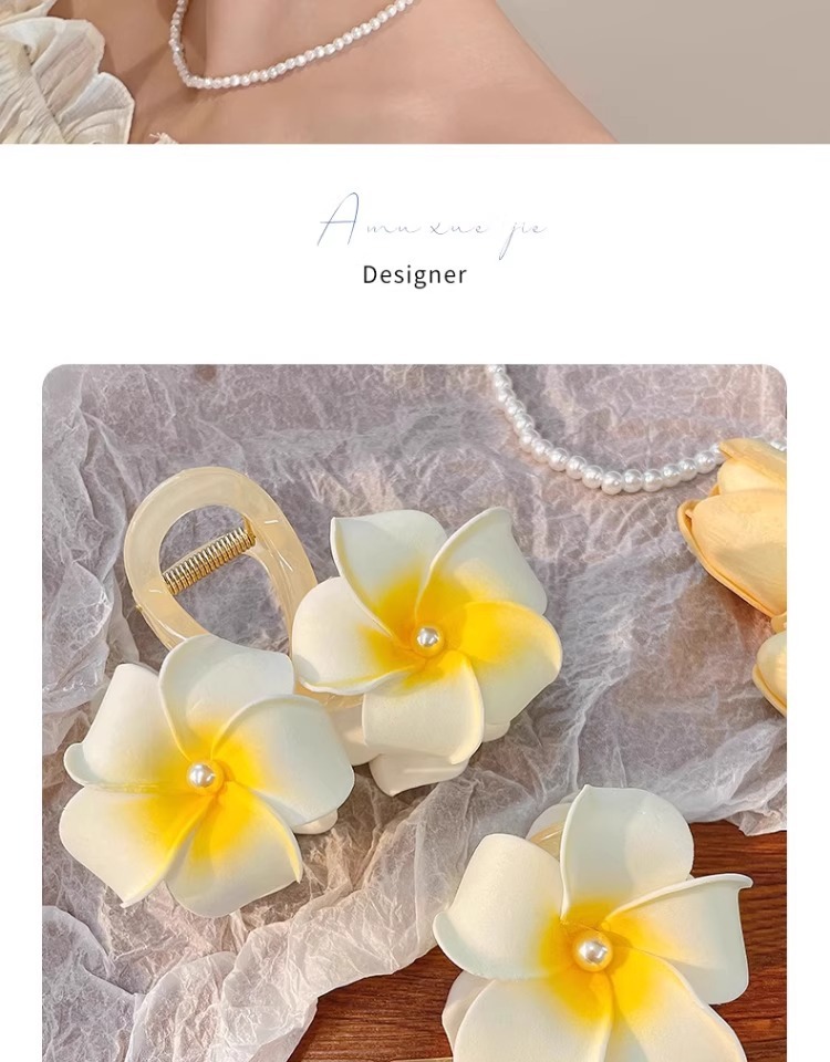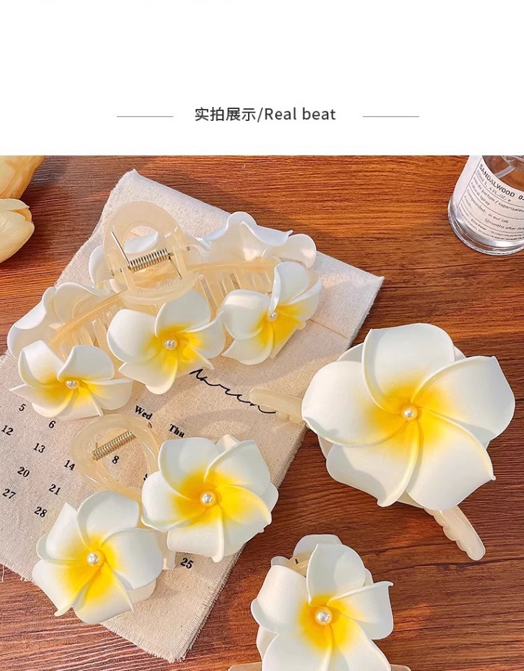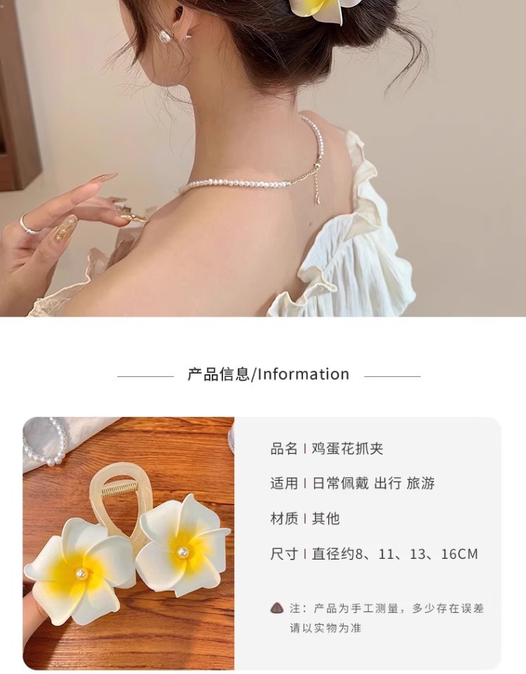 2025新款花朵发夹鸡蛋花抓夹女头花盘发鲨鱼夹子头饰