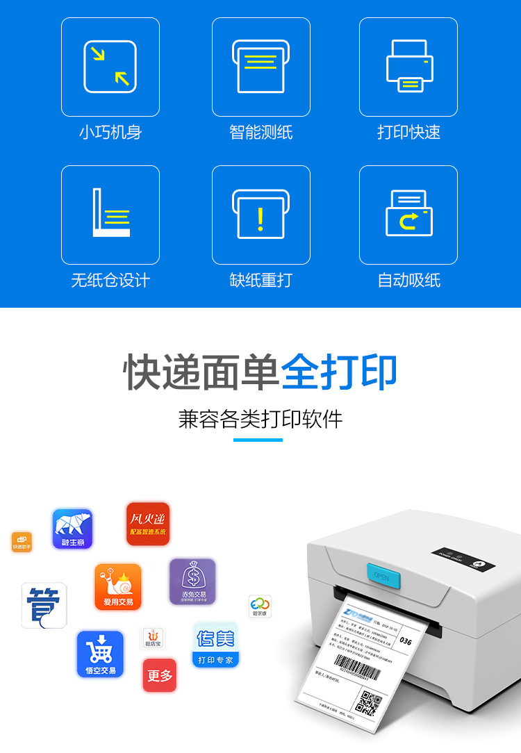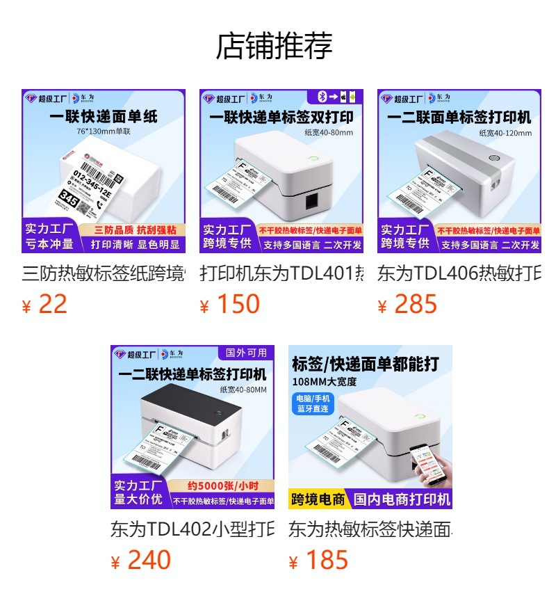 东为热敏快递面单打印机TDL402H蓝牙打单机跨境电商3寸标签打印机