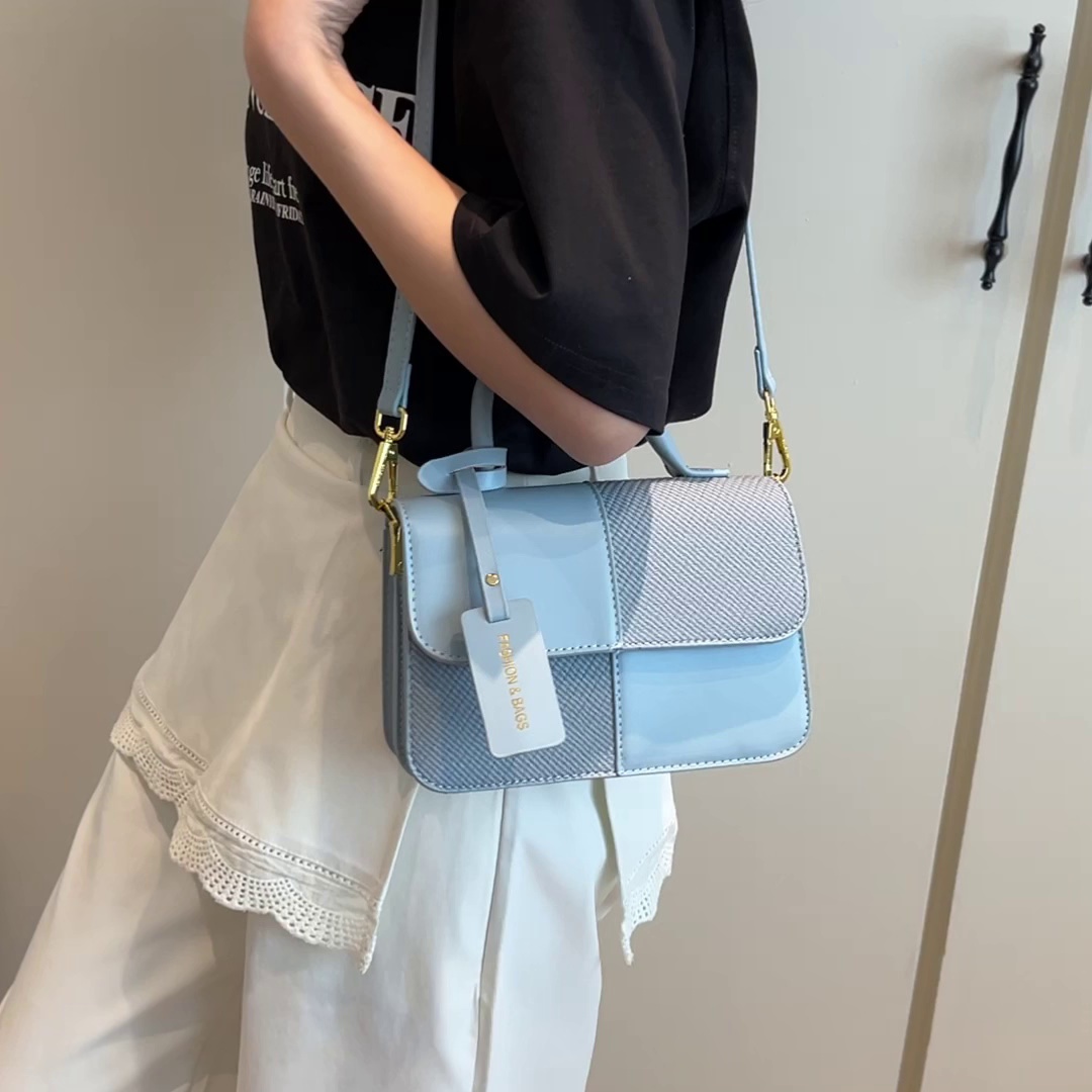新款简约撞色斜挎包时尚复古小方包高级单肩包潮流女包6774