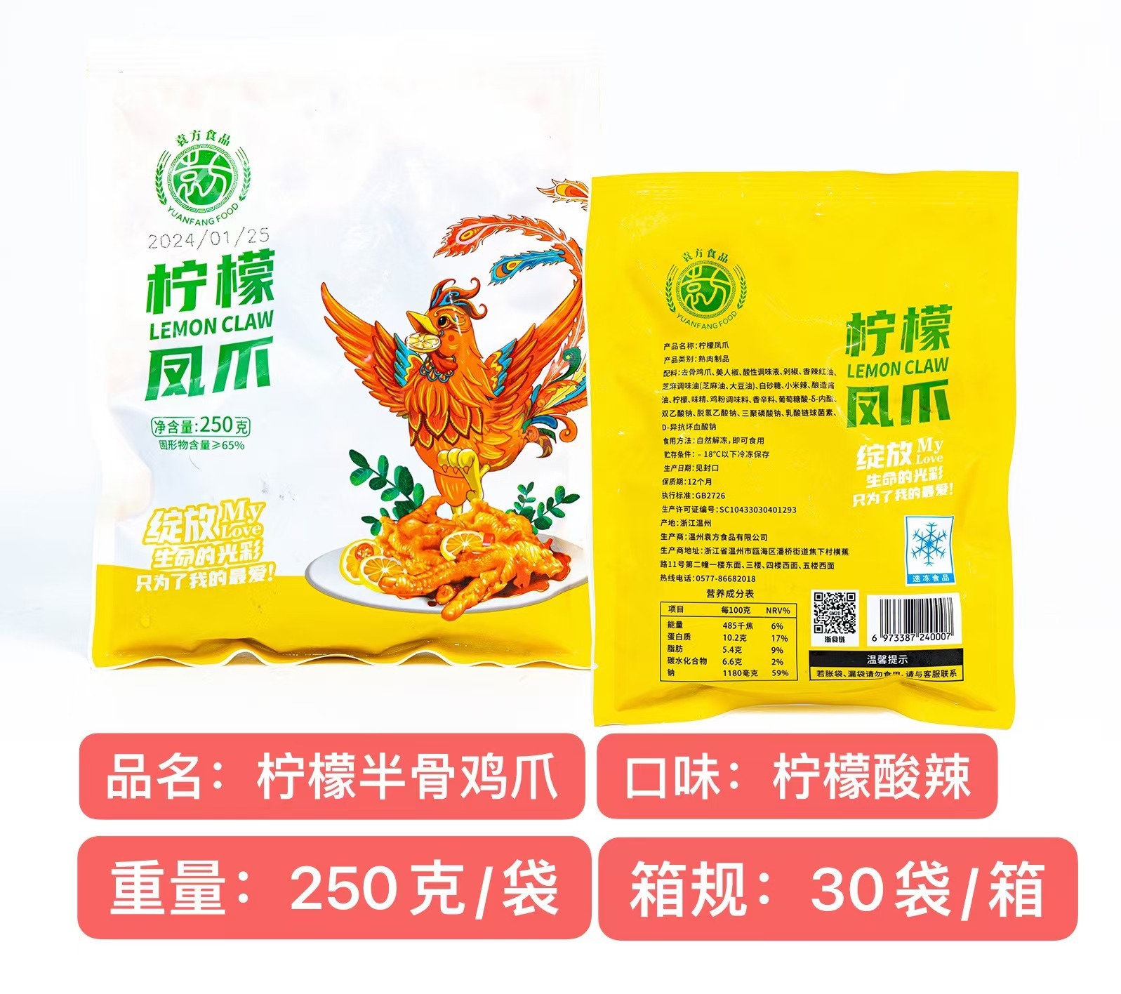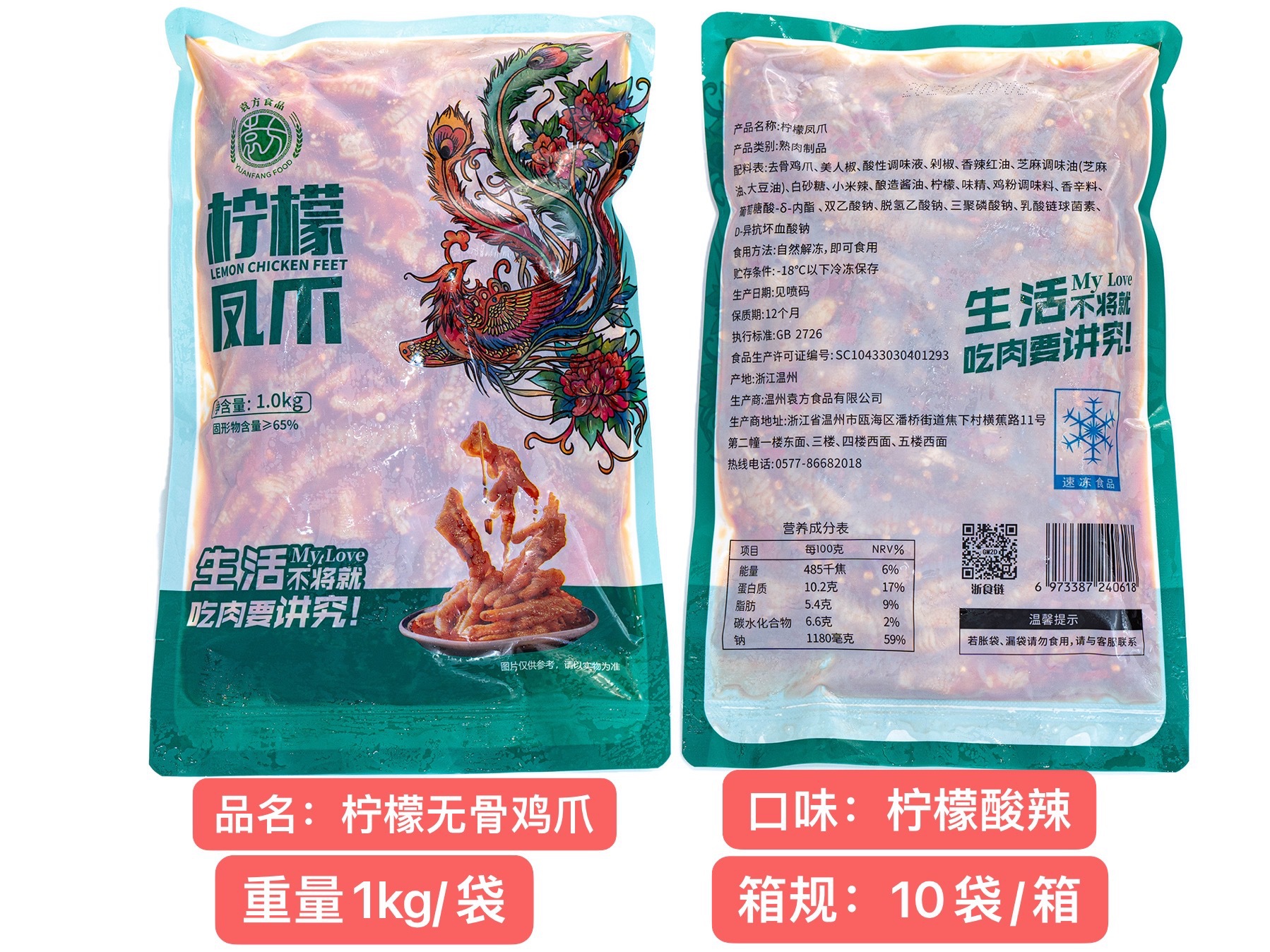 包邮袁方柠檬酸辣无骨鸡爪开袋即食凉菜小吃酒店餐饮脱骨凤爪批发