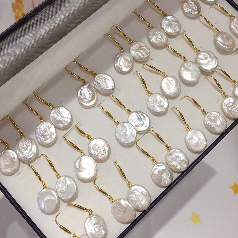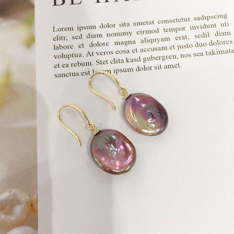 诸暨天然淡水珍珠耳环女18K包金轻奢高级风异形巴洛克珍珠耳勾