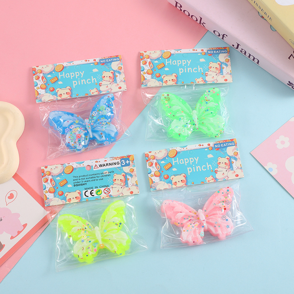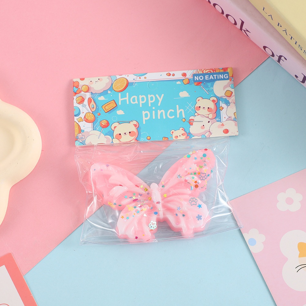 解压蝴蝶捏捏乐卡通大号硅胶亮片捏捏厚款加大解压慢回弹玩具批发
