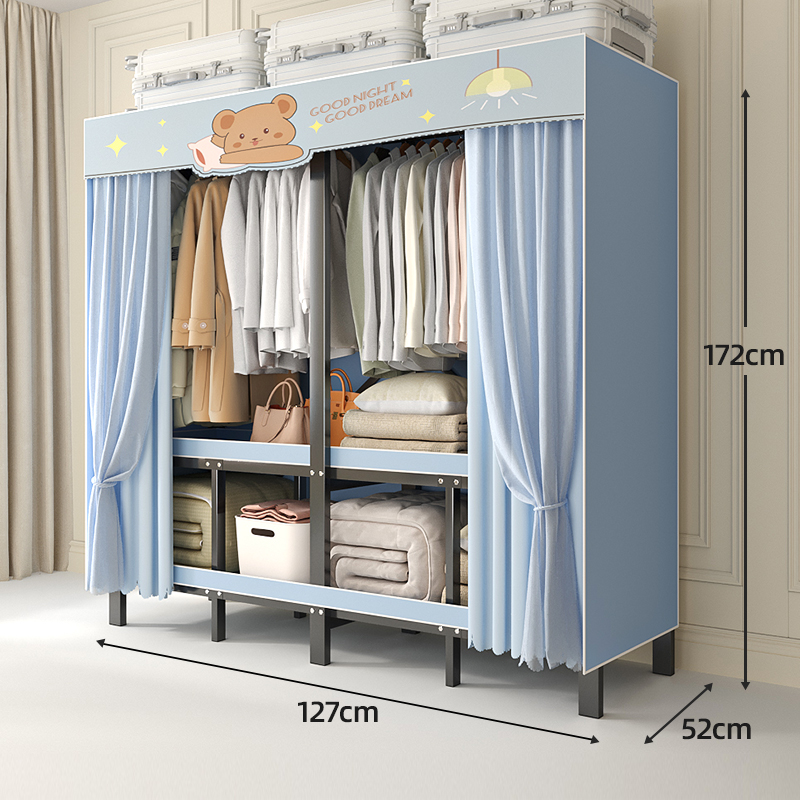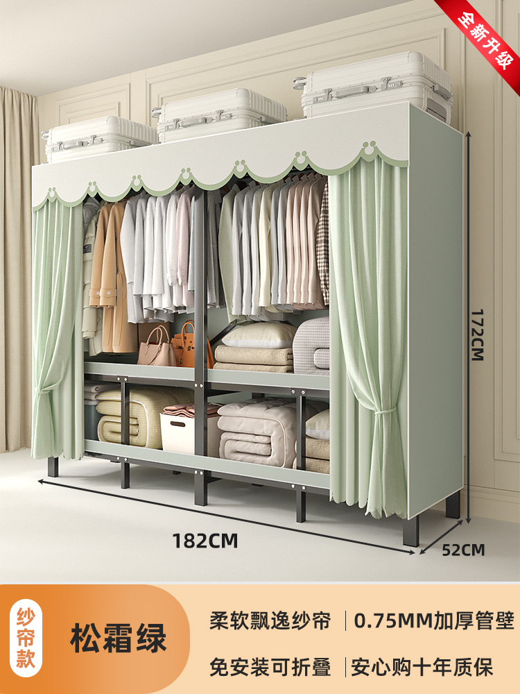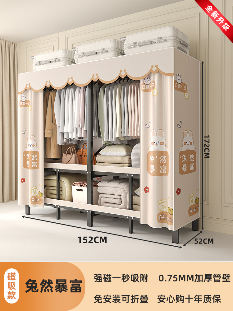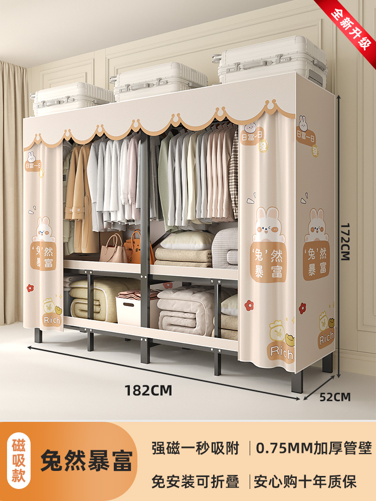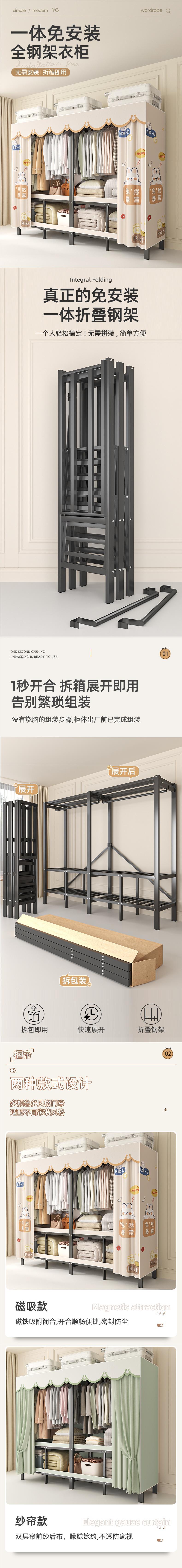折叠衣柜折叠式简易卧室宿舍加厚无需安装出租房钢架衣服收纳衣橱