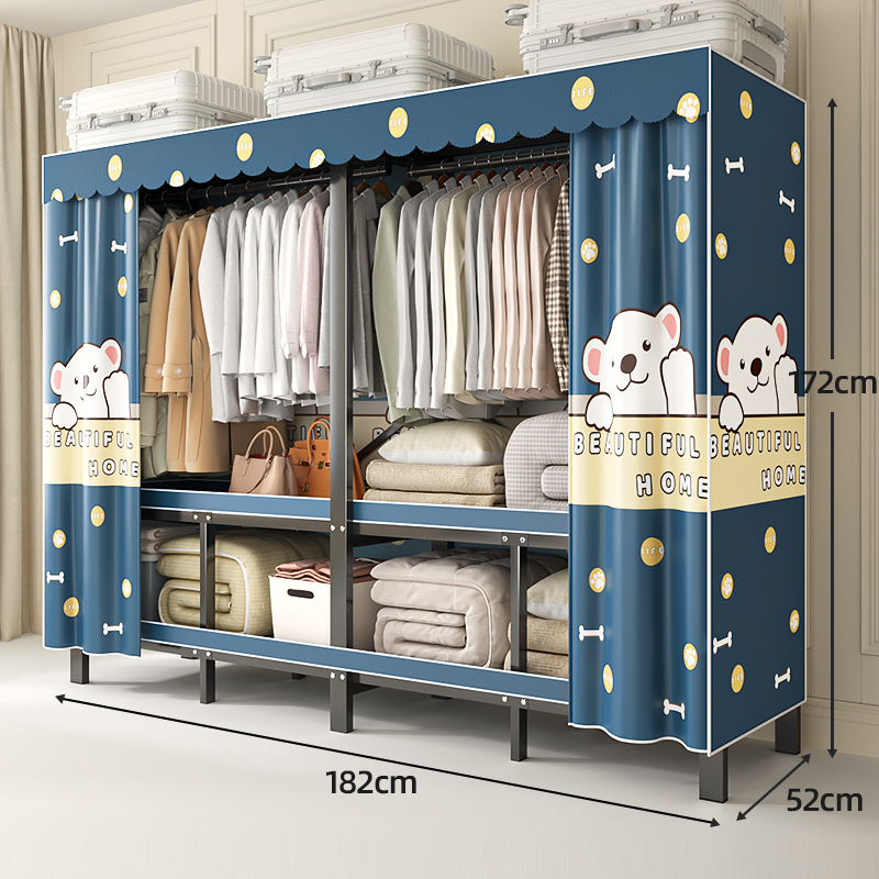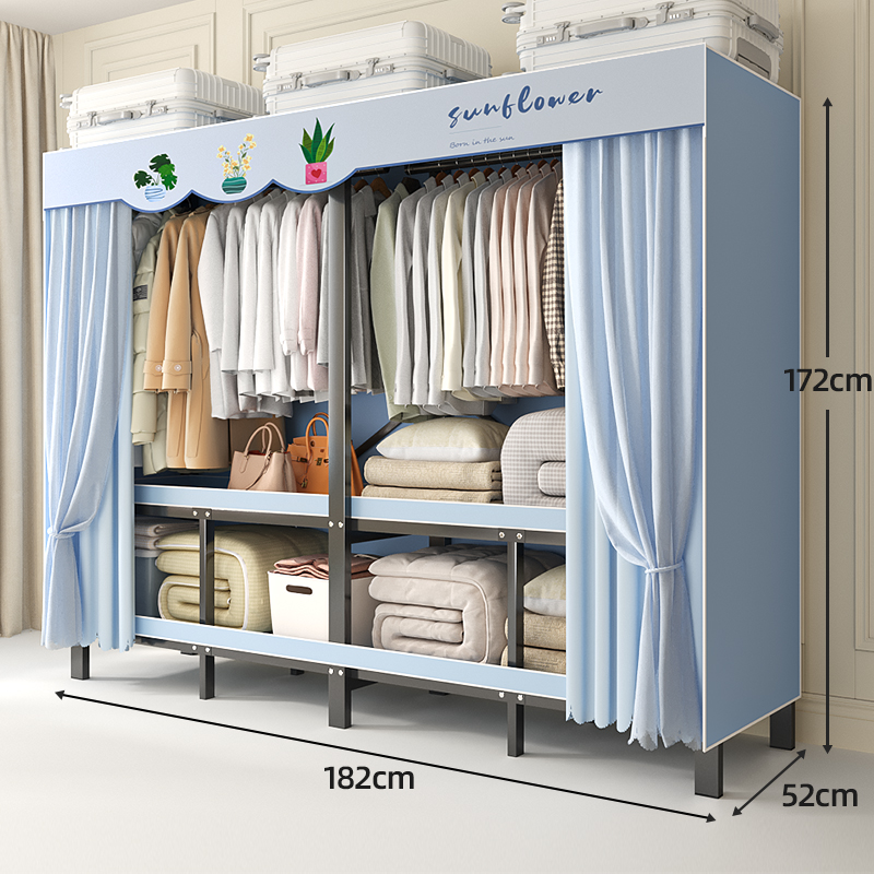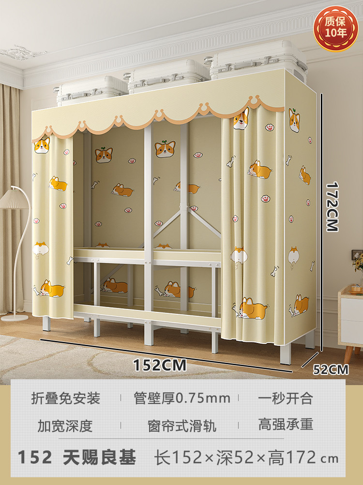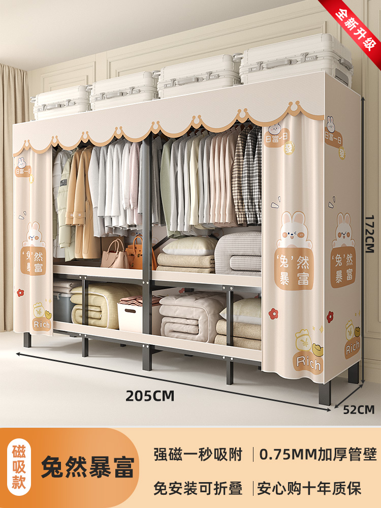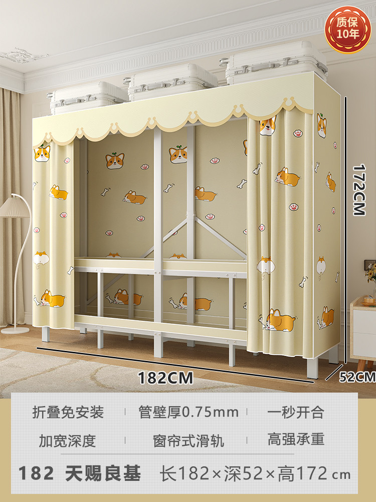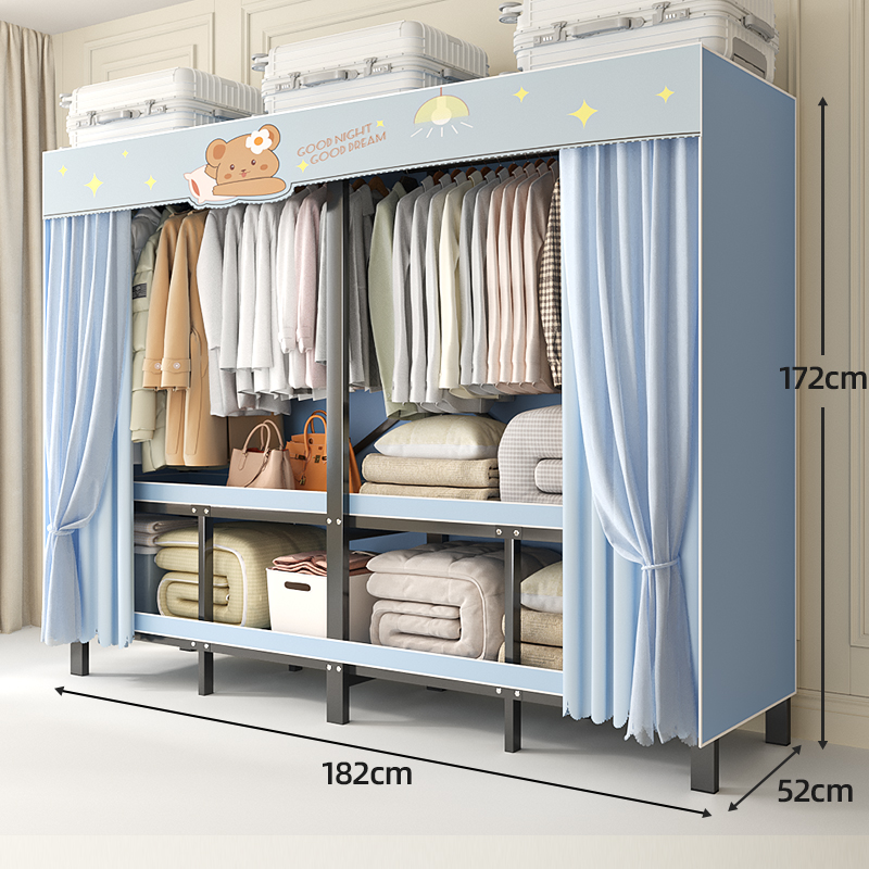 折叠衣柜折叠式简易卧室宿舍加厚无需安装出租房钢架衣服收纳衣橱