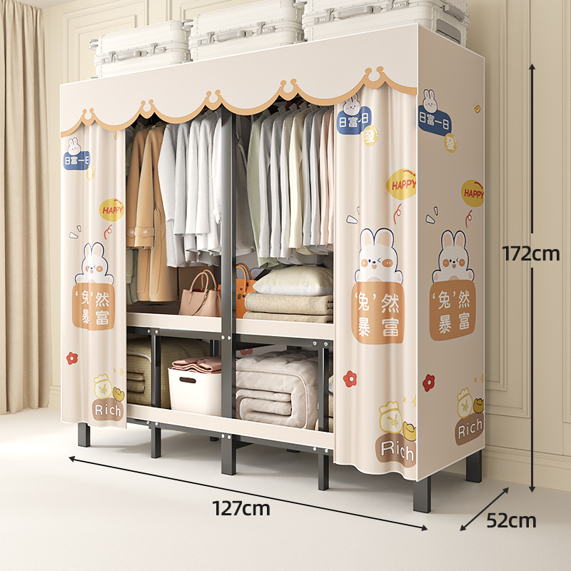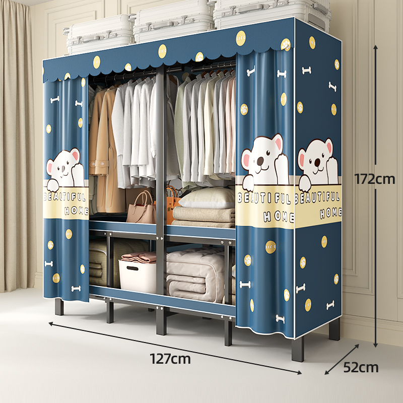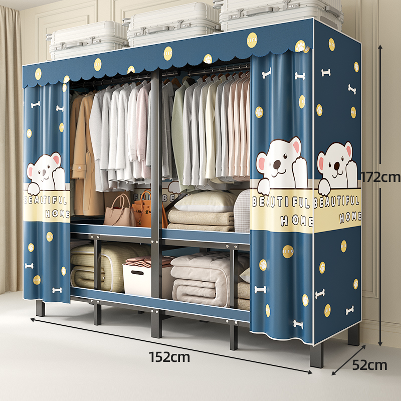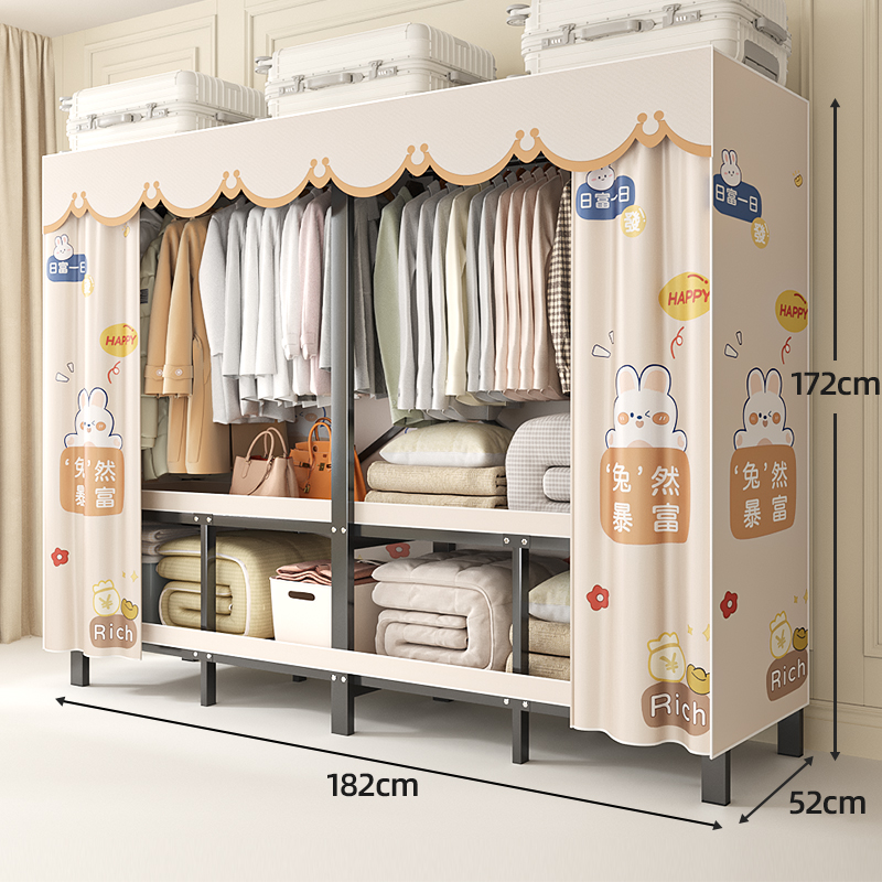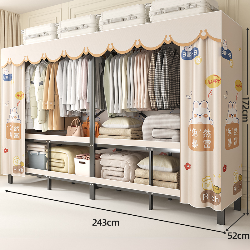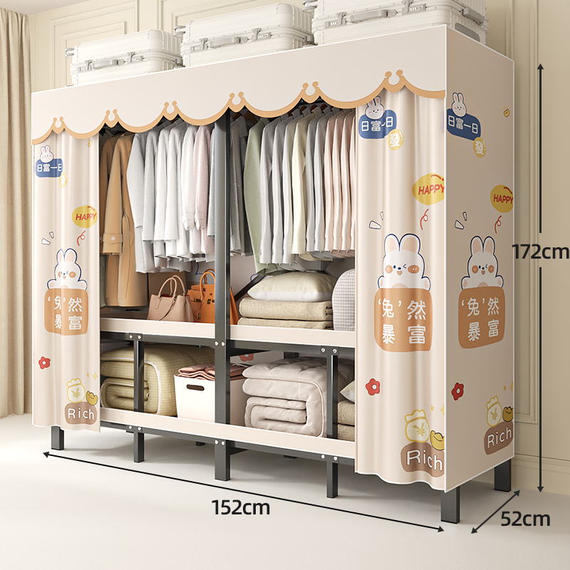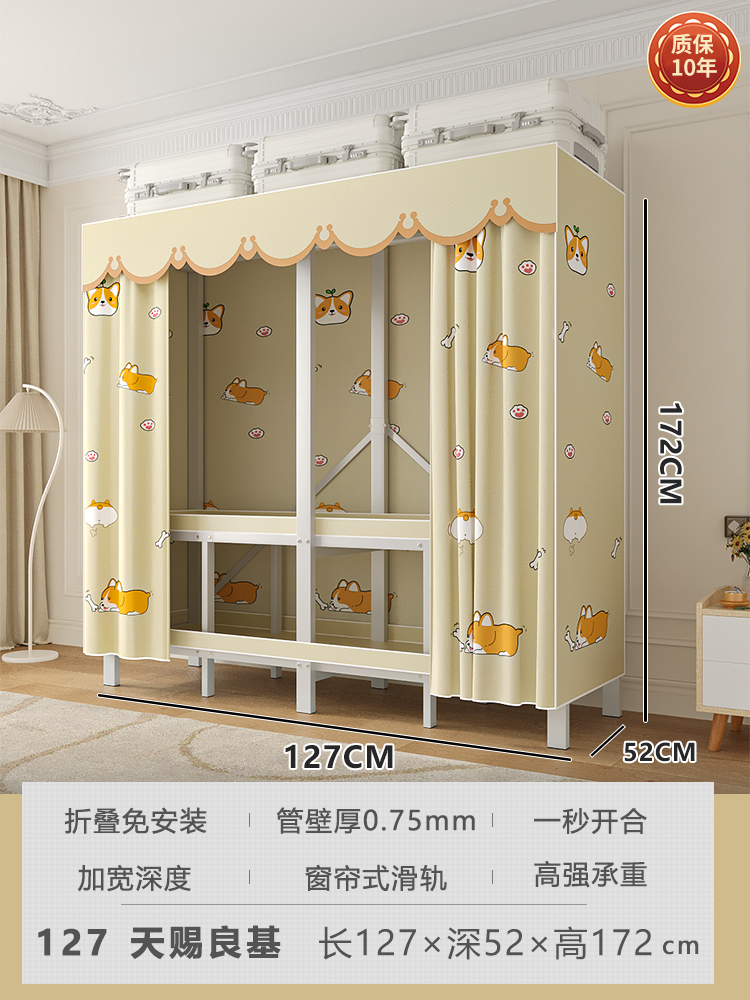 折叠衣柜折叠式简易卧室宿舍加厚无需安装出租房钢架衣服收纳衣橱