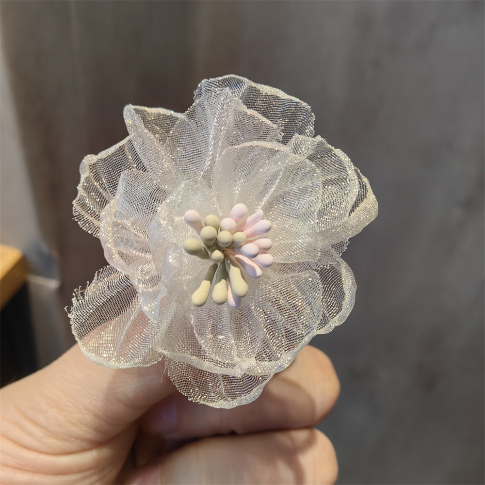 韩国东大门网纱花朵欧根纱超仙珍珠蕾丝蝴蝶结鞋花高级感芭蕾装饰