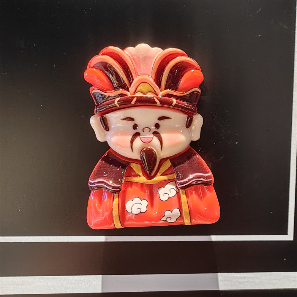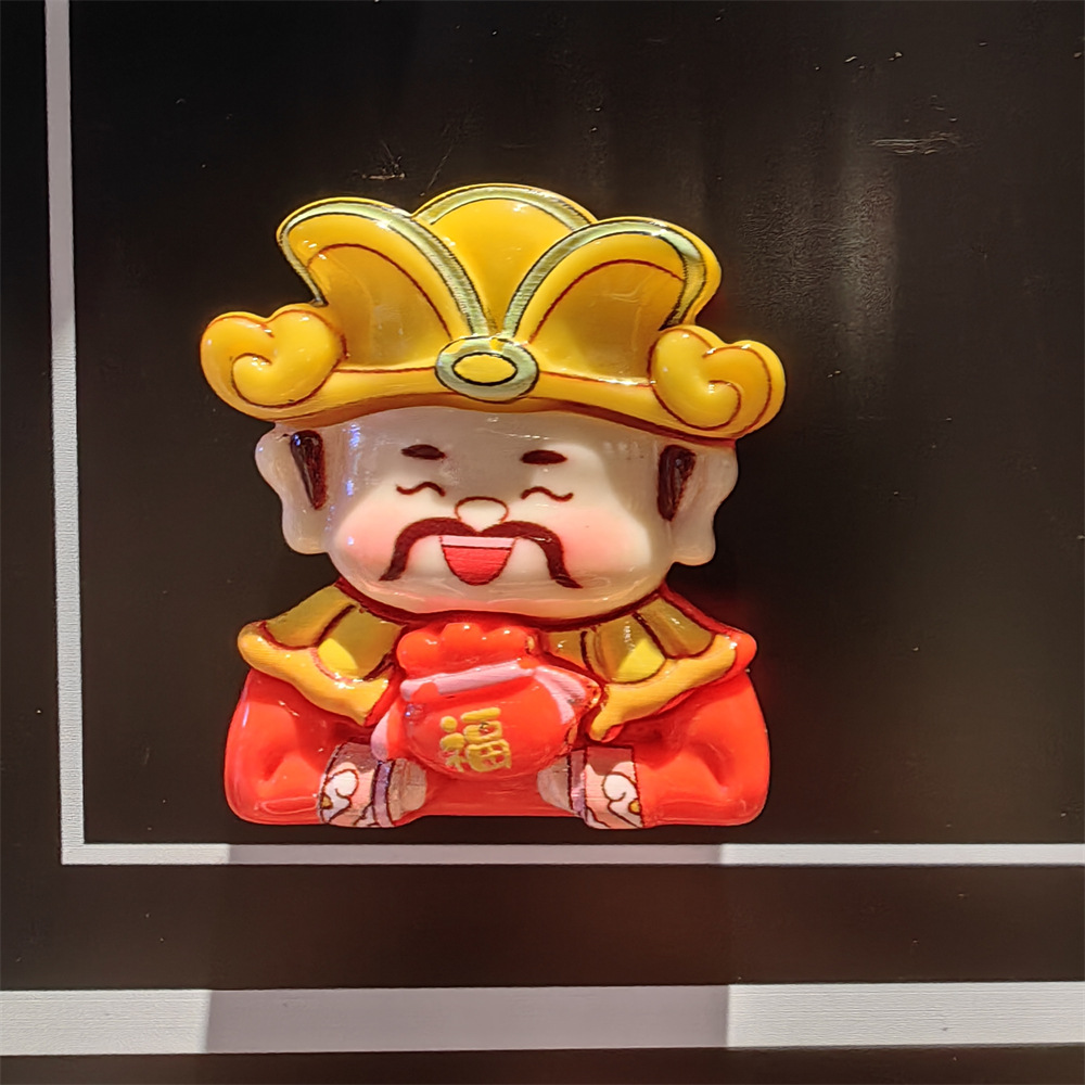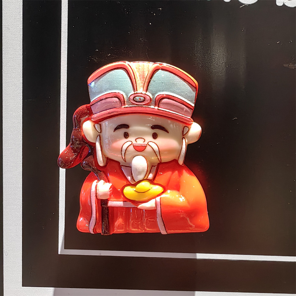 新款红色喜庆新年财神寿星上香冰箱贴磁性贴树脂吸铁石办公桌装饰