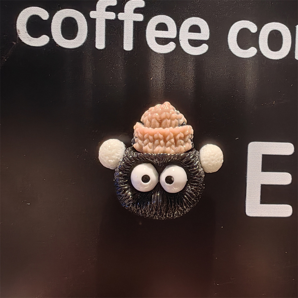 新款毛绒软萌立体可爱煤球眼睛冰箱贴磁铁吸铁石搞怪精灵装饰贴