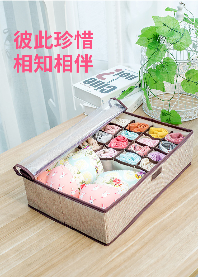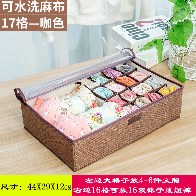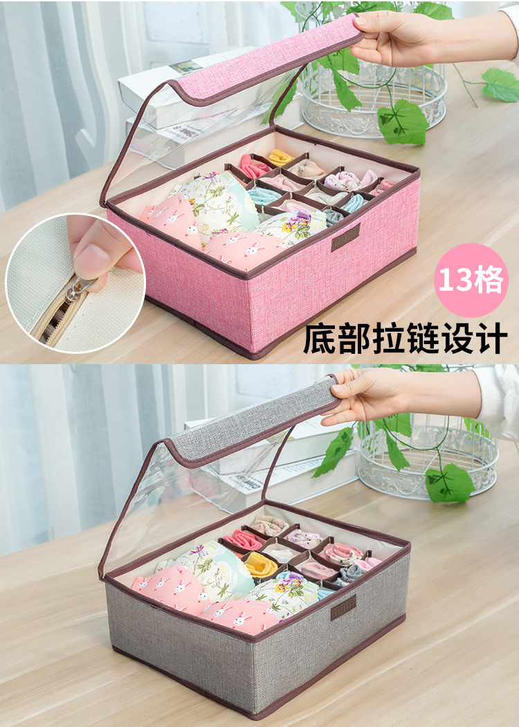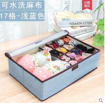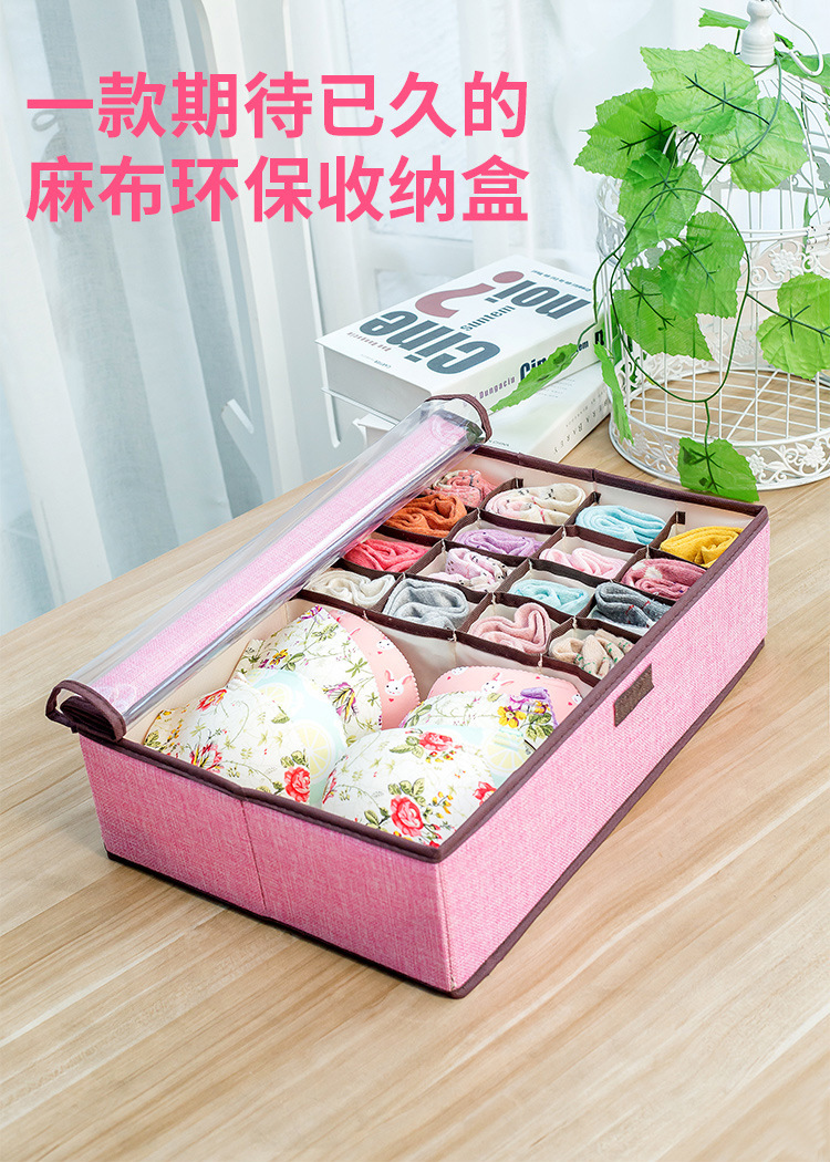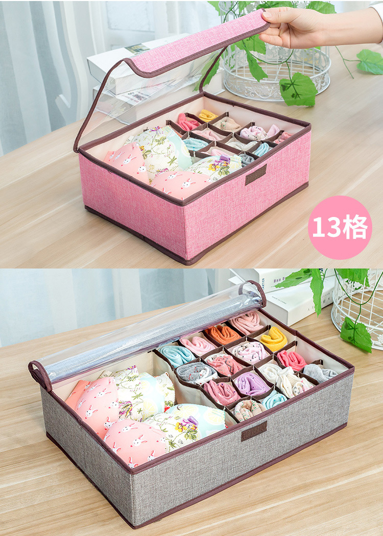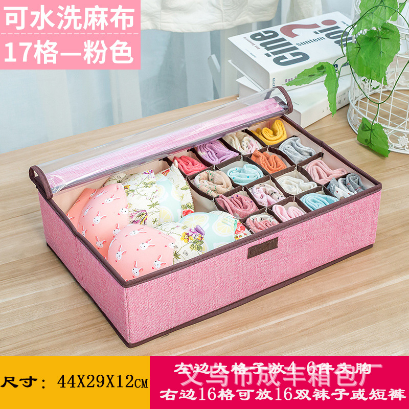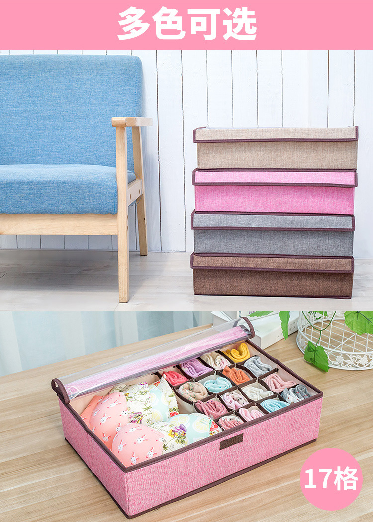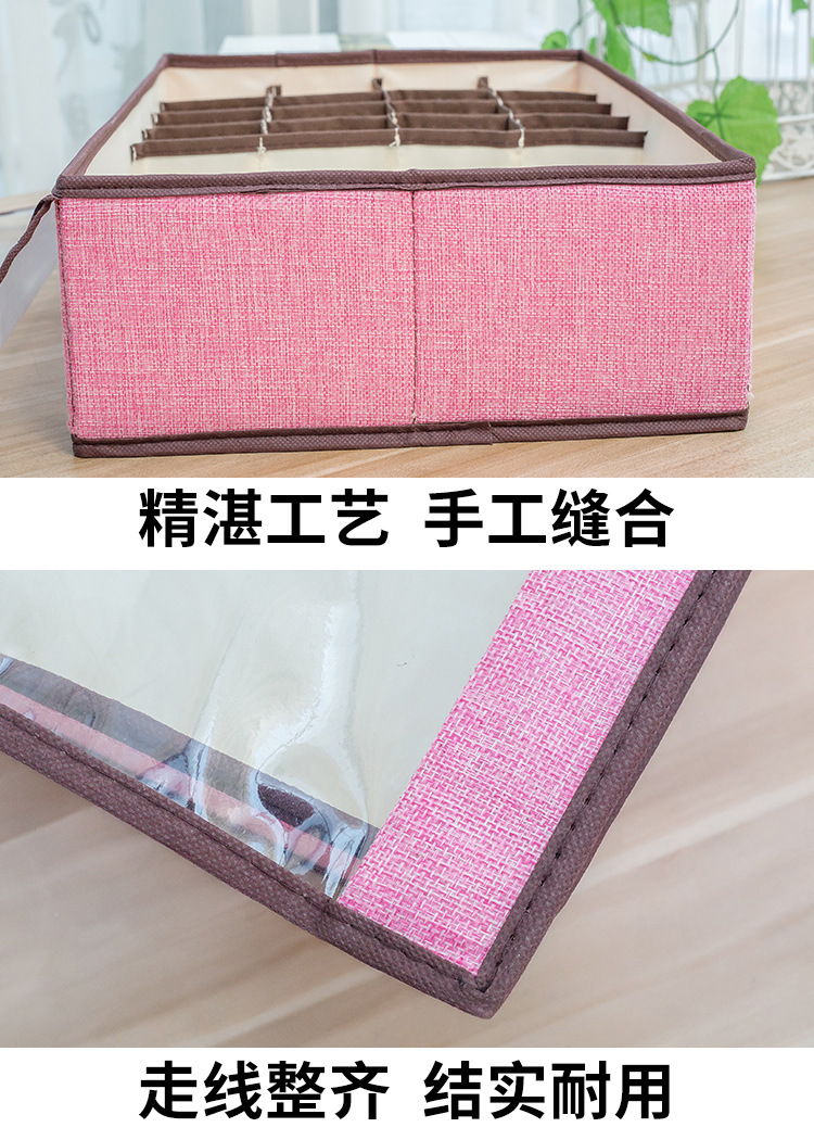 布艺棉麻内衣收纳盒多格可折叠文胸整理盒有盖内裤袜子收纳盒