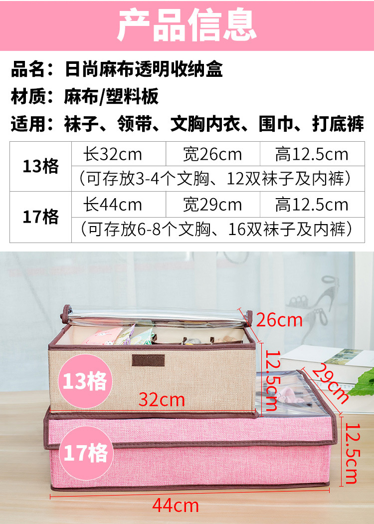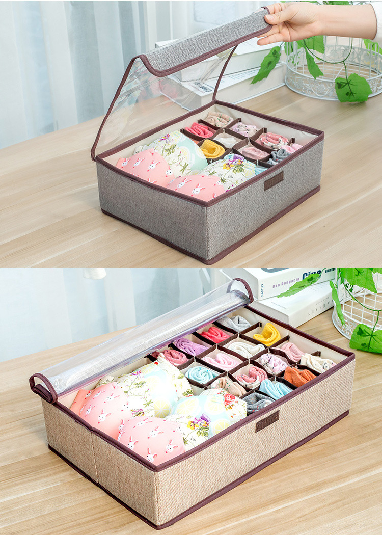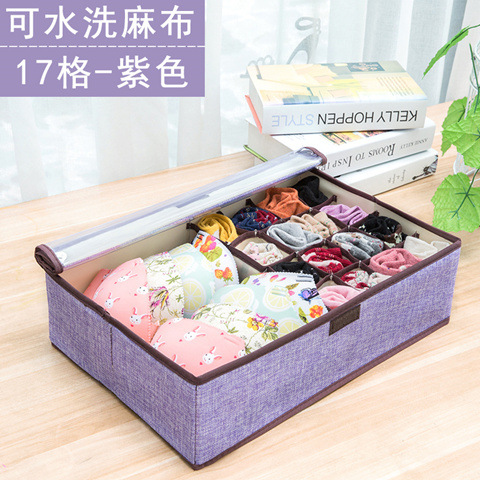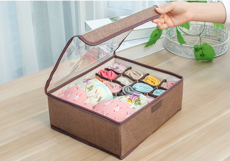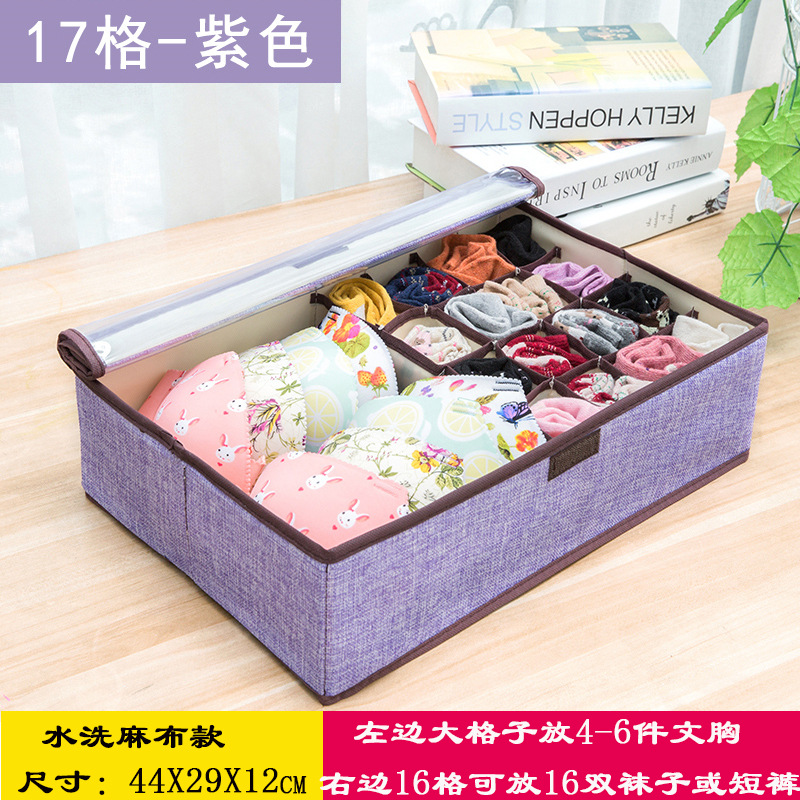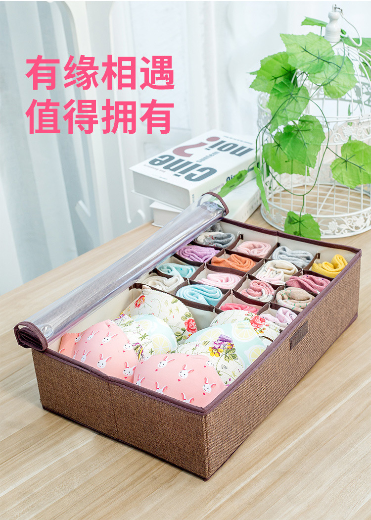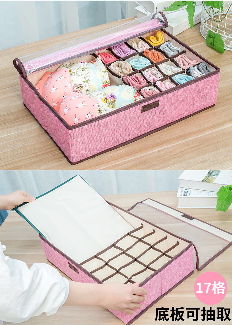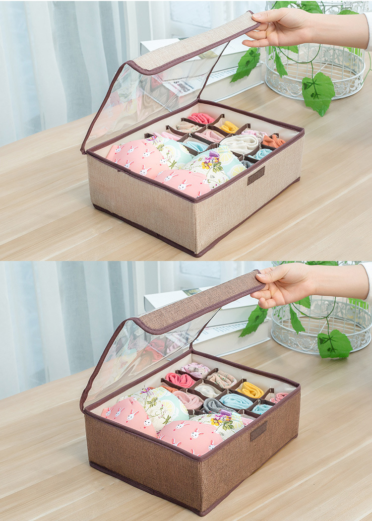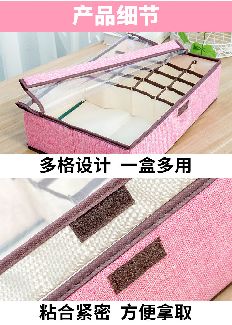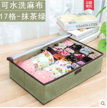 布艺棉麻内衣收纳盒多格可折叠文胸整理盒有盖内裤袜子收纳盒