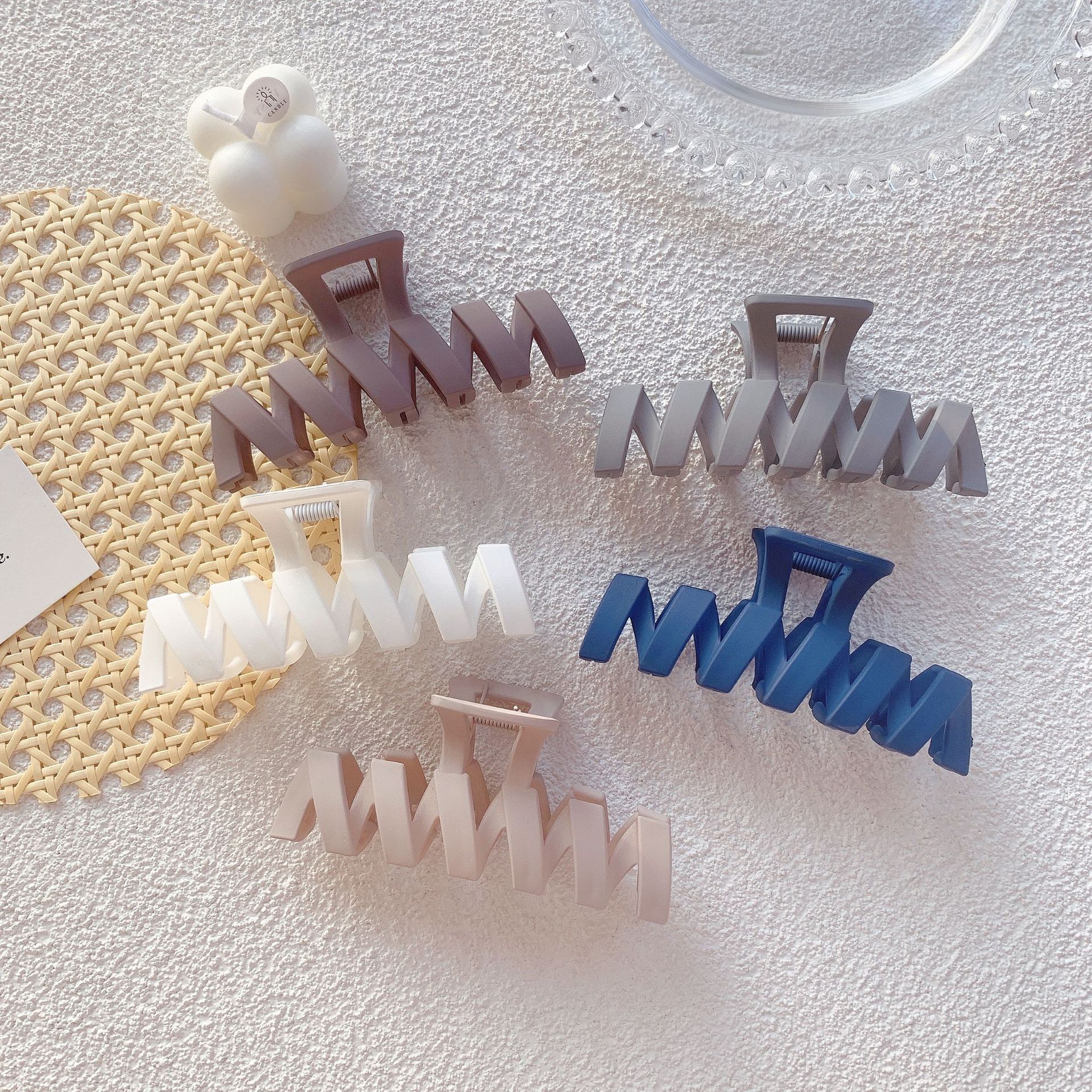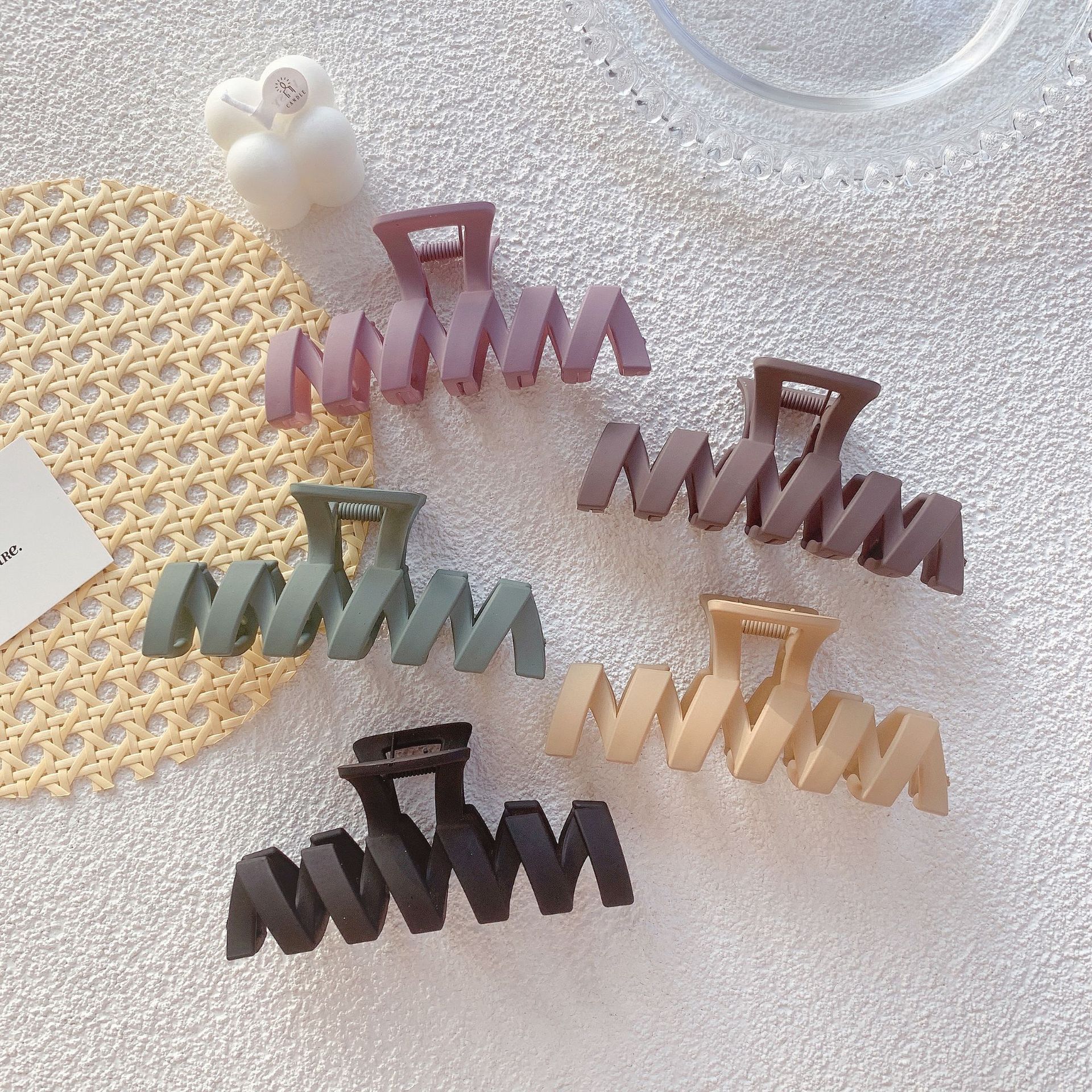 韩国雾面磨砂波浪镂空大号抓夹盘发发抓新款发夹女