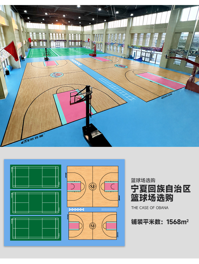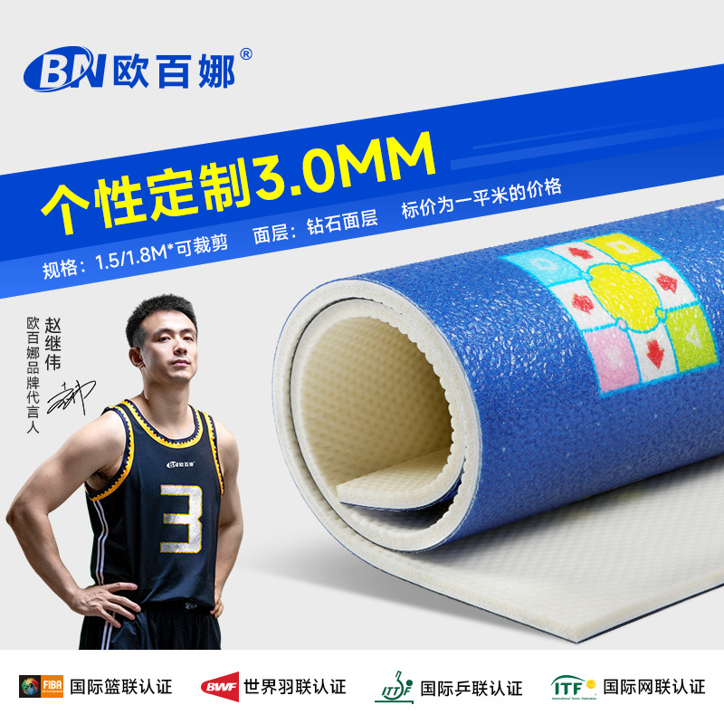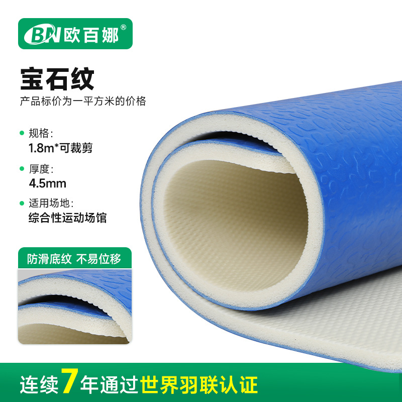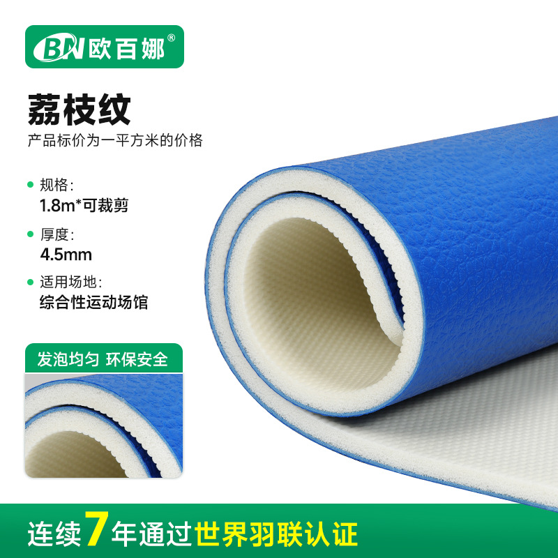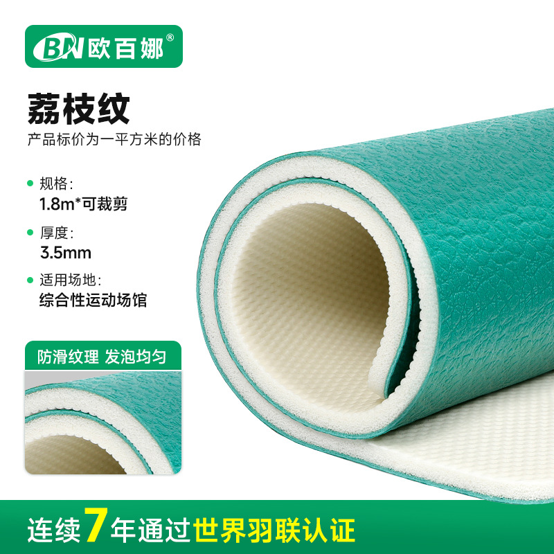 欧百娜羽毛球地胶室内球馆pvc塑胶运动地板卷材羽毛球地胶垫厂家