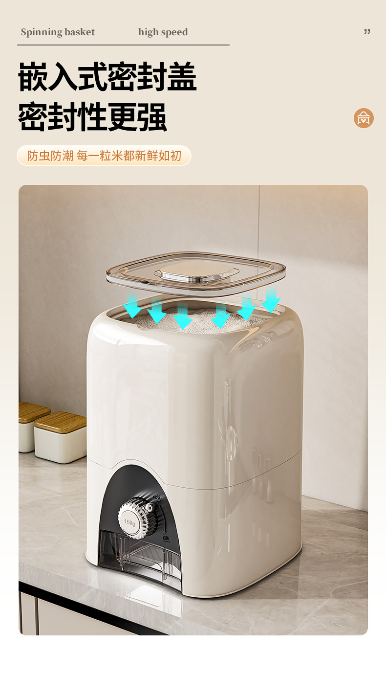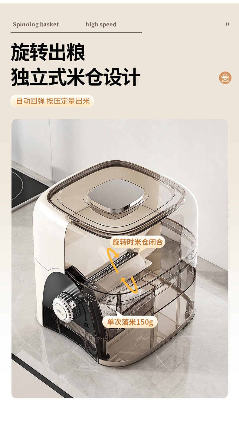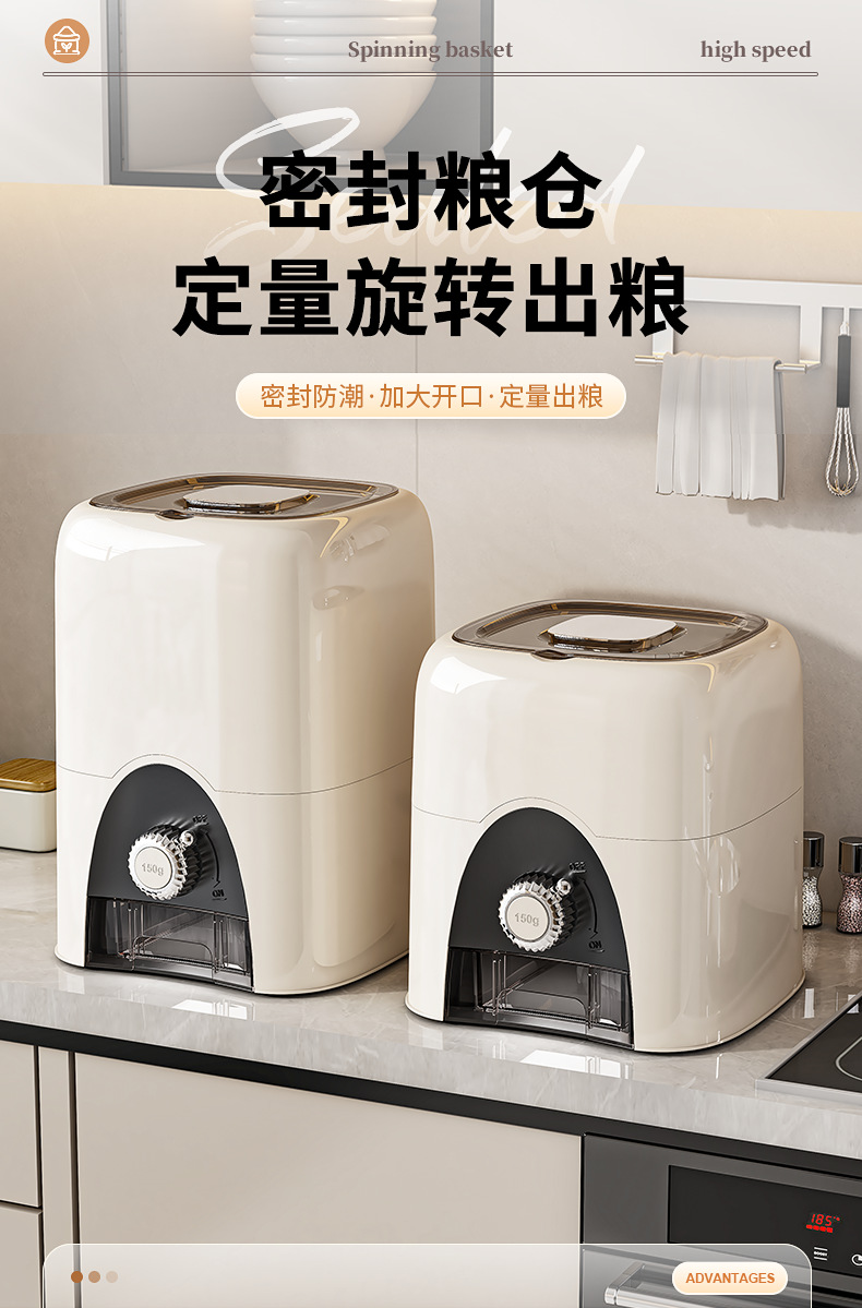 旋转米桶家用新款计量按压米桶轻奢防尘防潮密封大米杂粮存储收纳