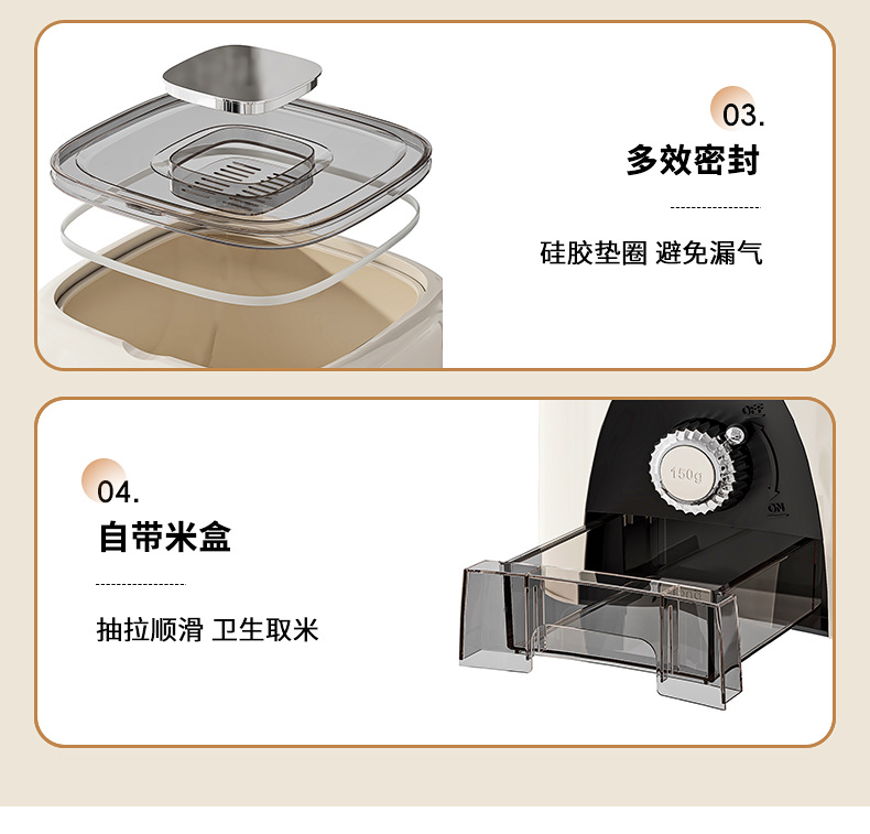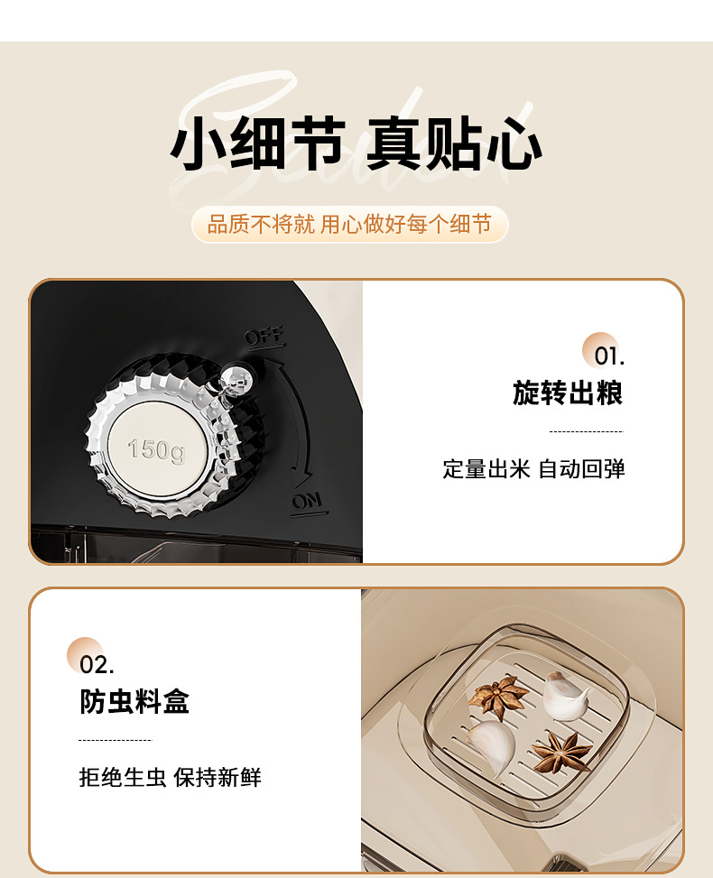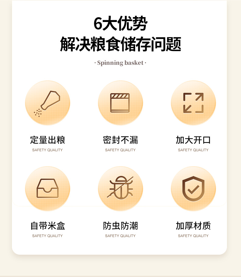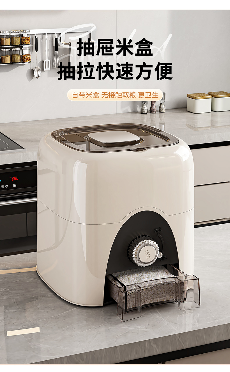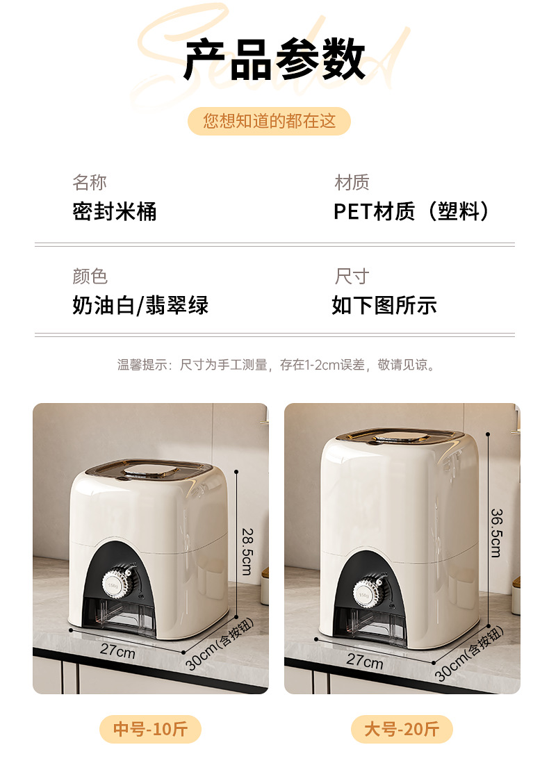 旋转米桶家用新款计量按压米桶轻奢防尘防潮密封大米杂粮存储收纳