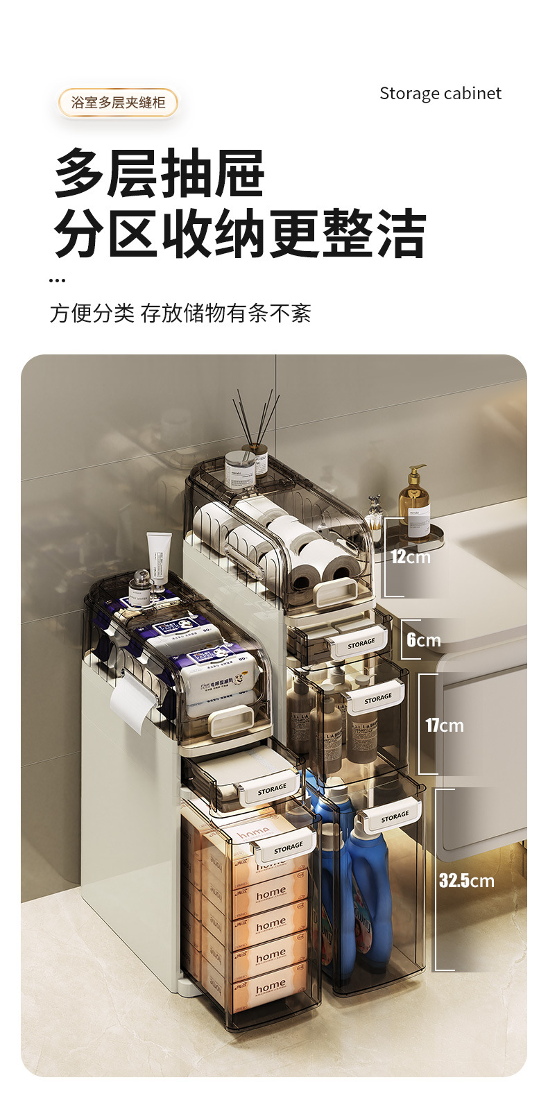 厨房客厅卫生间缝隙收纳柜抽拉式夹缝柜缝隙柜塑料角落侧边收纳柜