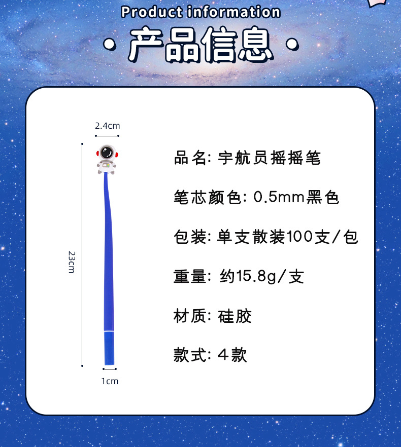 创意宇航员软硅胶中性笔小学生可爱摇摇笔卡通甩甩笔学习文具礼品