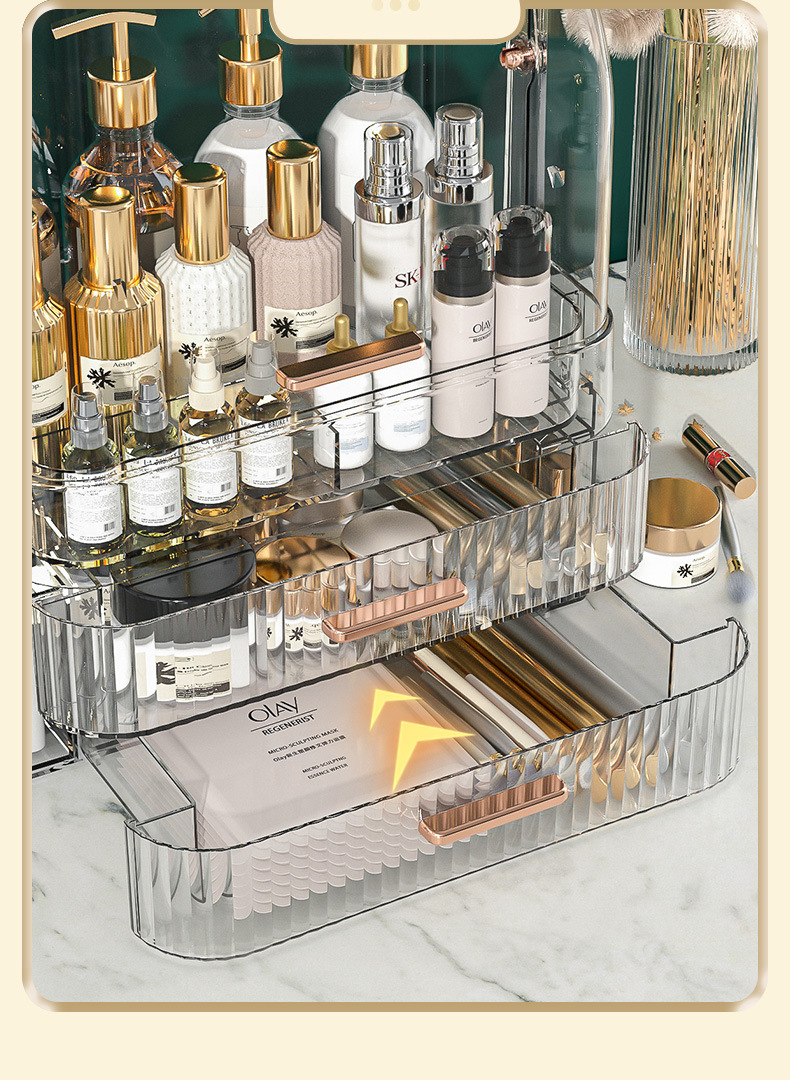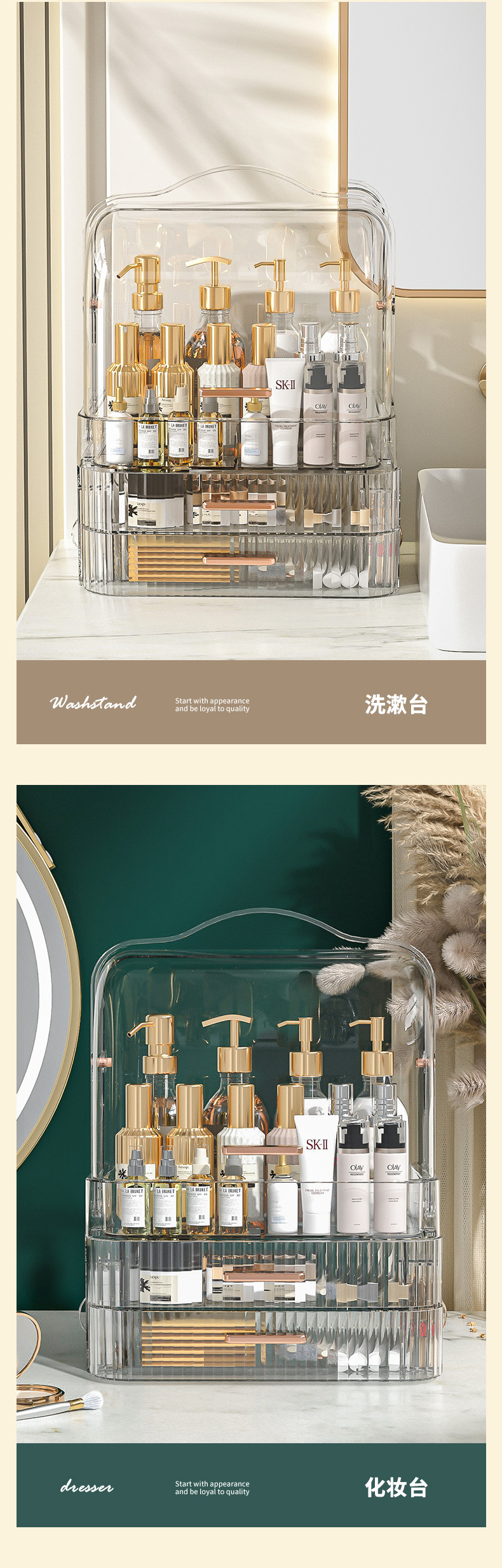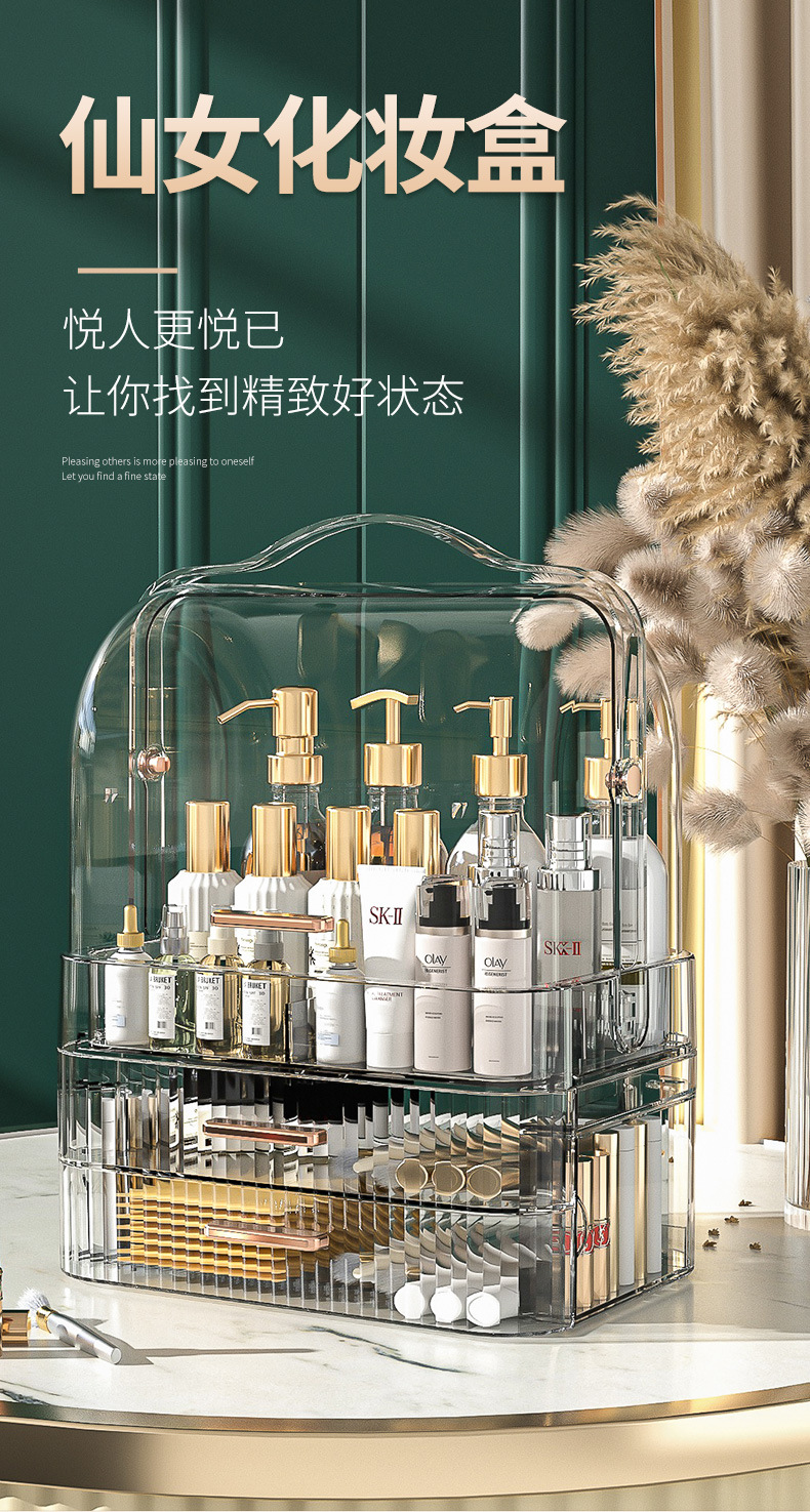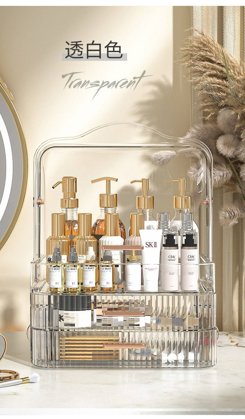 带分格高级感桌面大容量透明抽屉式化妆品收纳盒手提防水防尘收纳