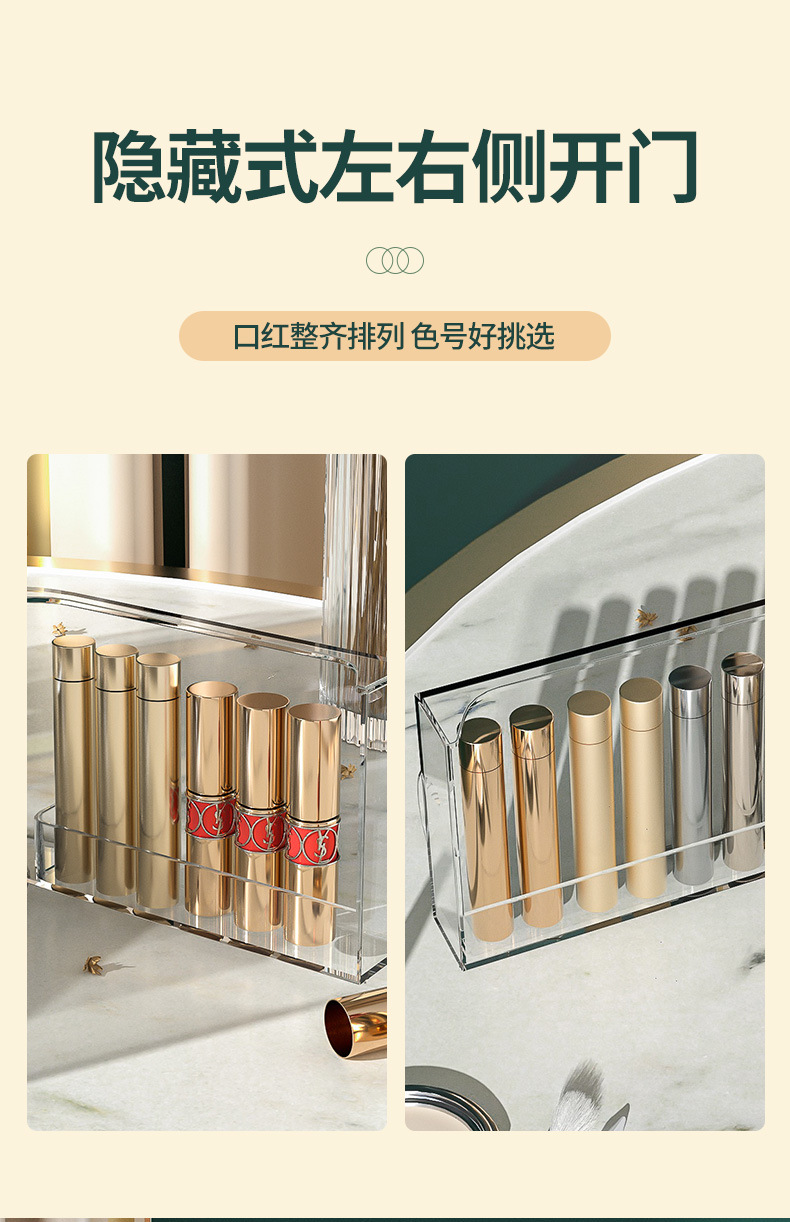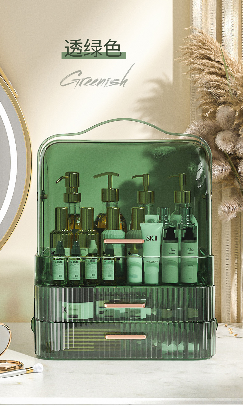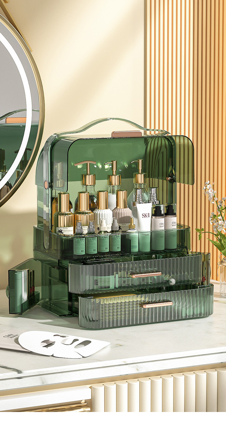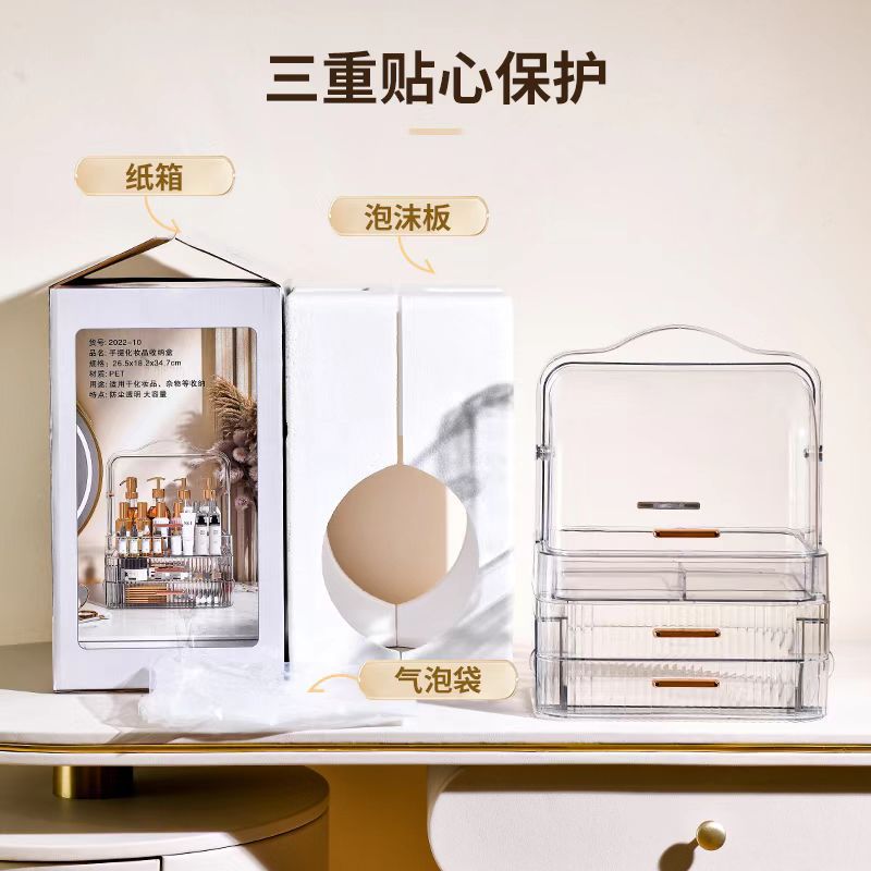 带分格高级感桌面大容量透明抽屉式化妆品收纳盒手提防水防尘收纳