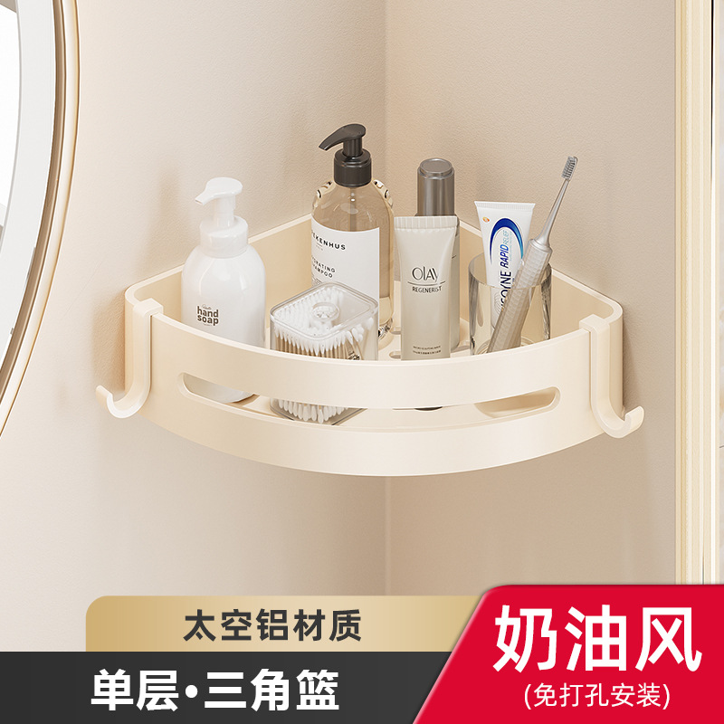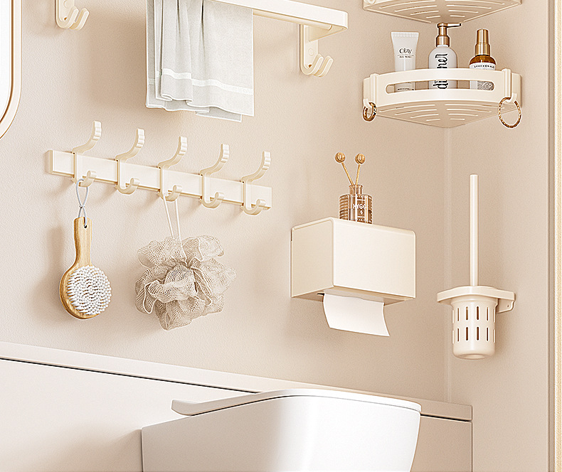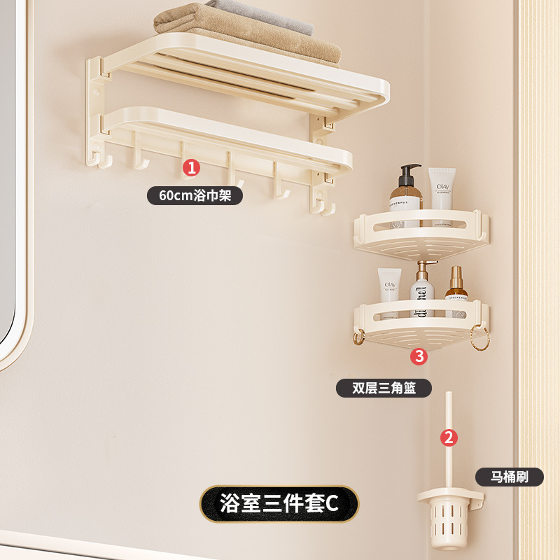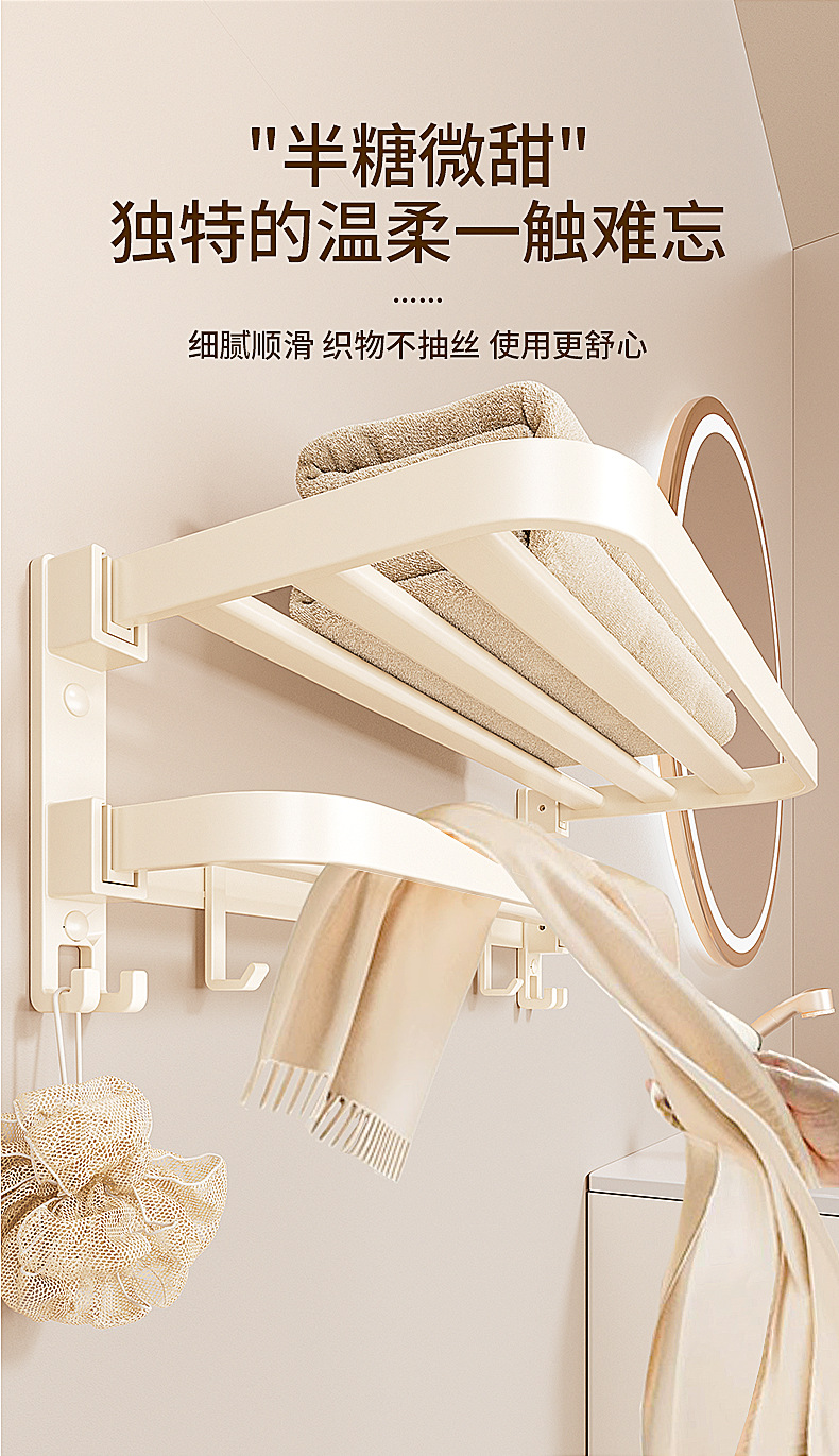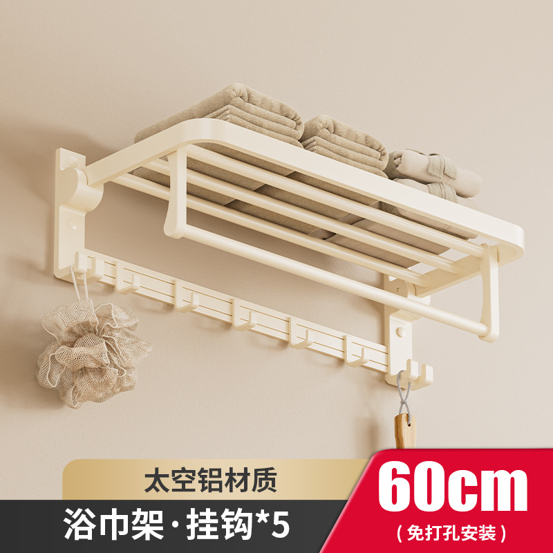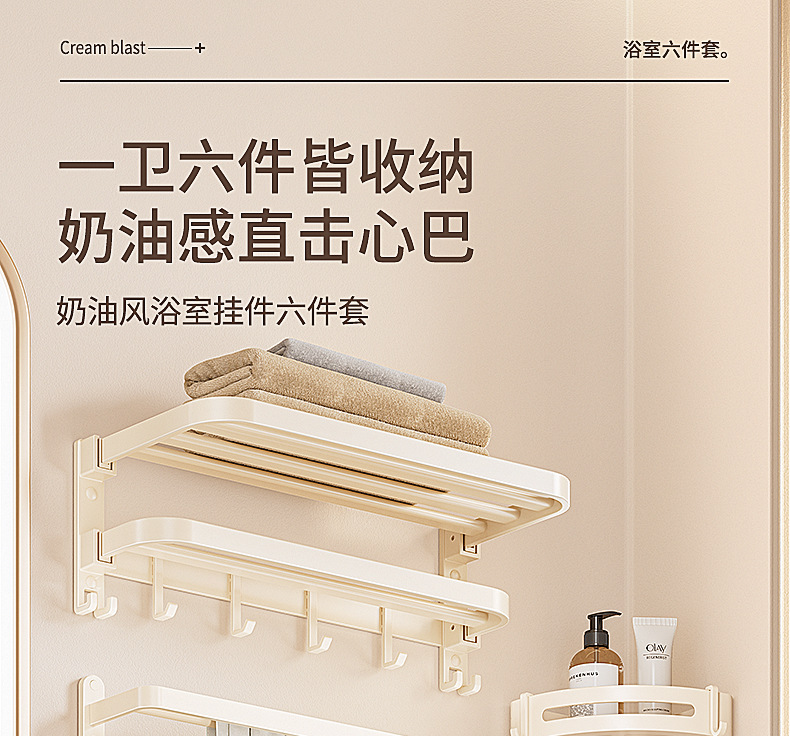 奶油风毛巾架免打孔太空铝浴室浴巾置物架卫生间挂件套洗手间厕所