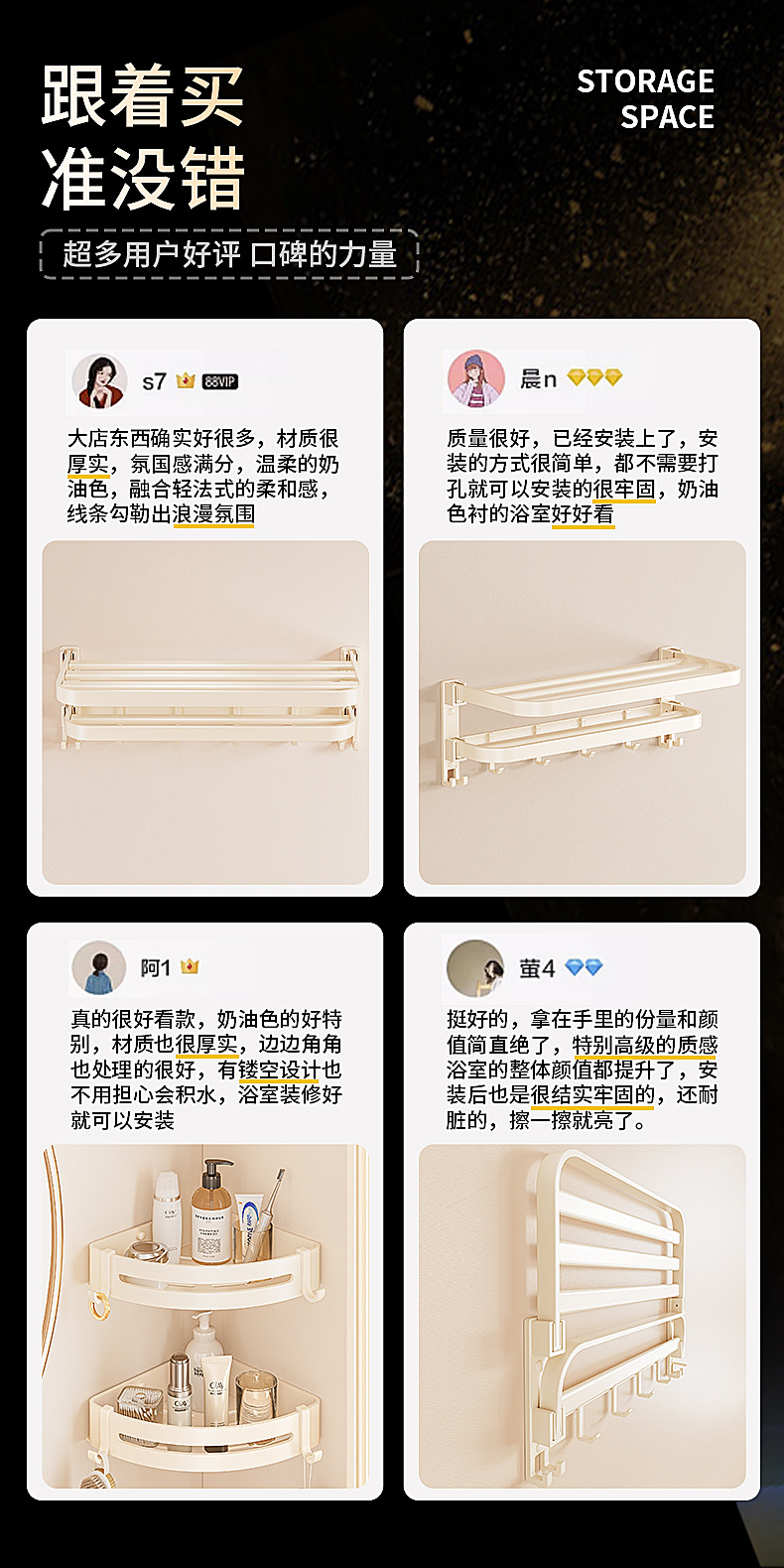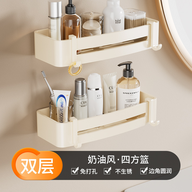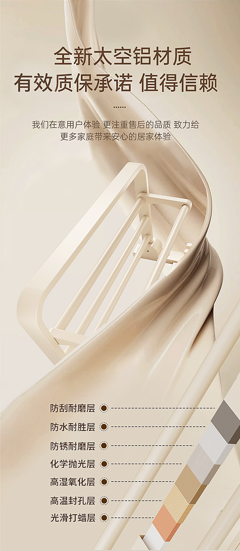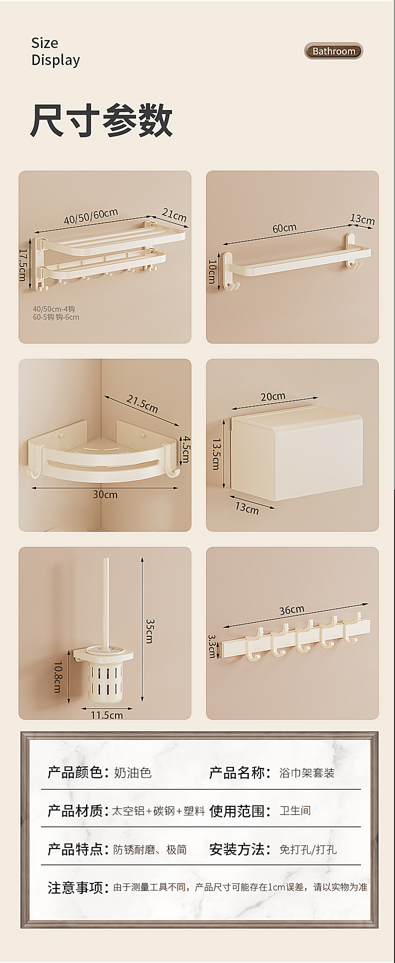 奶油风毛巾架免打孔太空铝浴室浴巾置物架卫生间挂件套洗手间厕所