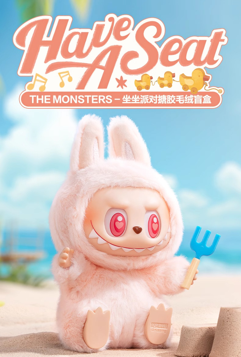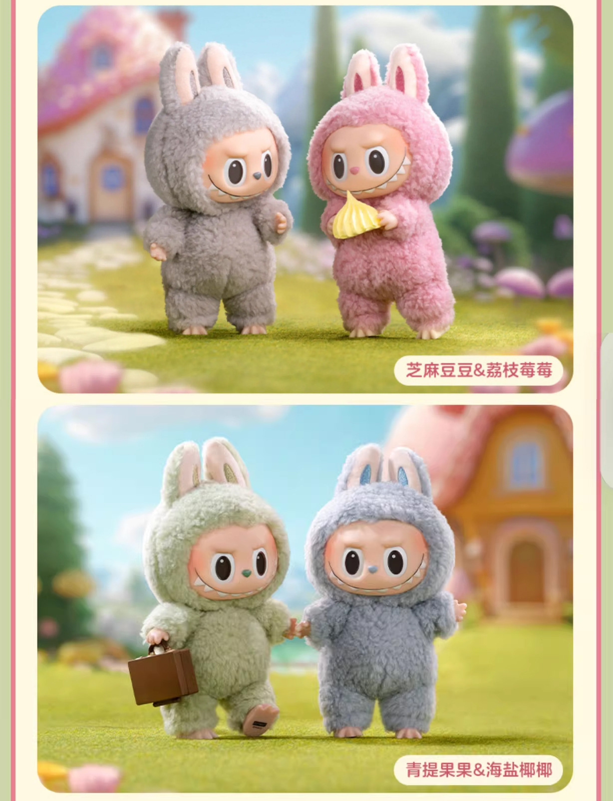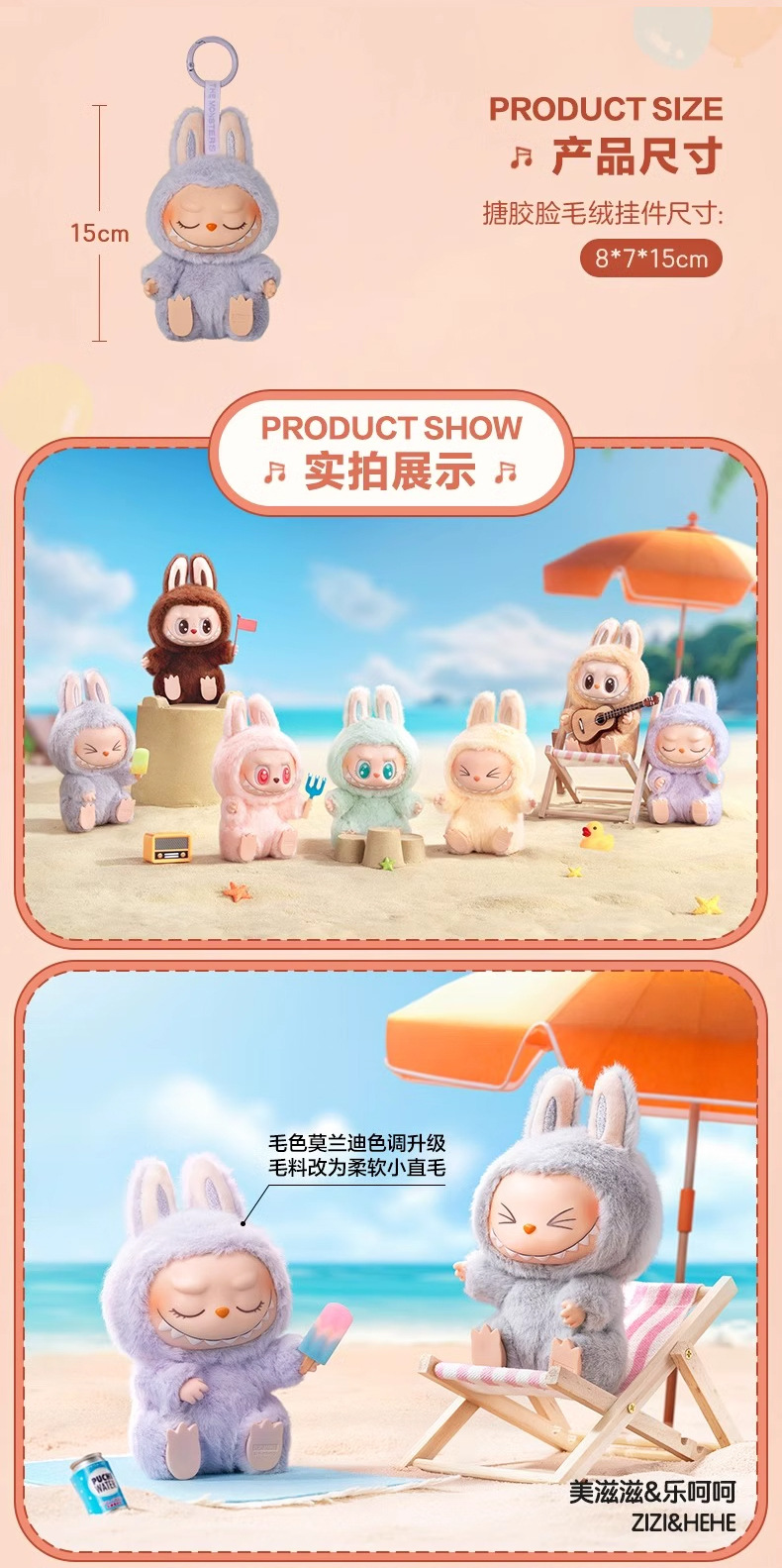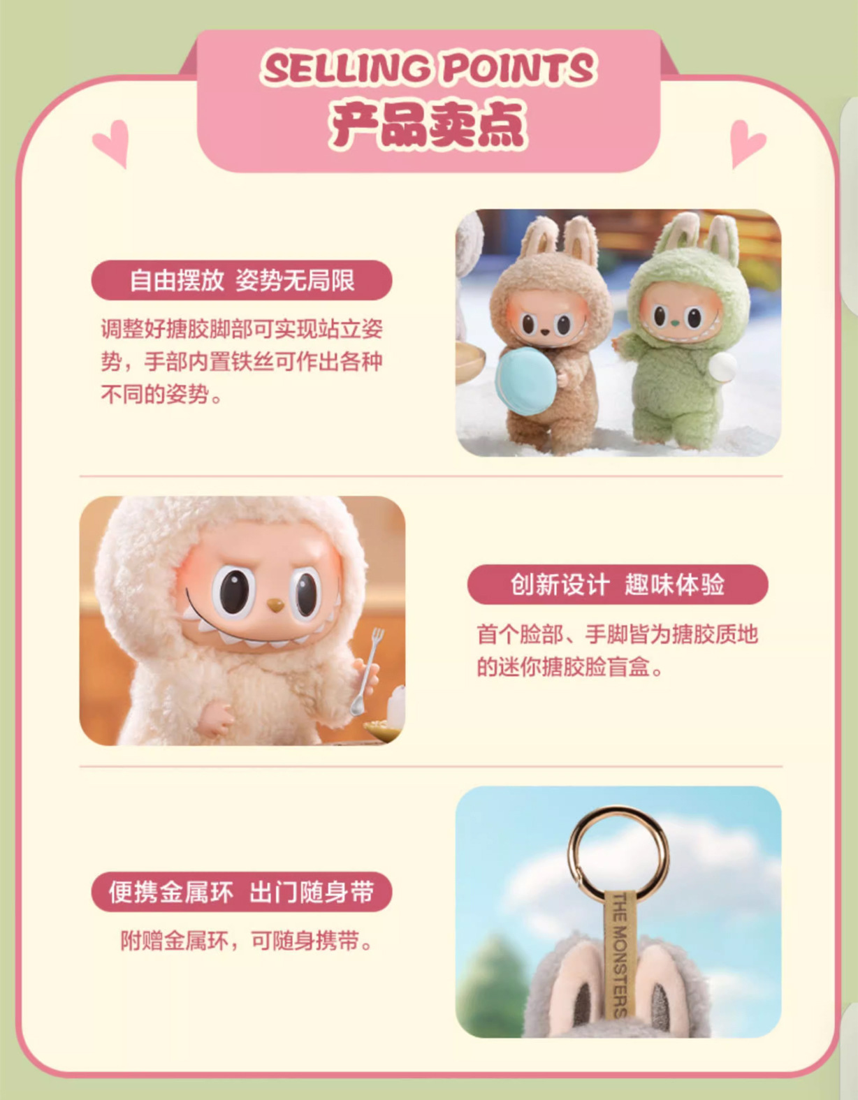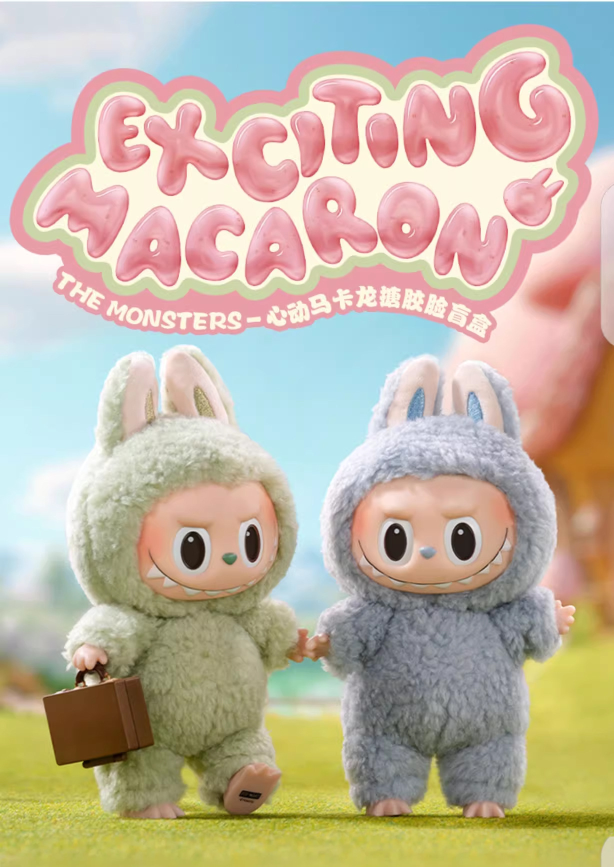 跨境泡泡玛特labubu心动马卡龙盲盒坐坐派对系列搪胶脸毛绒公仔挂