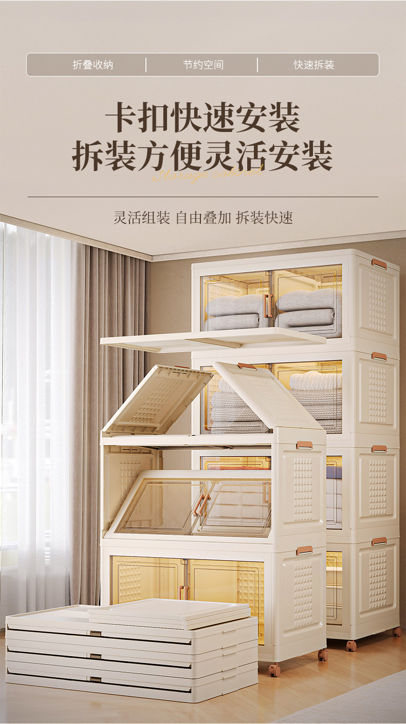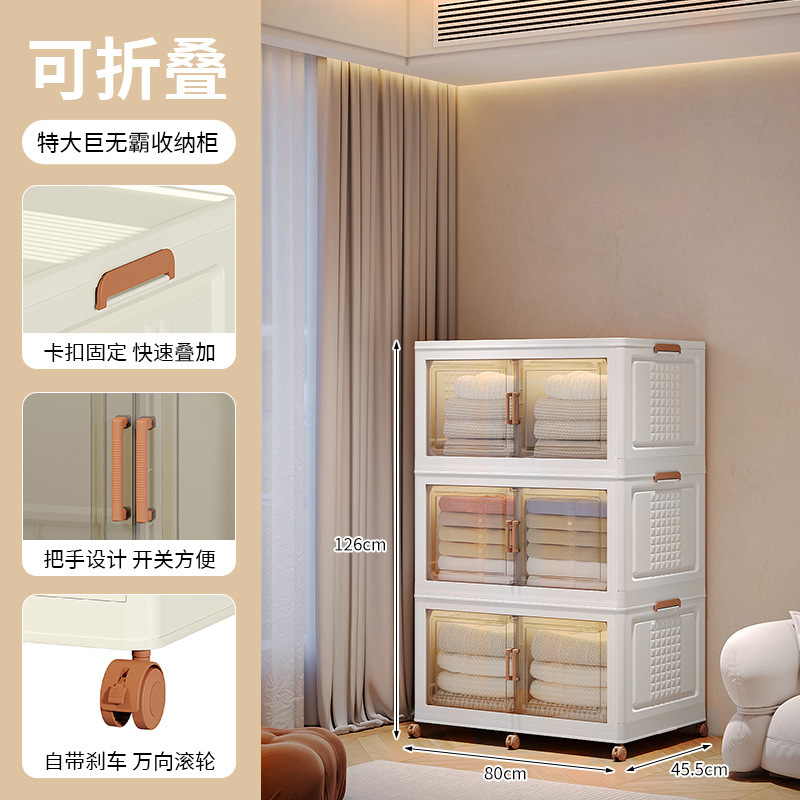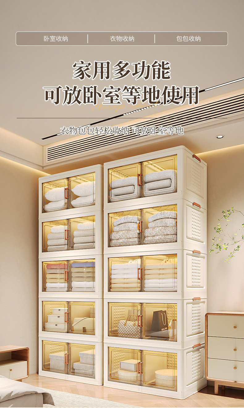 家用大容量可折叠塑料收纳柜多用途玩具衣物零食储物柜折叠收纳柜