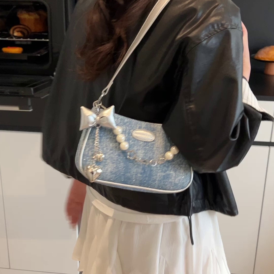 一件代发新款时尚蝴蝶结潮流女包百搭高级感单肩斜跨包9172