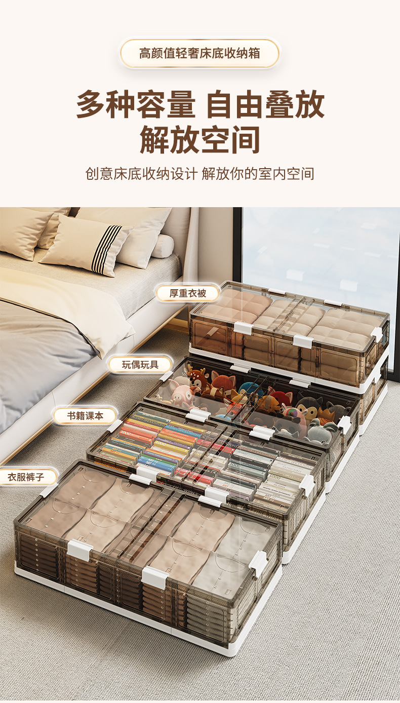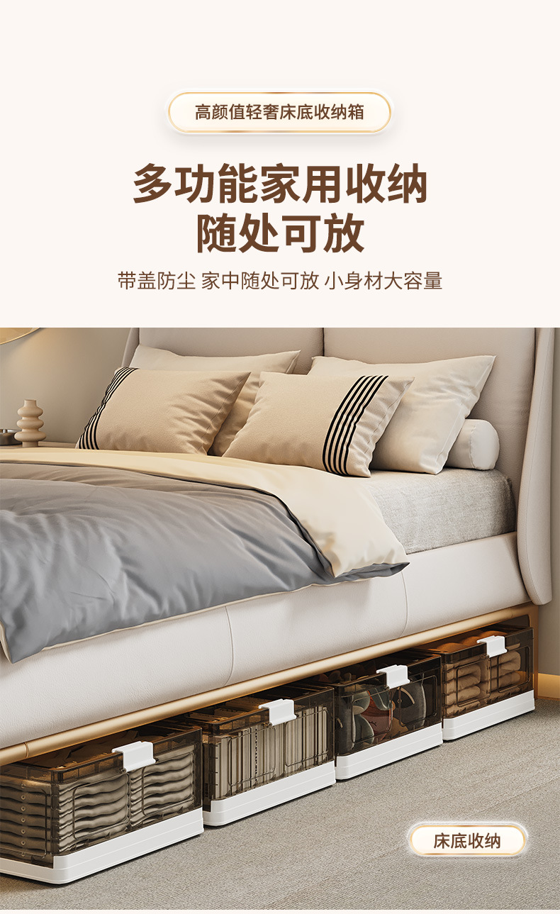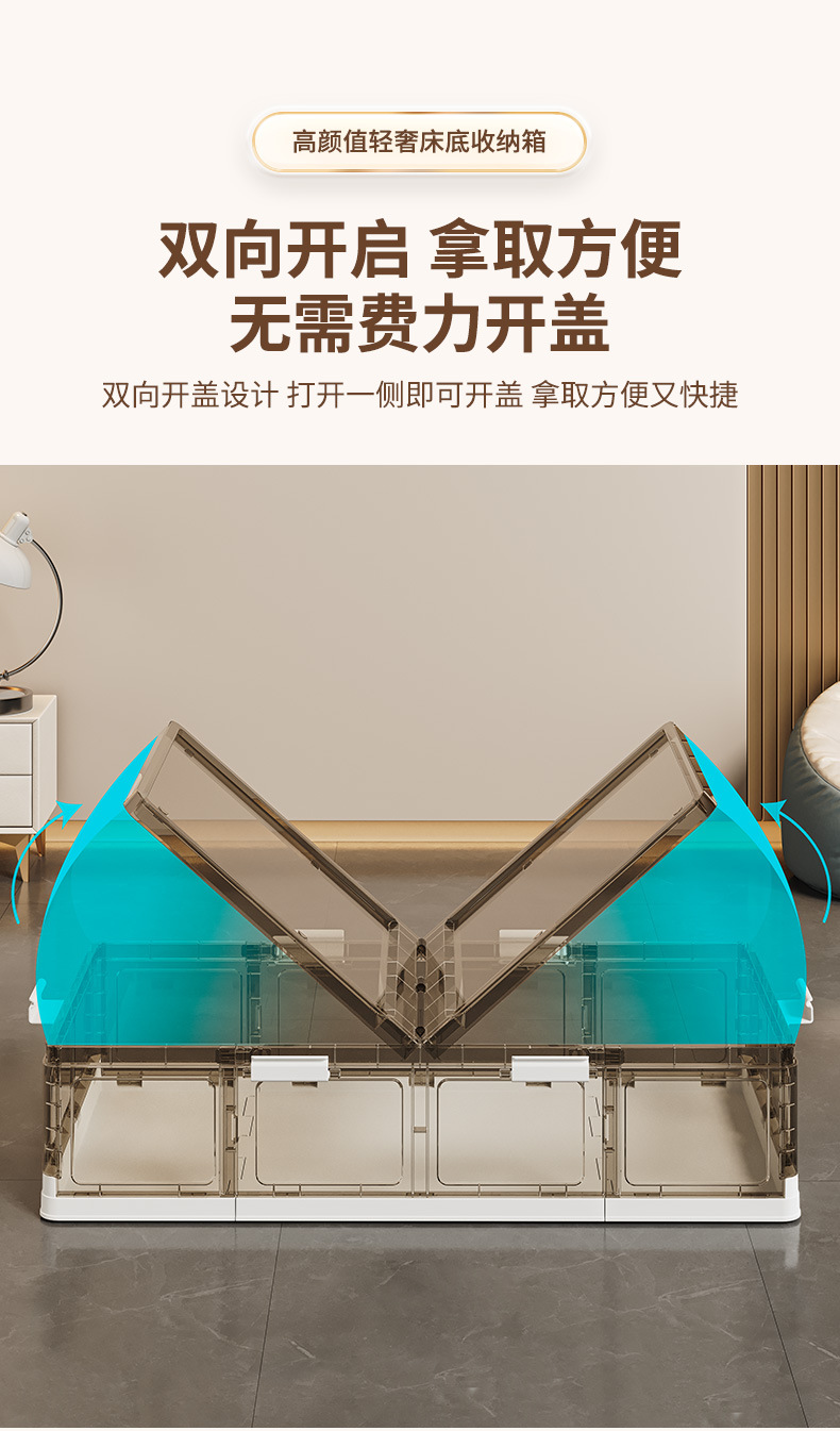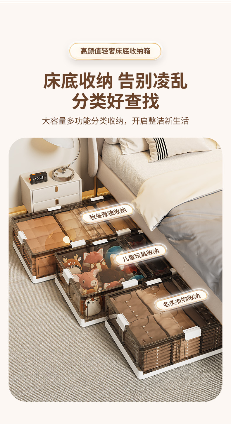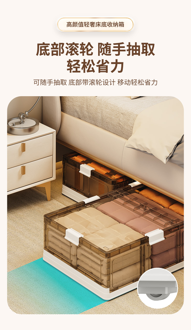 可折叠带滚轮床底收纳箱被子衣物床下收纳折叠整理箱 塑料储物箱