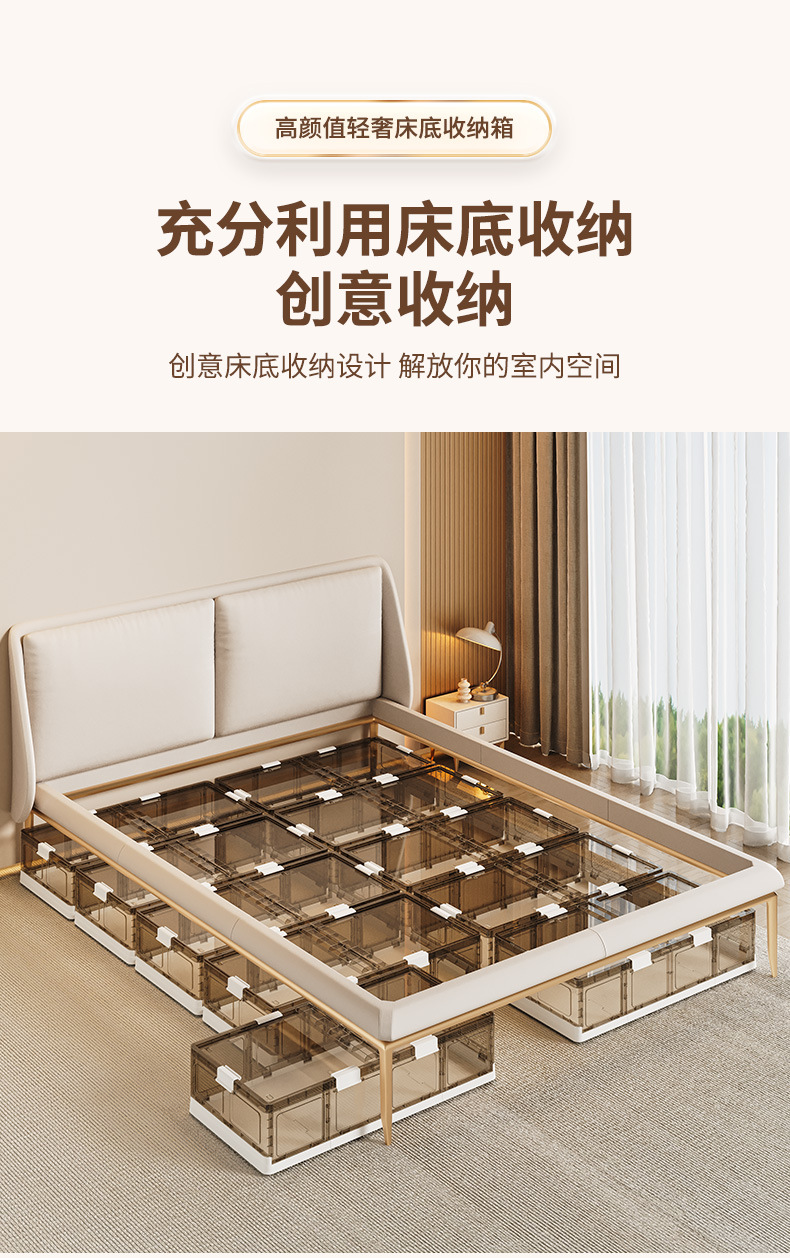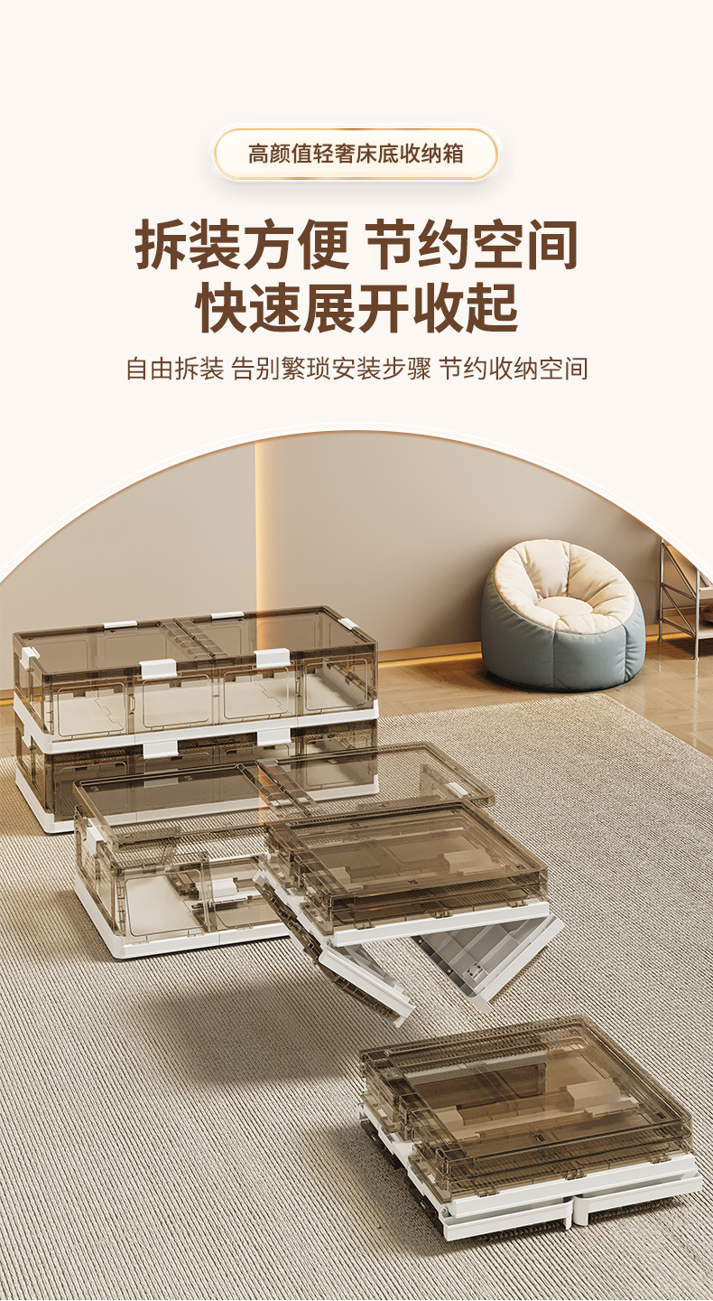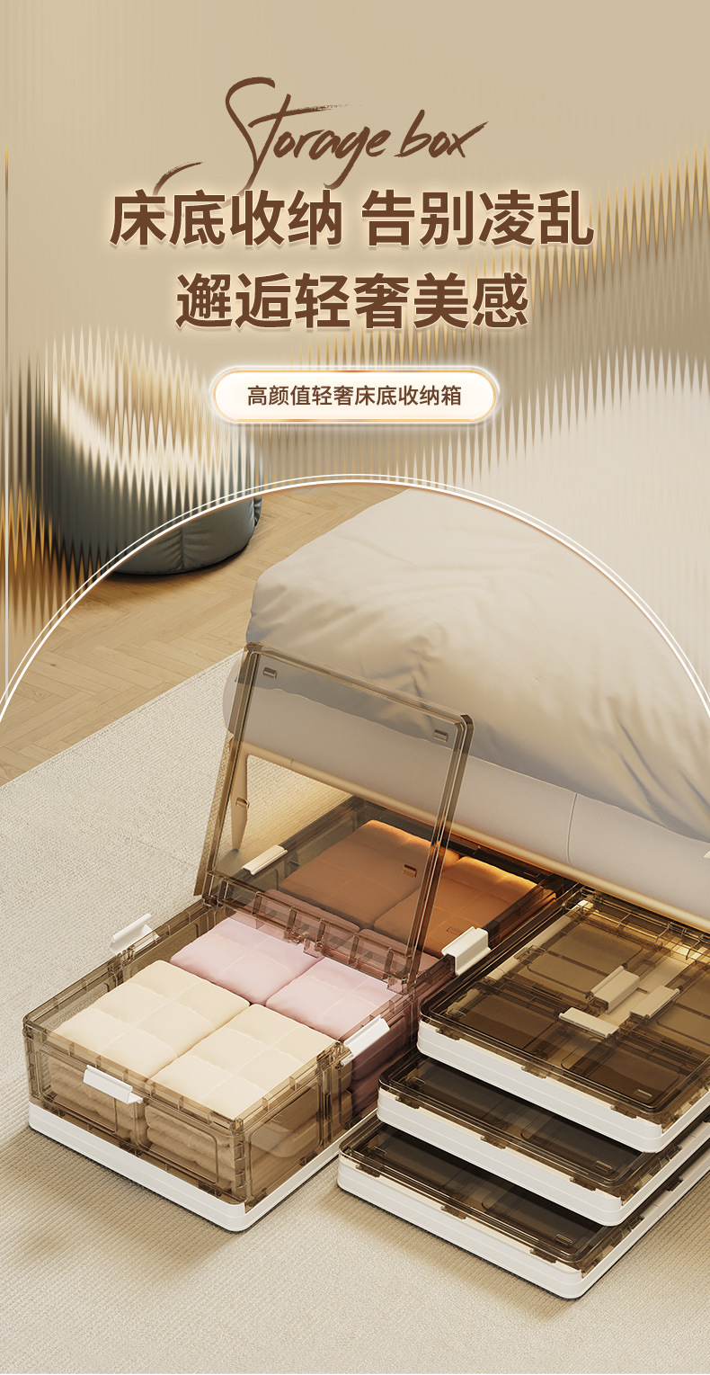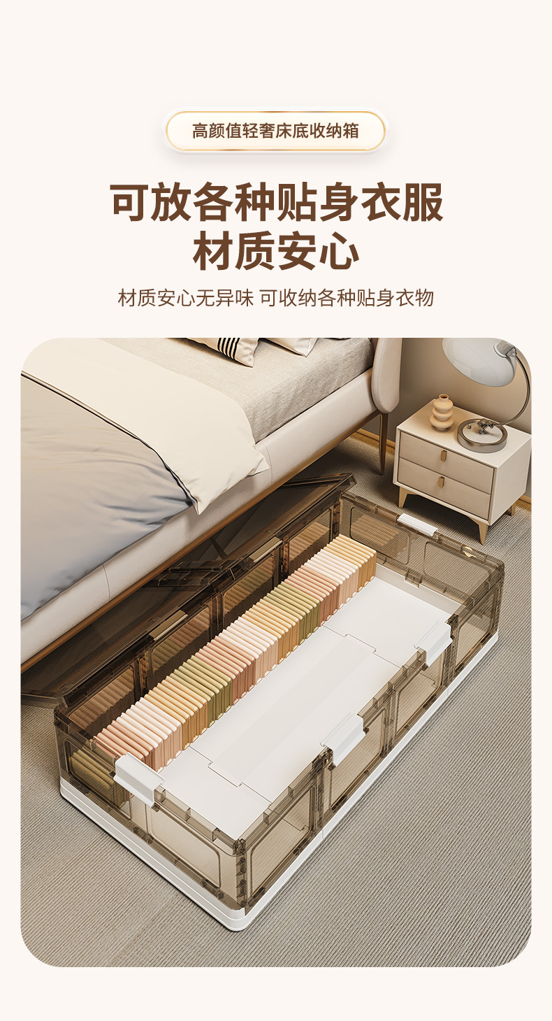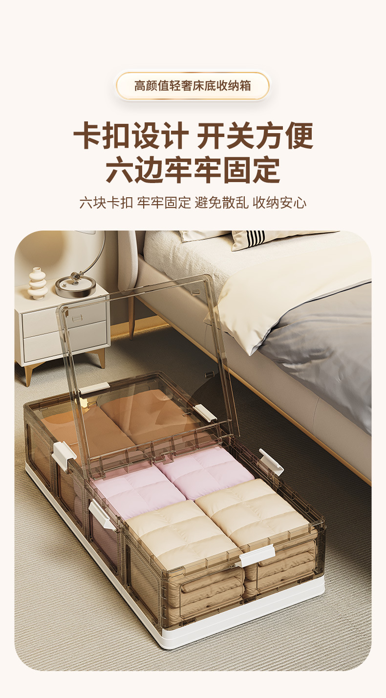 可折叠带滚轮床底收纳箱被子衣物床下收纳折叠整理箱 塑料储物箱