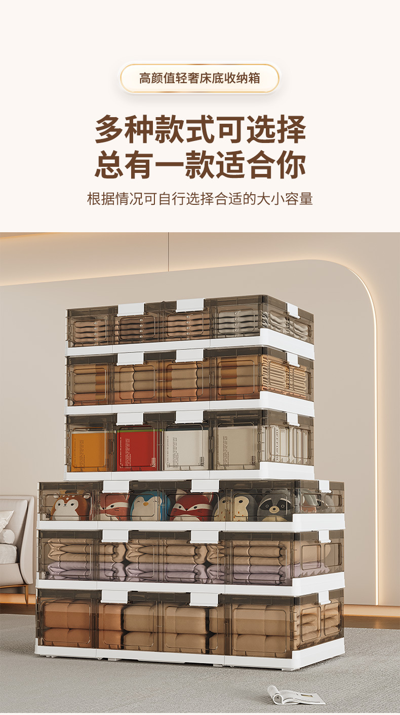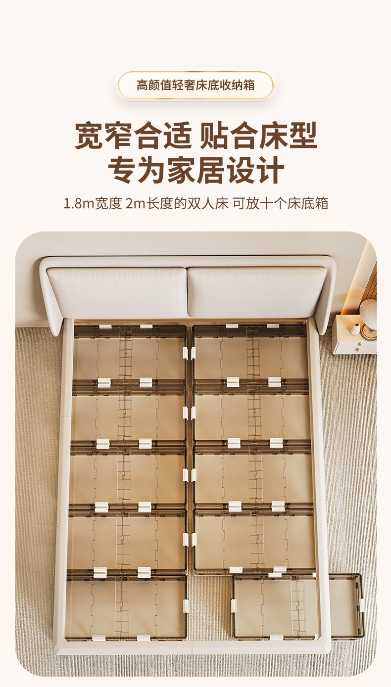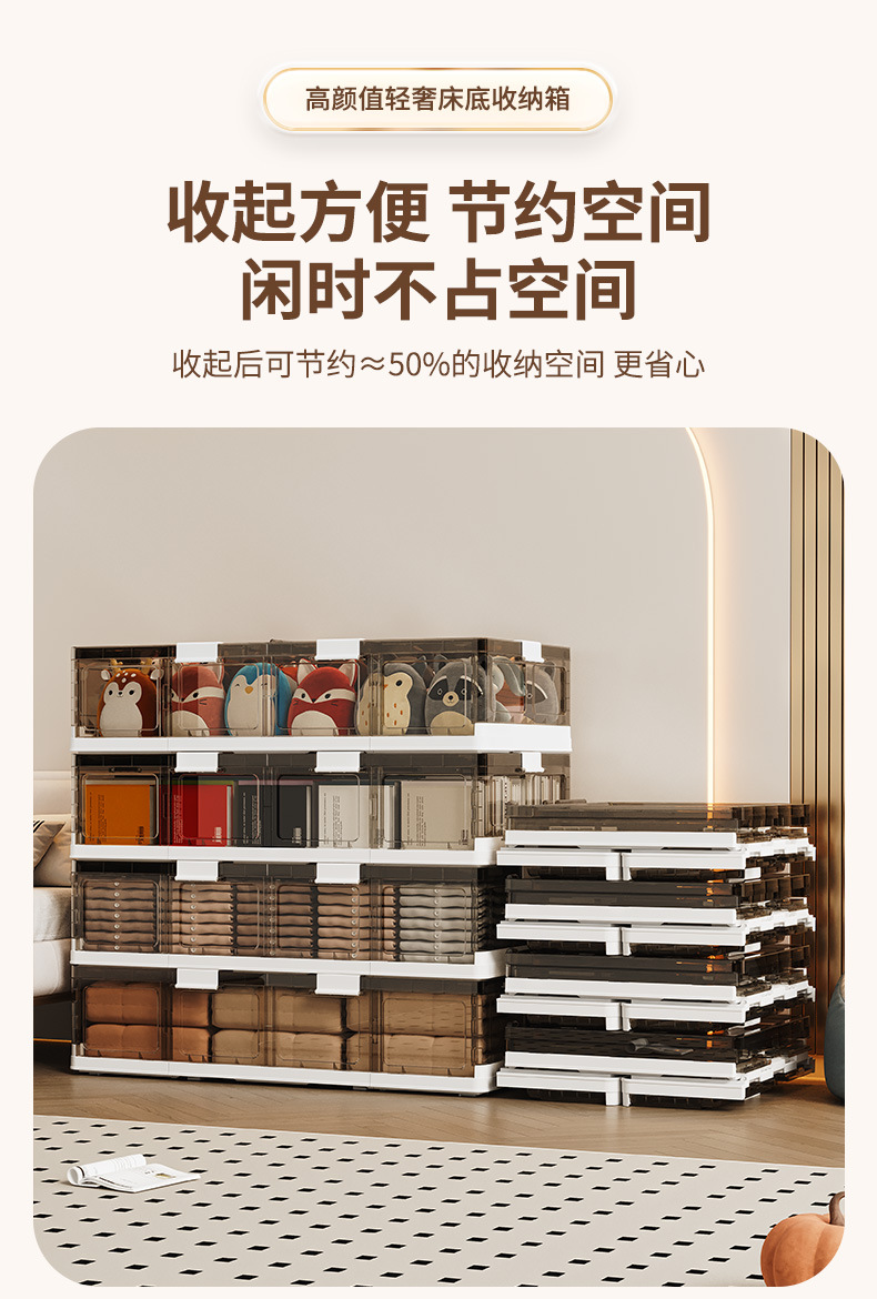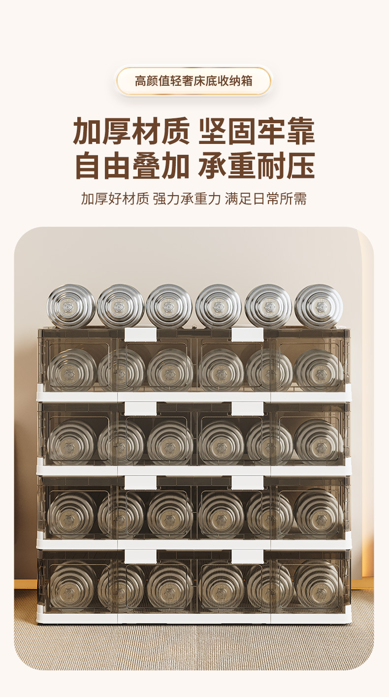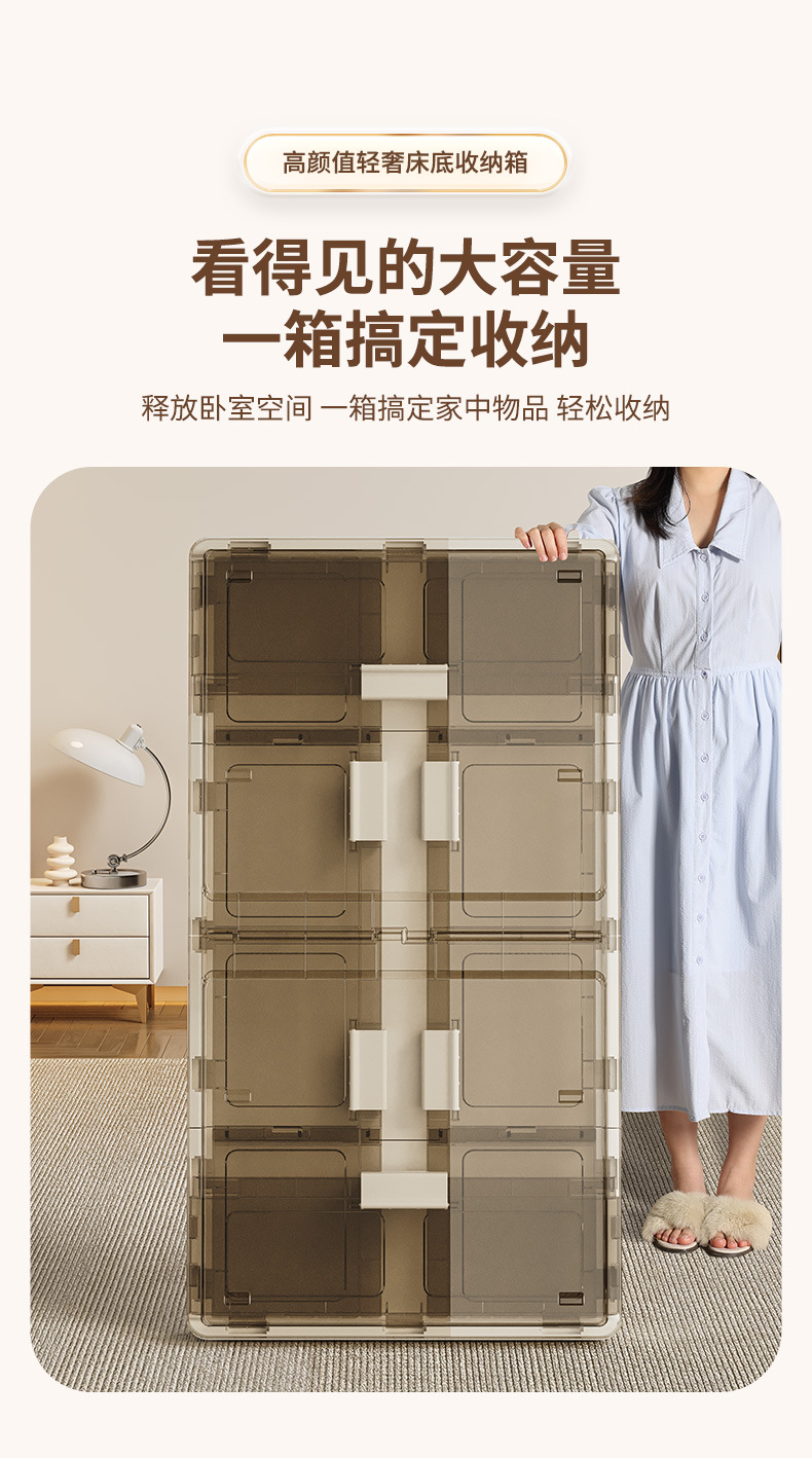 可折叠带滚轮床底收纳箱被子衣物床下收纳折叠整理箱 塑料储物箱
