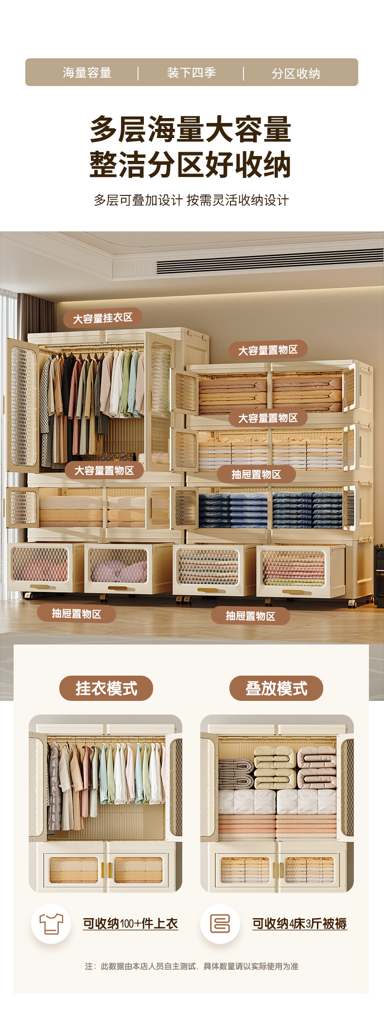 家用大容量成人衣物收纳柜多层衣柜分隔收纳柜组合式可折叠收纳柜
