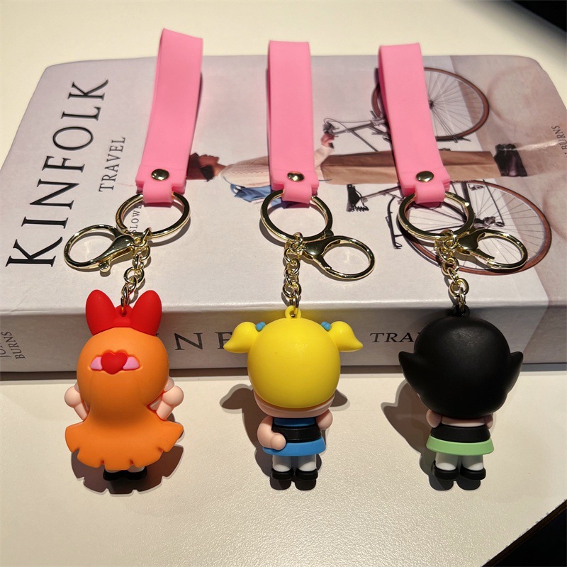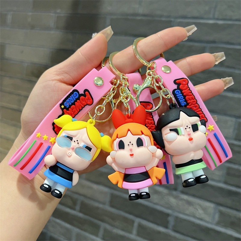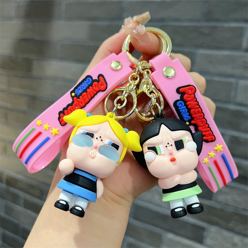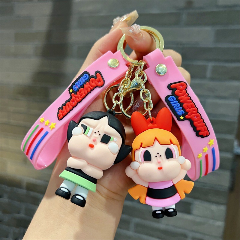 创意卡通飞天小女警公仔钥匙扣可爱蜜蜂女孩汽车钥匙链小礼品批发