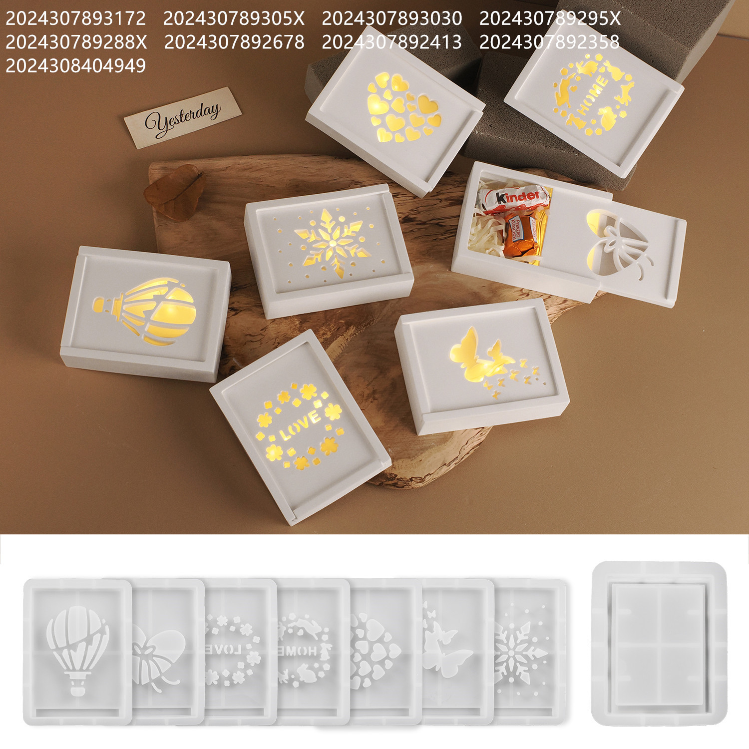 diy水晶滴胶石膏水泥长方形礼物盒收纳盒灯剪影镜面硅胶模具