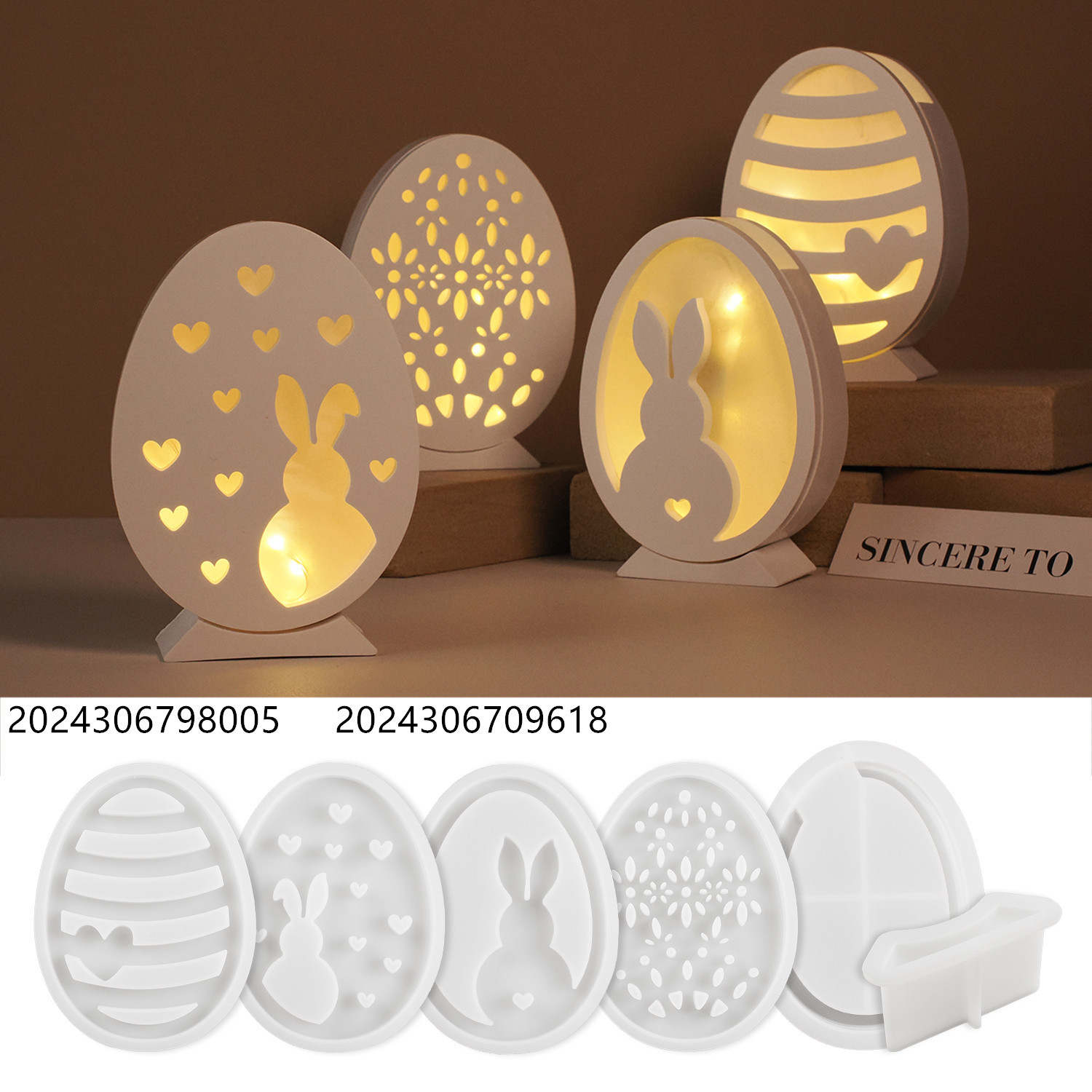 diy水晶滴胶石膏水泥复活节镂空彩蛋兔子灯剪影镜面硅胶模具