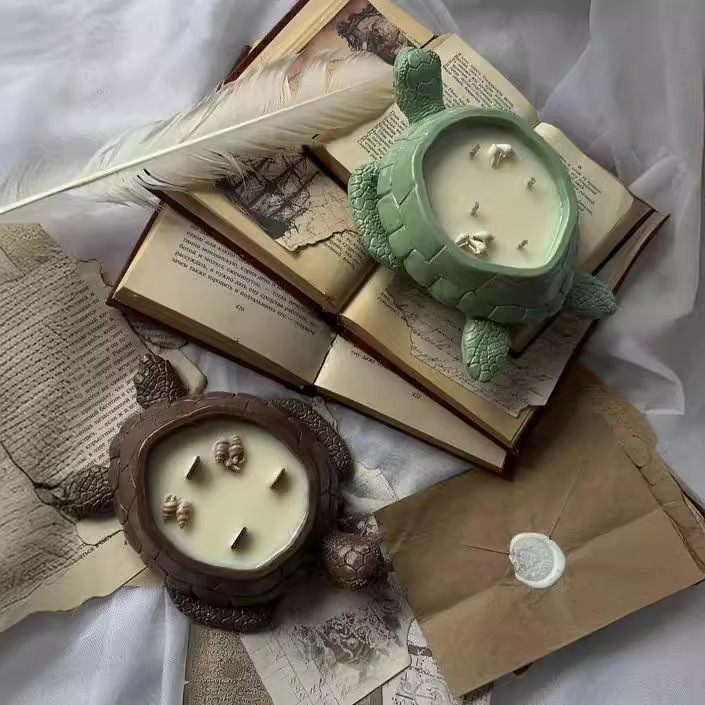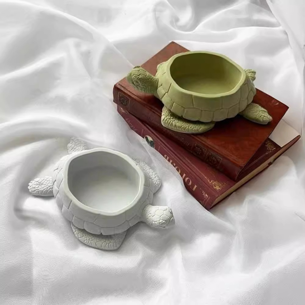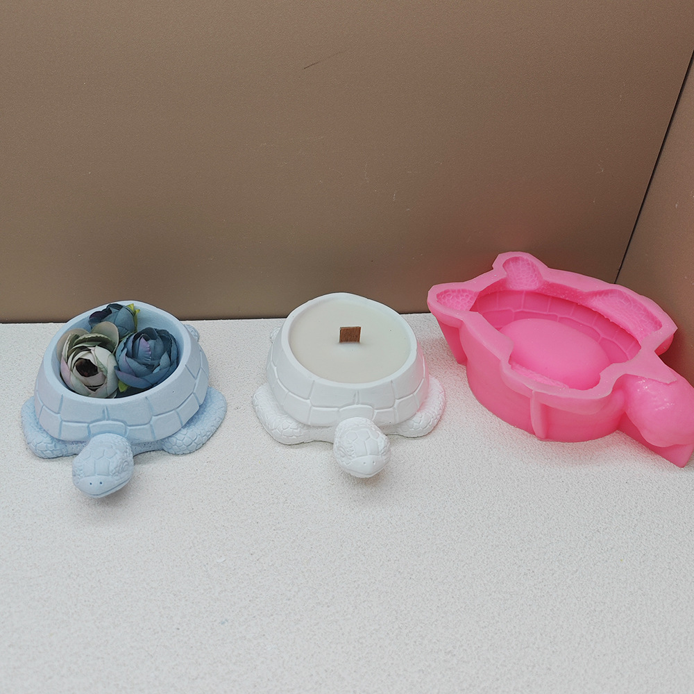 美丽乌龟蜡烛杯石膏模具海龟蛋糕手工大豆蜡容器多肉花盆硅胶模