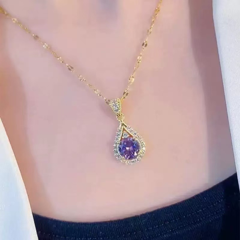 新款2025轻奢百搭潮流抖音同款水滴钛钢紫罗兰高级感项链锁骨链女
