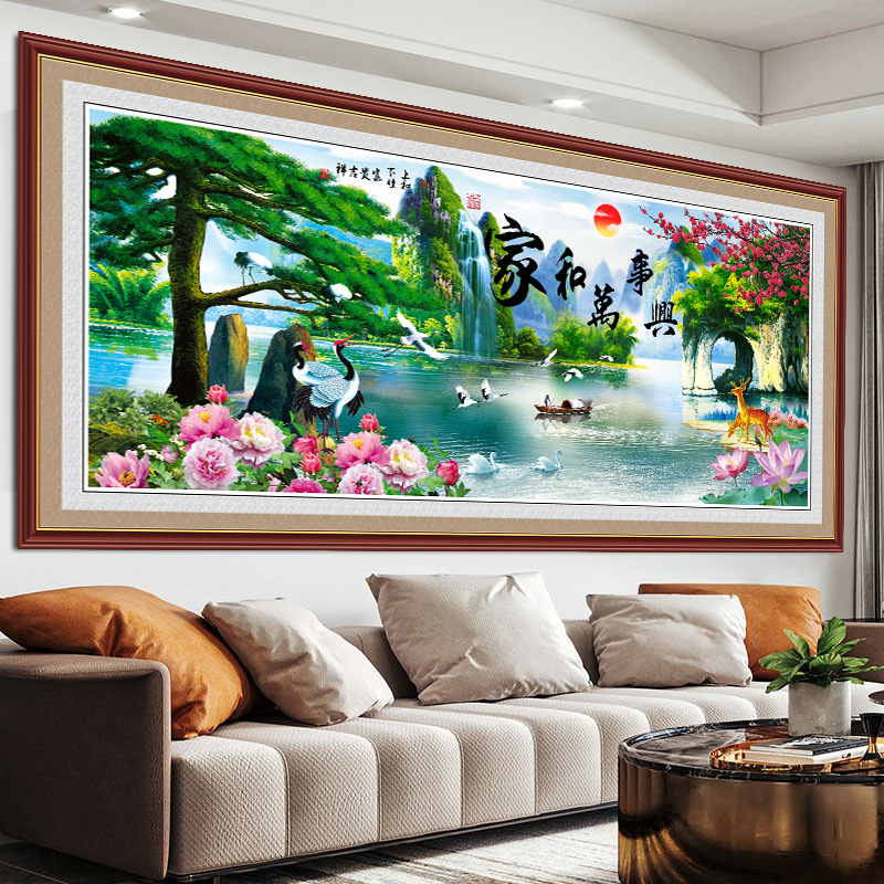 客厅山水画沙发背景壁画3d立体墙贴自粘装饰画墙壁贴纸极简墙贴画
