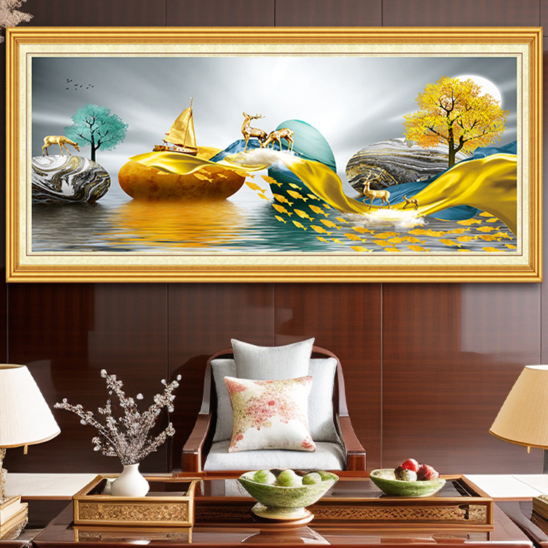 客厅装饰画山水风景画墙贴办公室自粘壁画沙发背景墙画墙壁房间