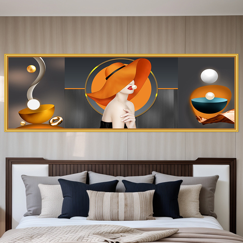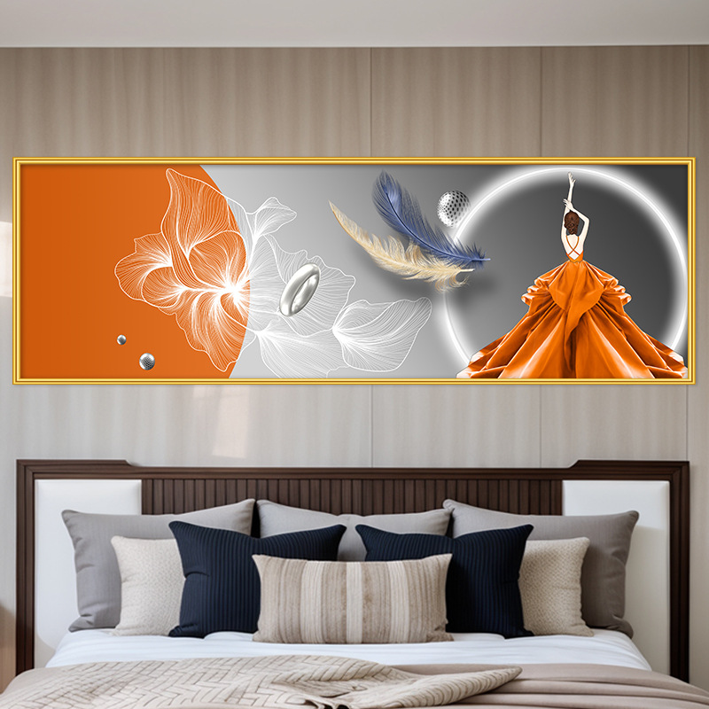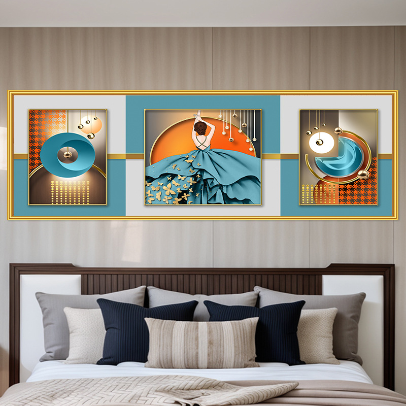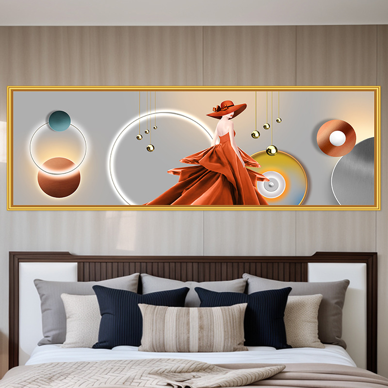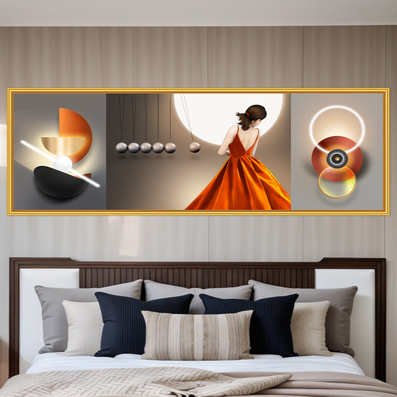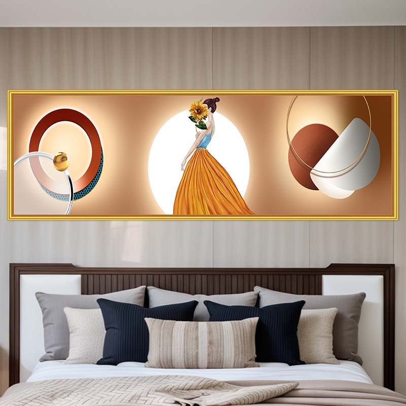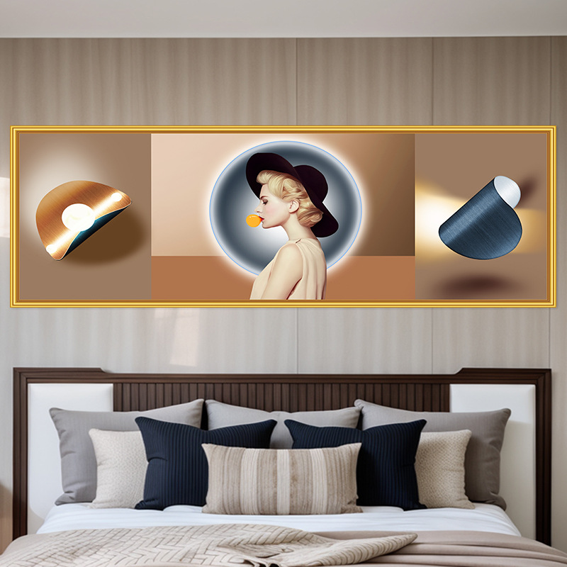 轻奢卧室床头装饰画卡通女孩主卧现代简约房间背景墙横幅大气壁画
