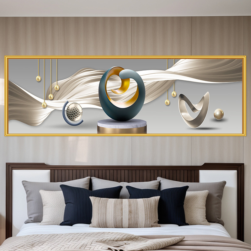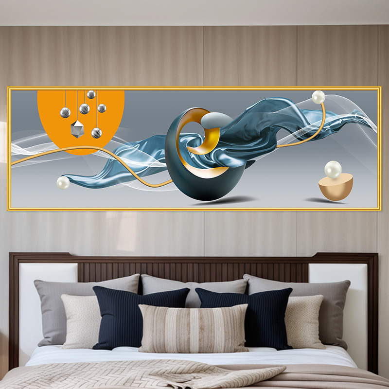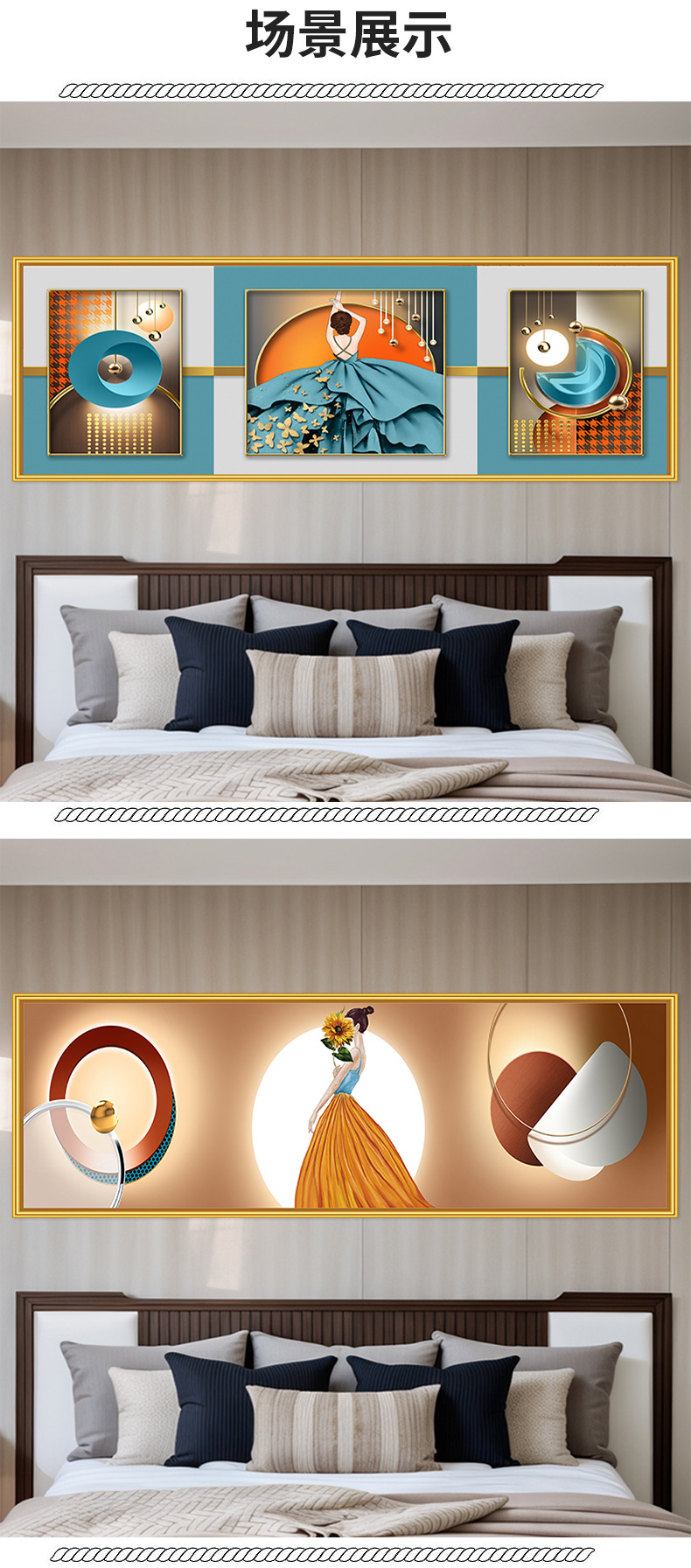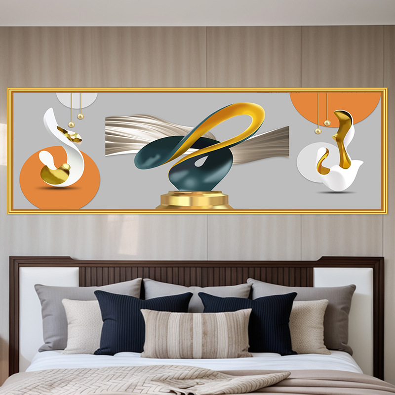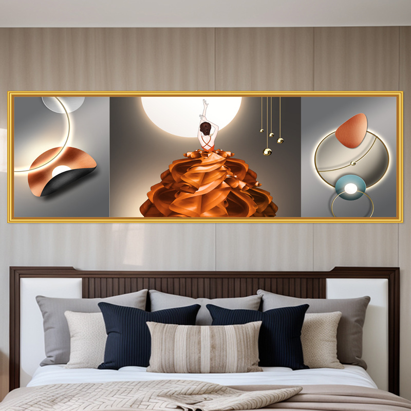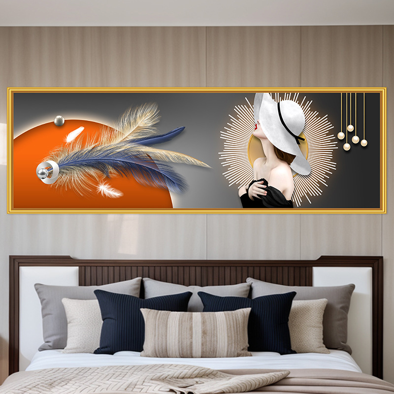 轻奢卧室床头装饰画卡通女孩主卧现代简约房间背景墙横幅大气壁画