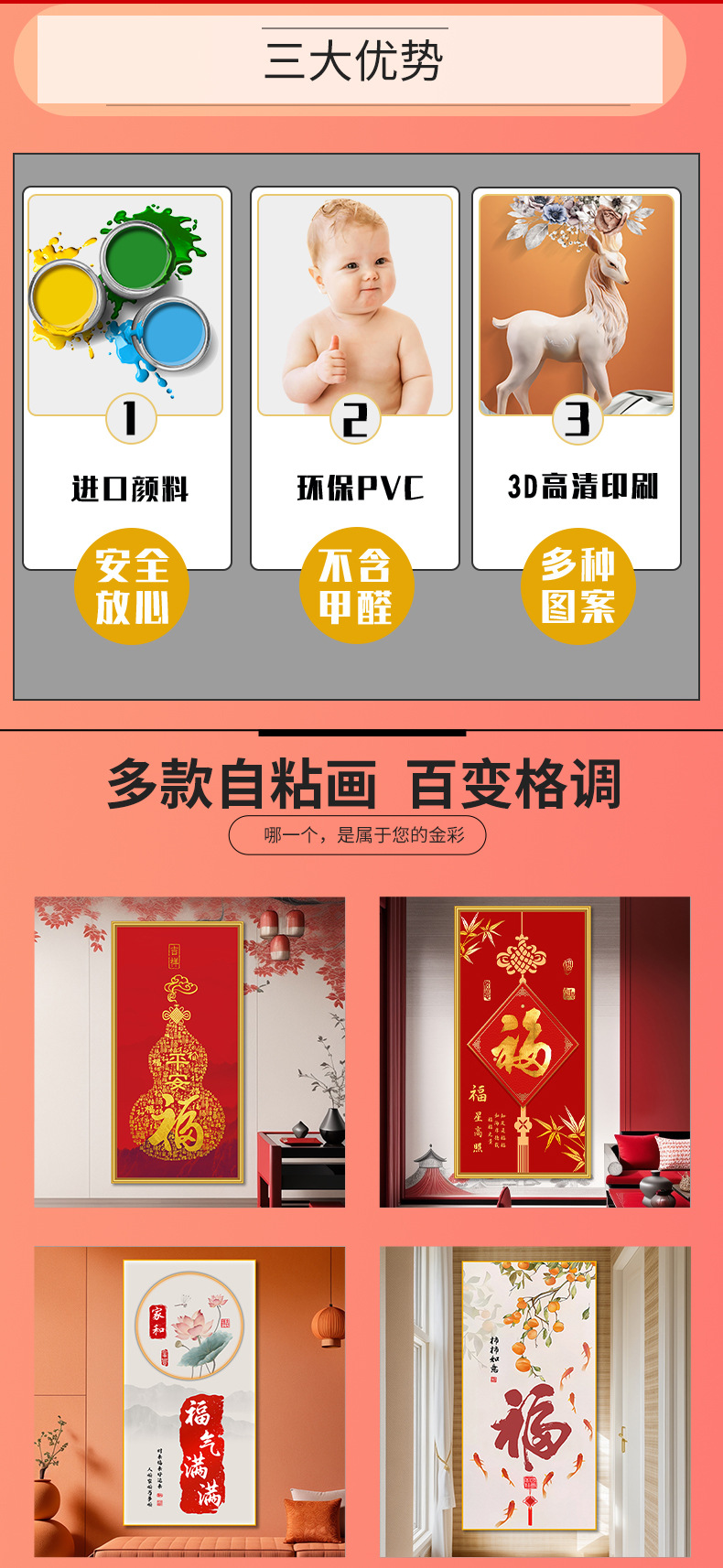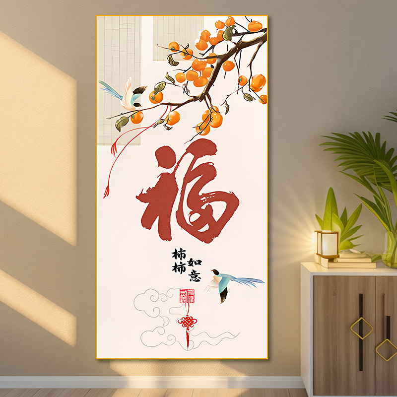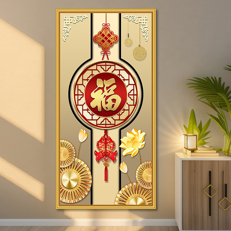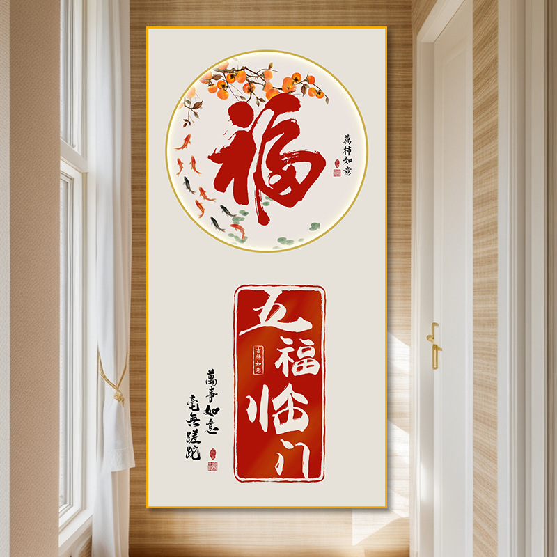 新年玄关装饰画新中式福字贴画入户过道壁画走廊寓意好葫芦背景墙