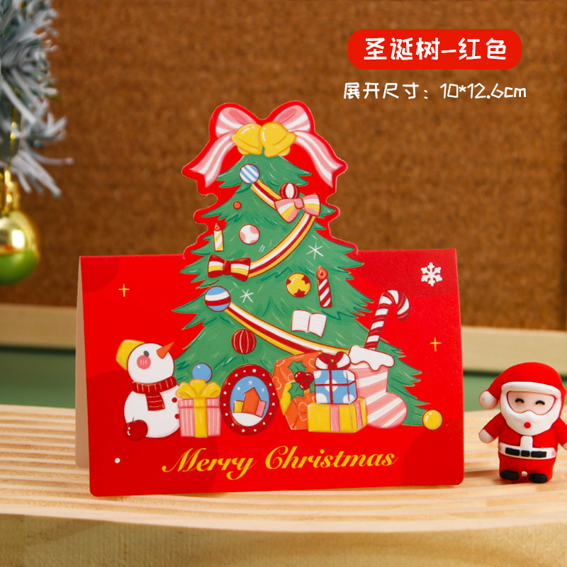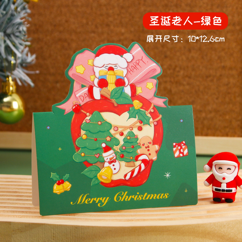 卡通圣诞节卡头平安夜手写贺卡祝福高级感装饰立体小卡片礼物批发