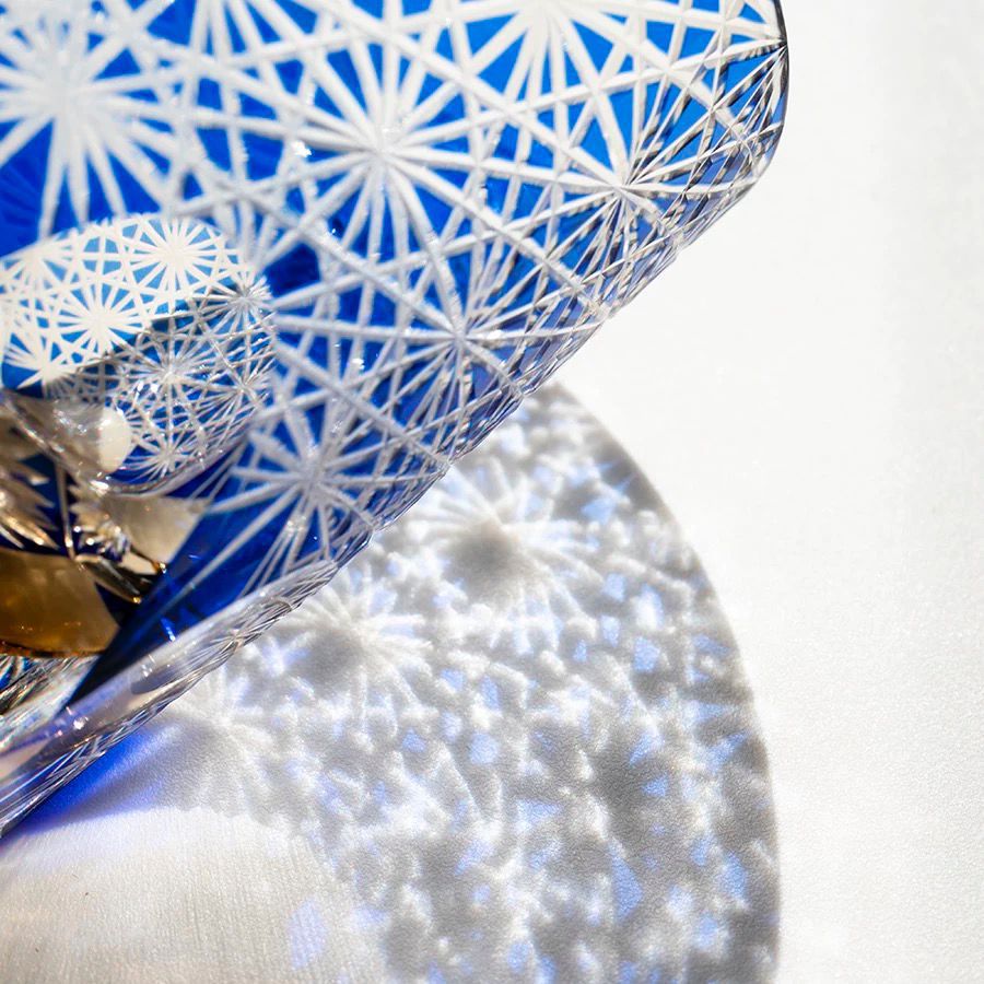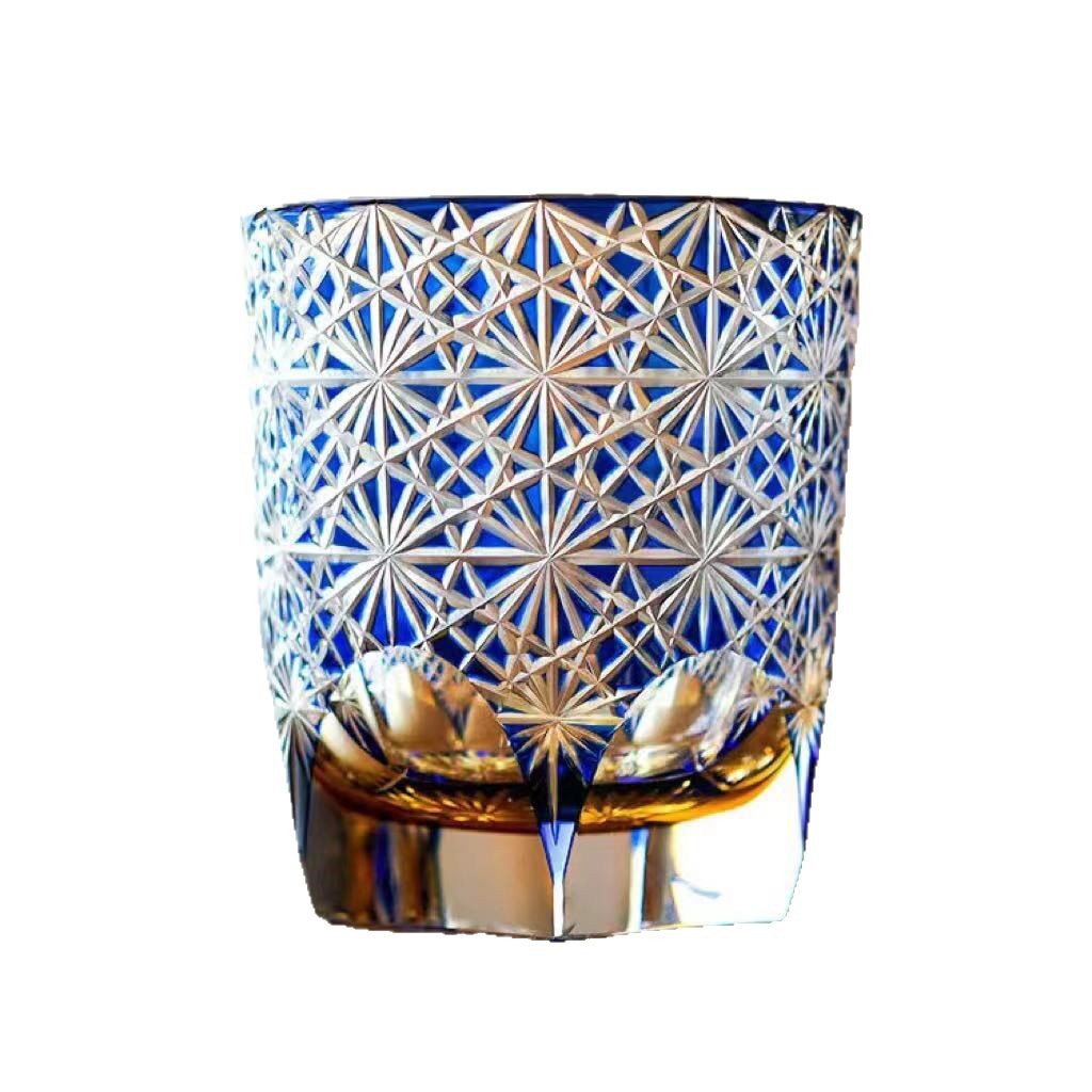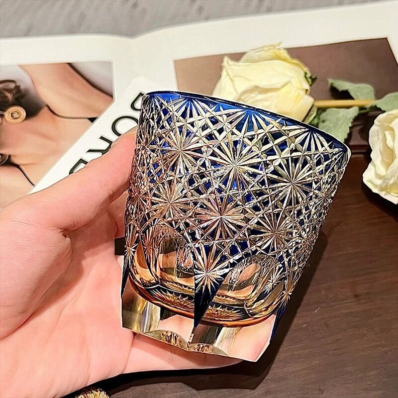 工艺品玻璃杯日式高档江户切子蓝雏菊威士忌酒杯纯手工制作水晶杯